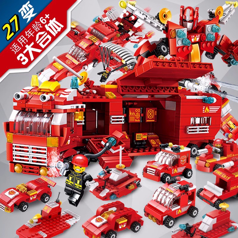 새로운 건물 블록 소방차 시리즈 소년 어린이 조립 교육 자동차 장난감 6 탱크 8 변형 로봇스토어 가기