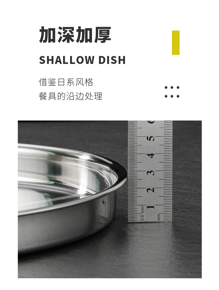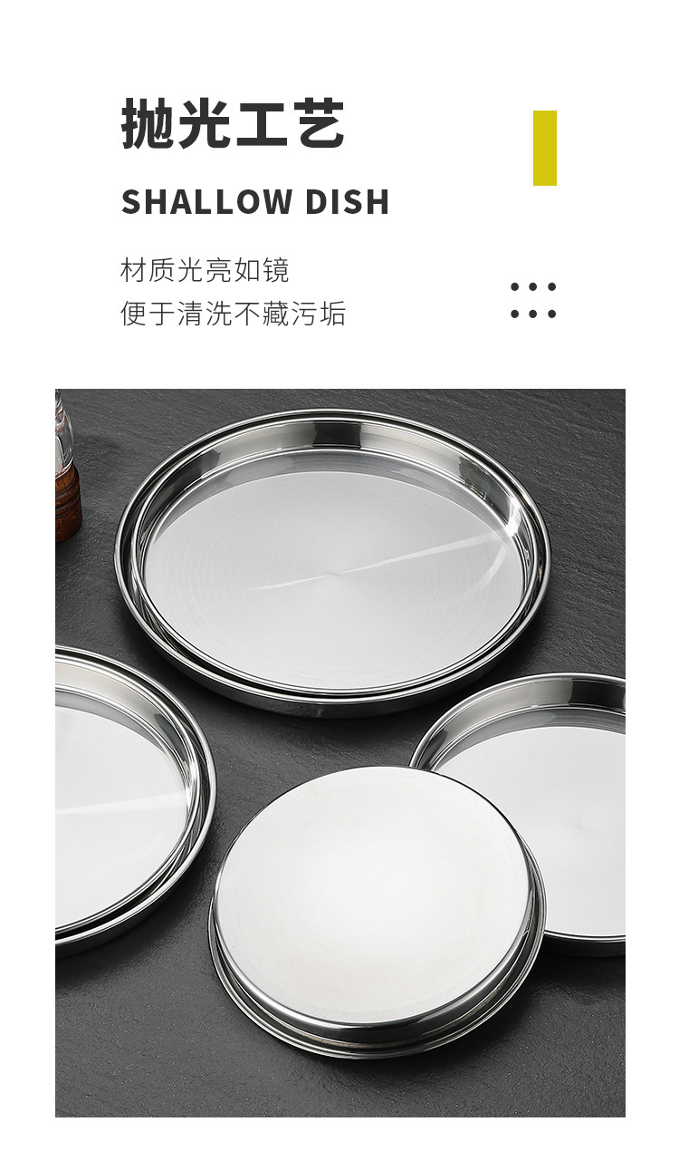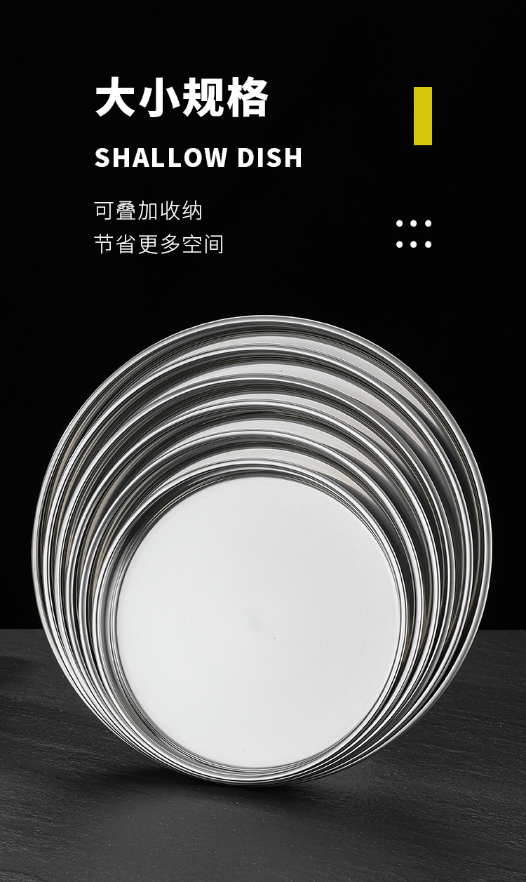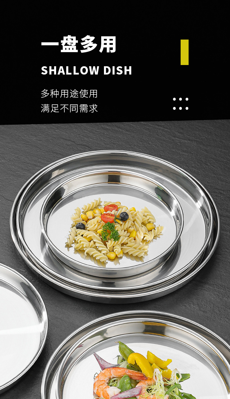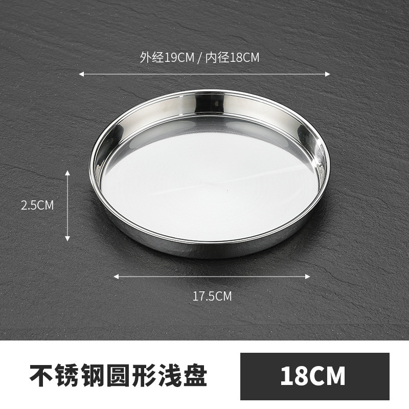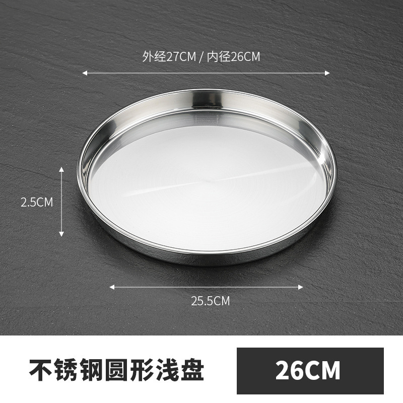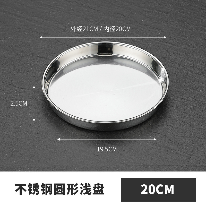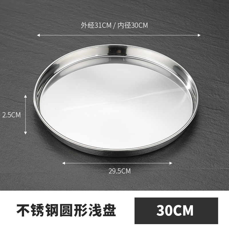 두꺼운 스테인레스 스틸 디스크 얕은 플레이트 쿨 가죽 트레이 라운드 퓨어 플랫 바닥 좁은 측면 스트레이트 대형 플레이트 접시스토어 가기