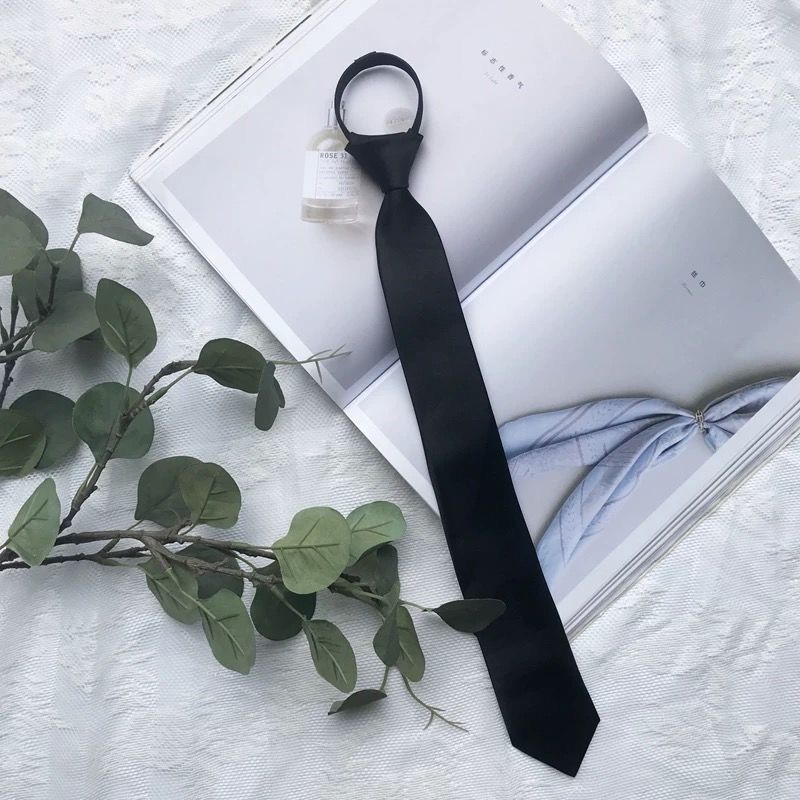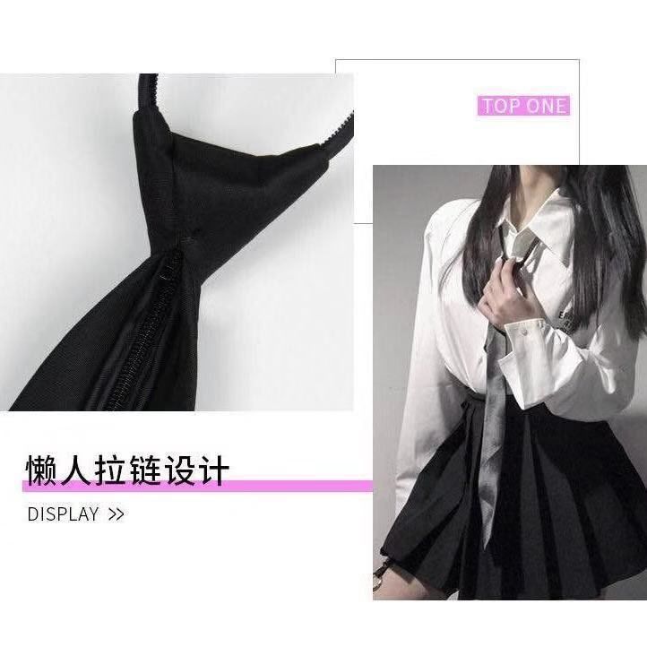 남녀 학생들을위한 검은 넥타이 대학 [1 개 구매 무료] 게으른 지퍼 바람 좁은 버전 셔츠 넥타이