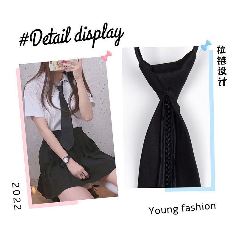 남녀 학생들을위한 검은 넥타이 대학 [1 개 구매 무료] 게으른 지퍼 바람 좁은 버전 셔츠 넥타이스토어 가기