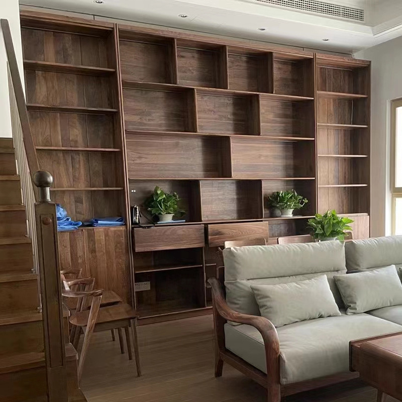 거실 전체 벽 책장 디스플레이 캐비닛 계단과 현대 간단한 책장 조합 전체 단단한 나무 사물함 바닥 책장