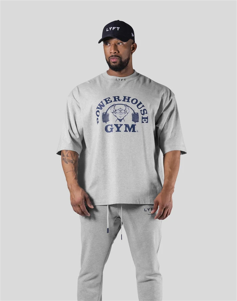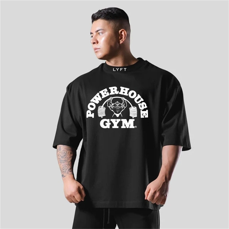 LYFT POWER HOUSE 공동 뜨거운 판매 플러스 사이즈 면 짧은 소매 티셔츠 남자 반소매 어깨 탑