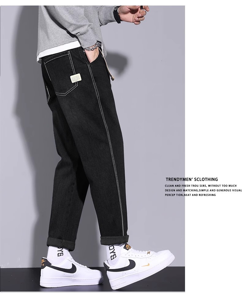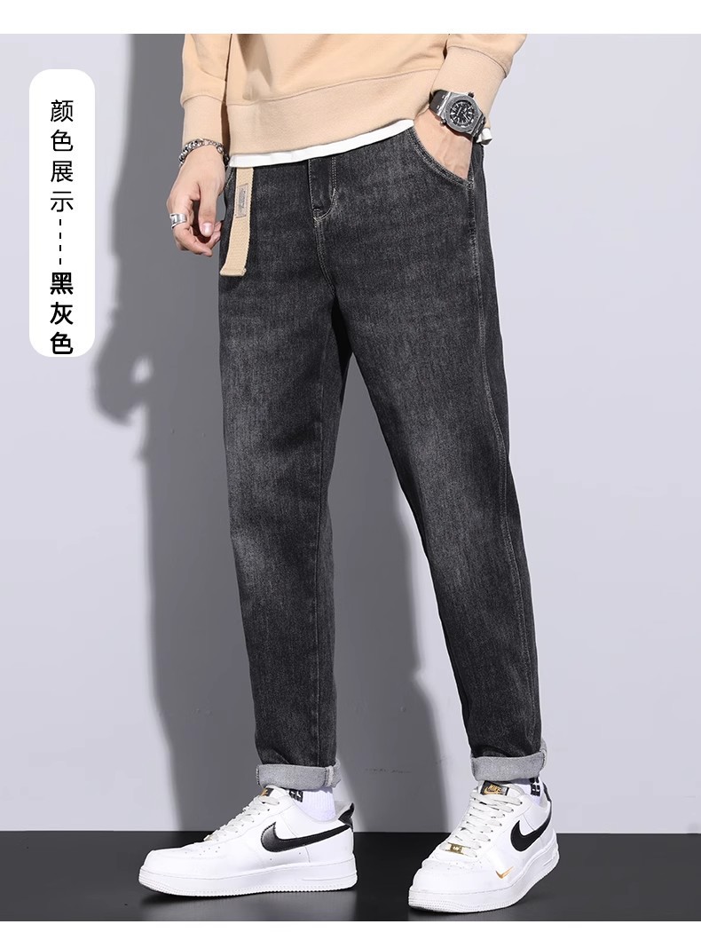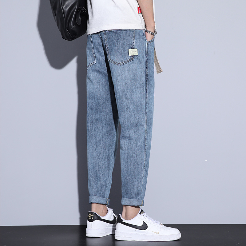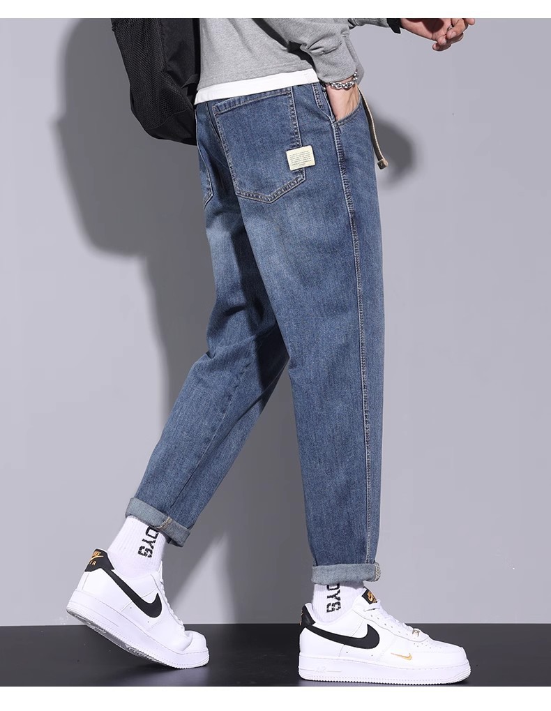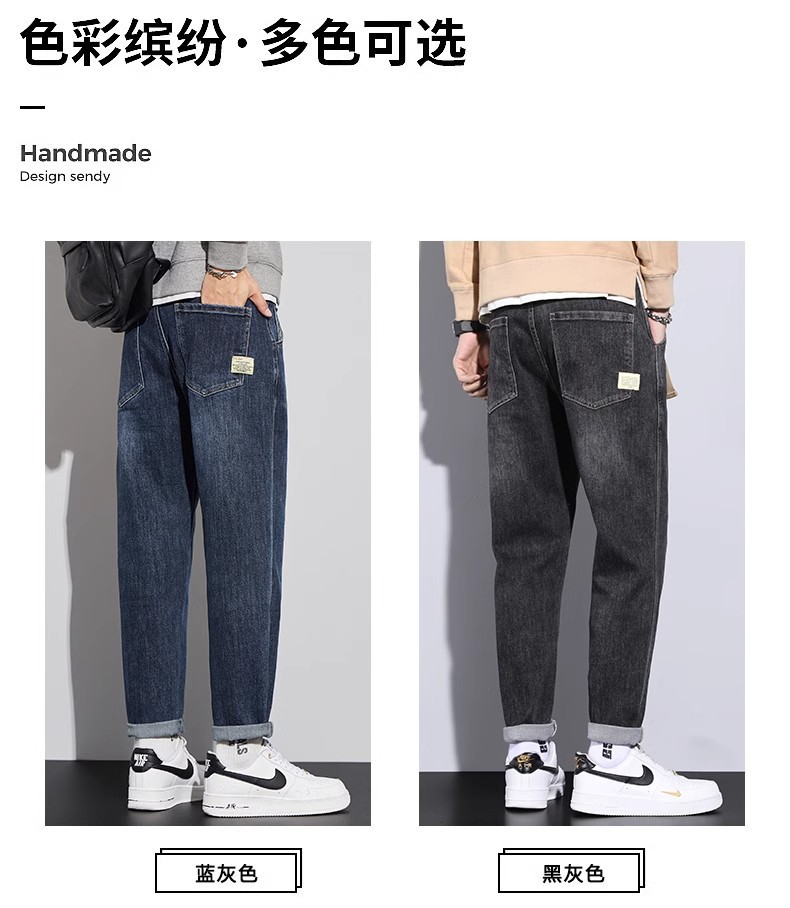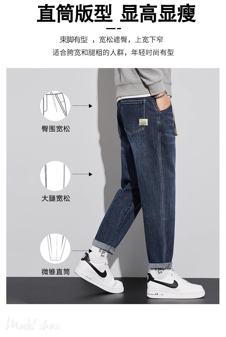 청바지 남자의 느슨한 스트레이트 2024 새로운 여름 미국 스타일 트렌디 브랜드 할란 스트레치 테이퍼 캐주얼 긴 바지스토어 가기