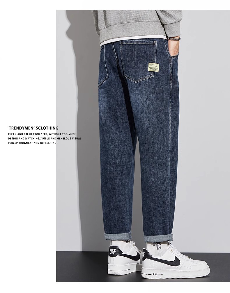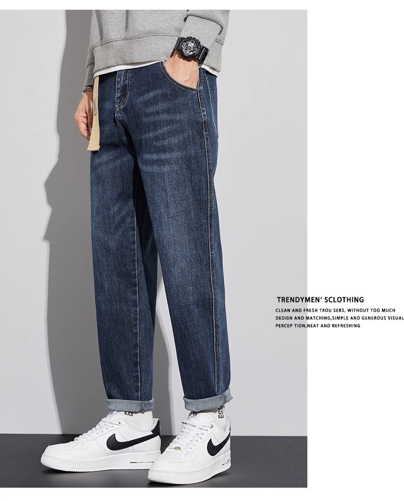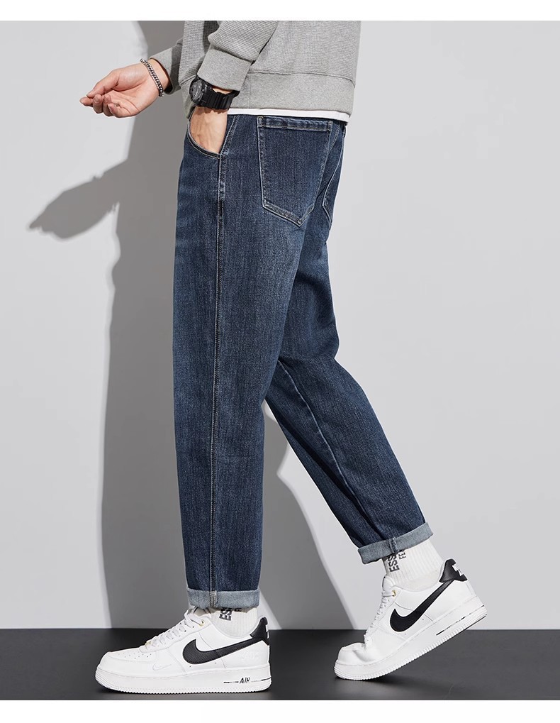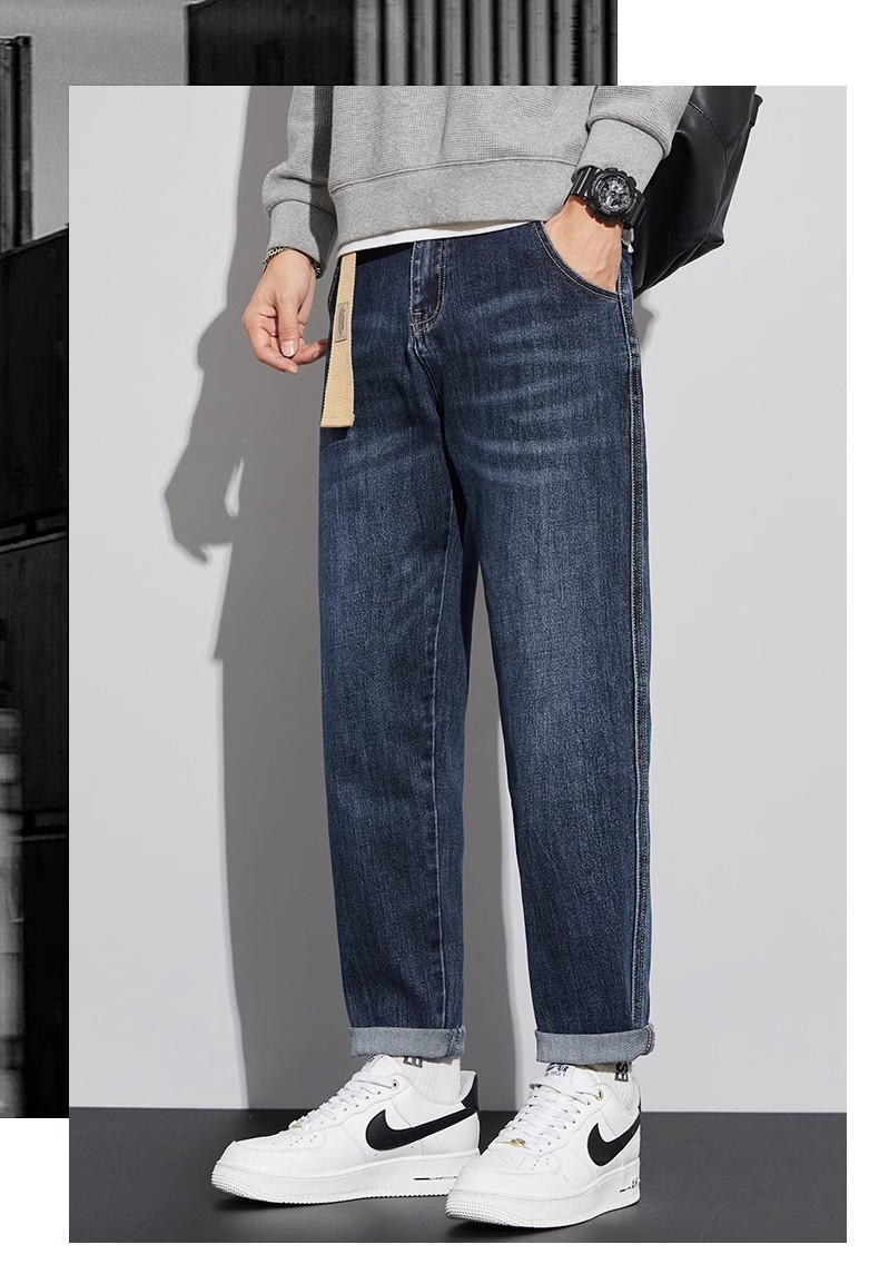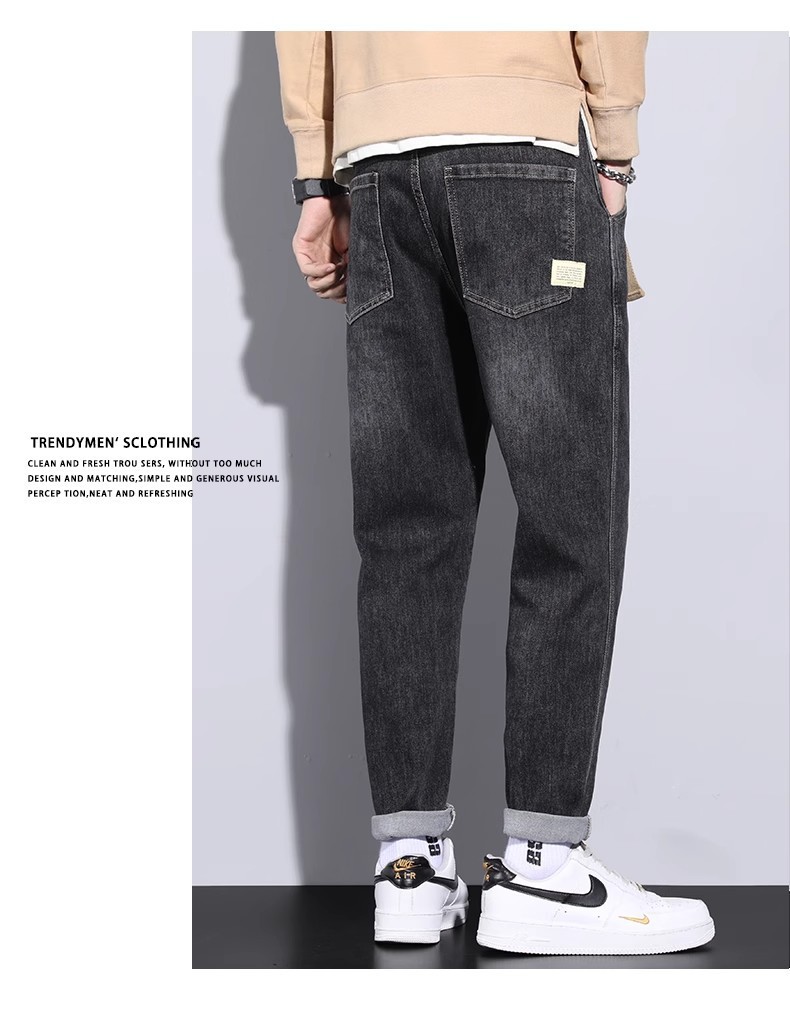 청바지 남자의 느슨한 스트레이트 2024 새로운 여름 미국 스타일 트렌디 브랜드 할란 스트레치 테이퍼 캐주얼 긴 바지스토어 가기