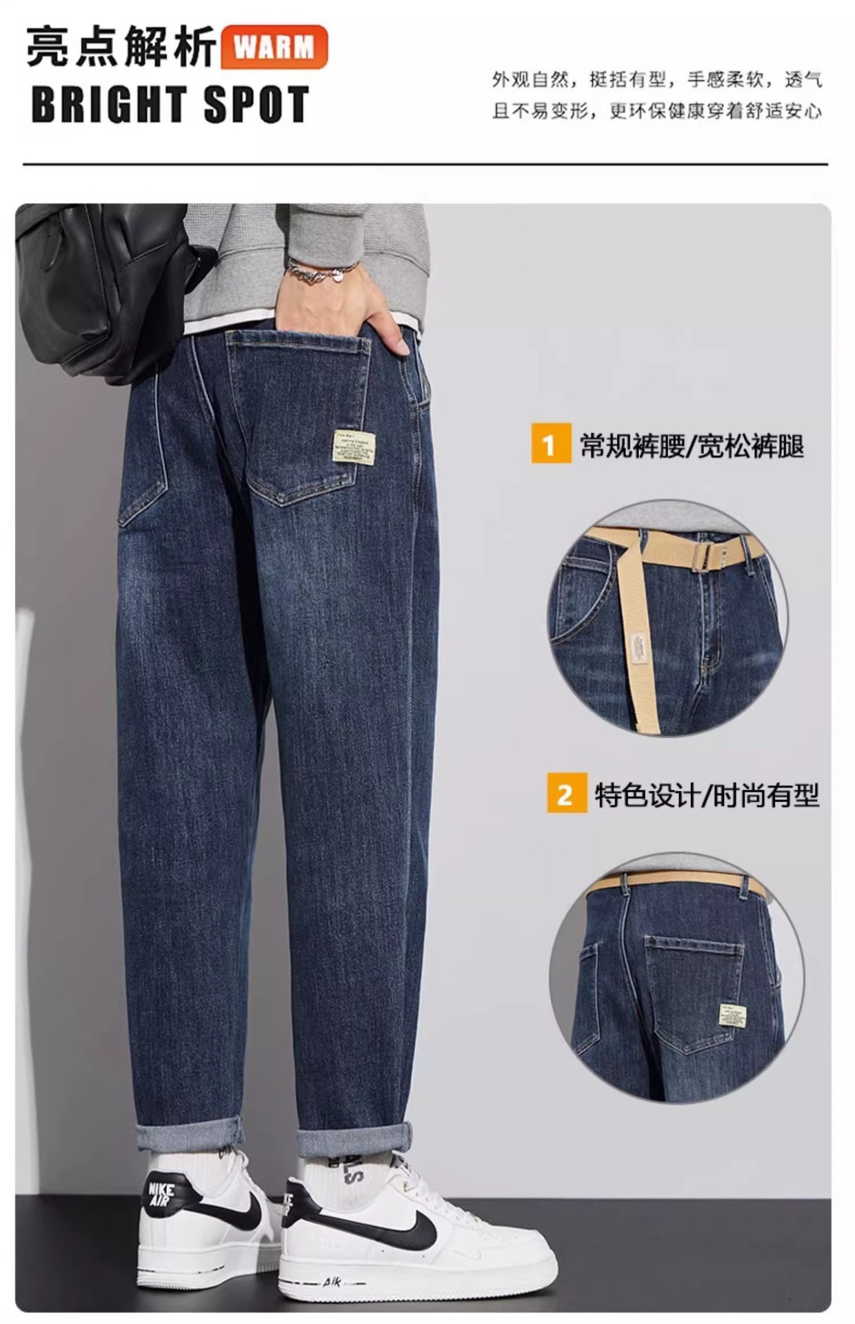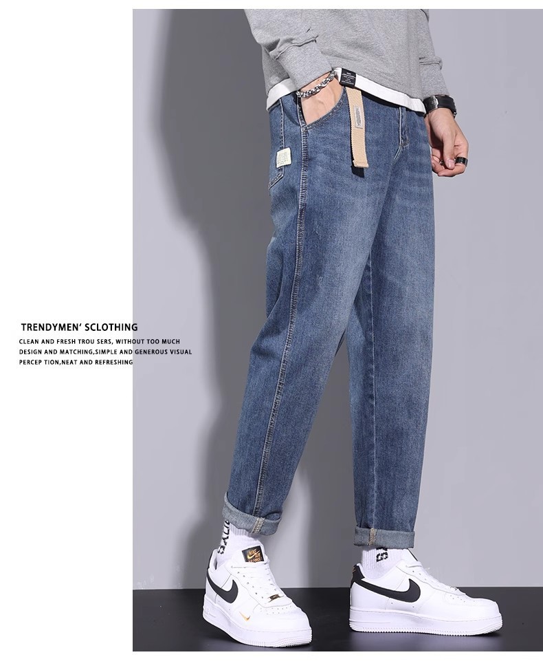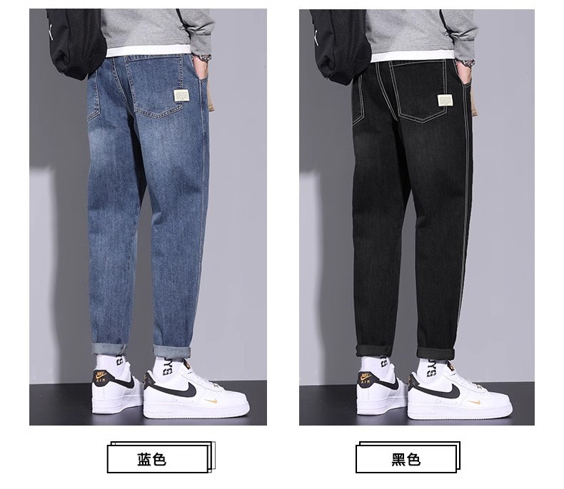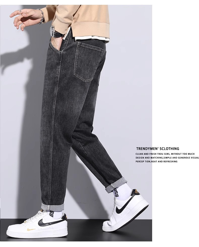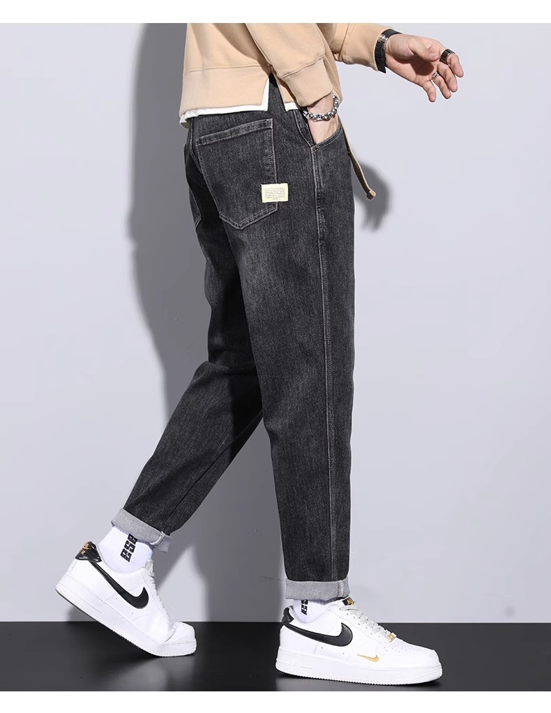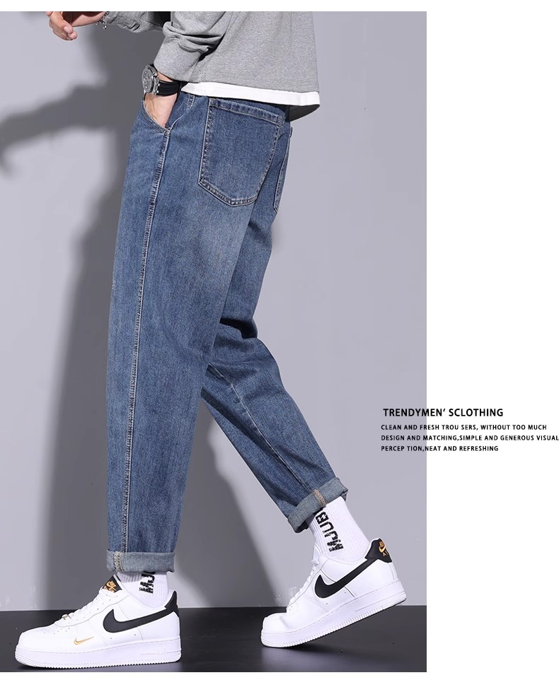 청바지 남자의 느슨한 스트레이트 2024 새로운 여름 미국 스타일 트렌디 브랜드 할란 스트레치 테이퍼 캐주얼 긴 바지스토어 가기