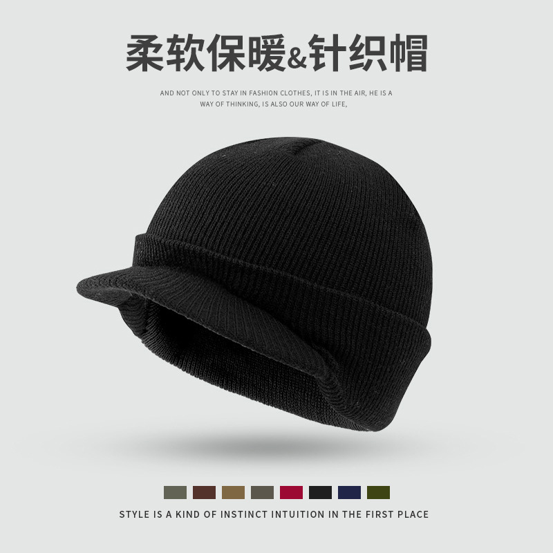 가을과 겨울 냉장 따뜻한 스키 사이클링 내부 헬멧 니트 모자 남성 국경 간 대외 무역 방풍 귀 보호 짧은 챙이 모직 모자 여성