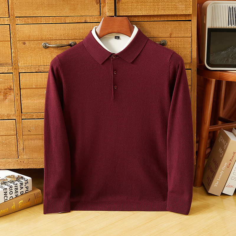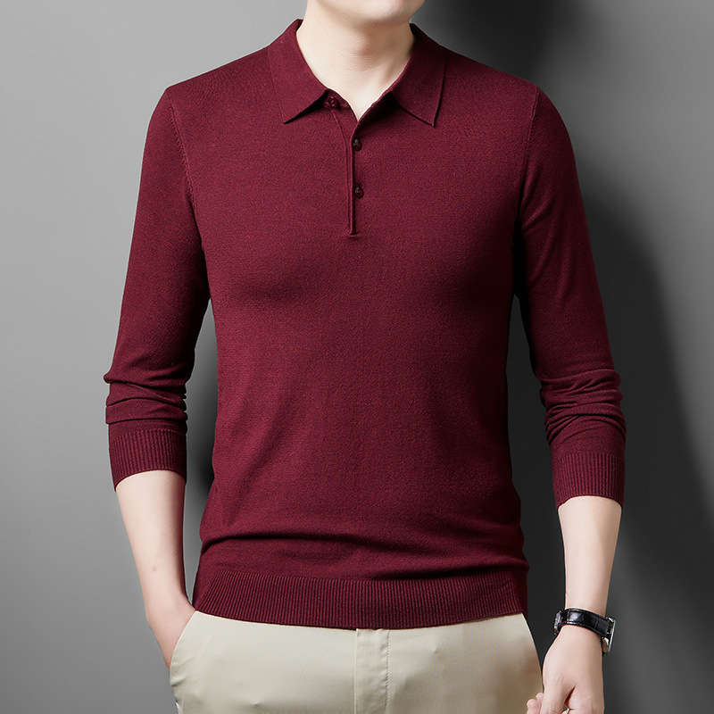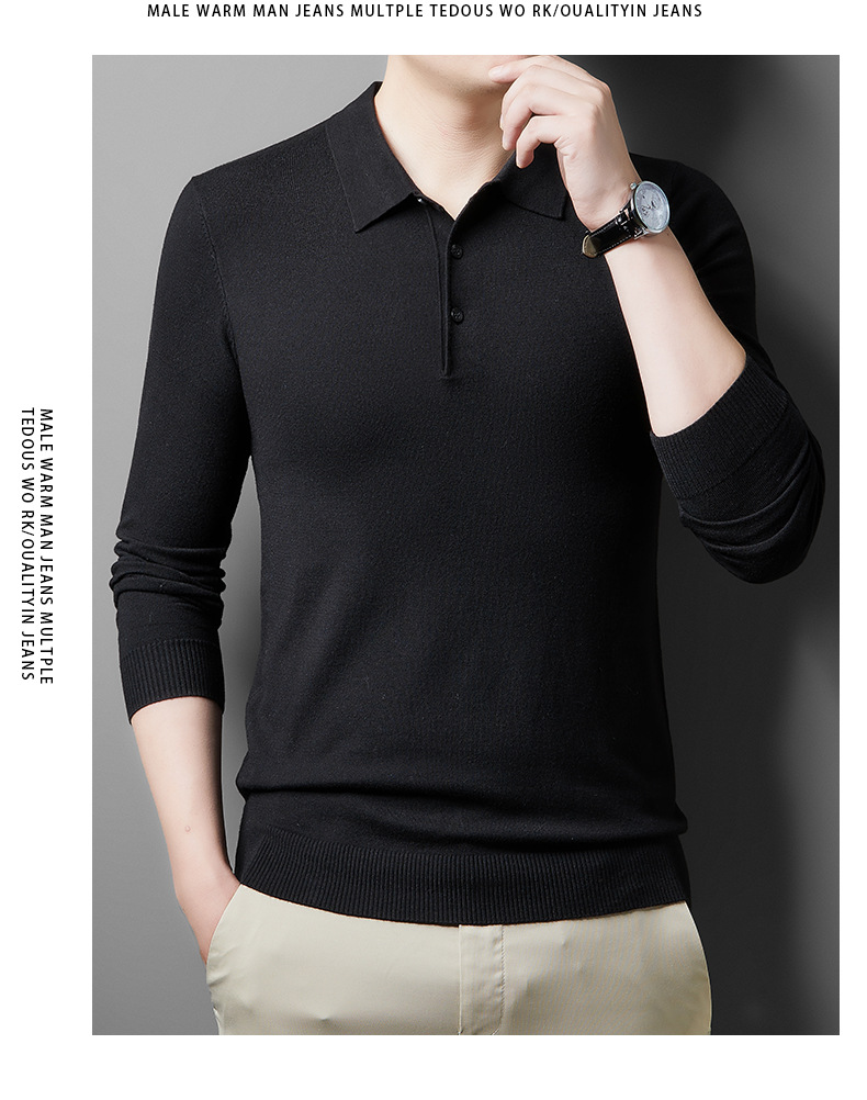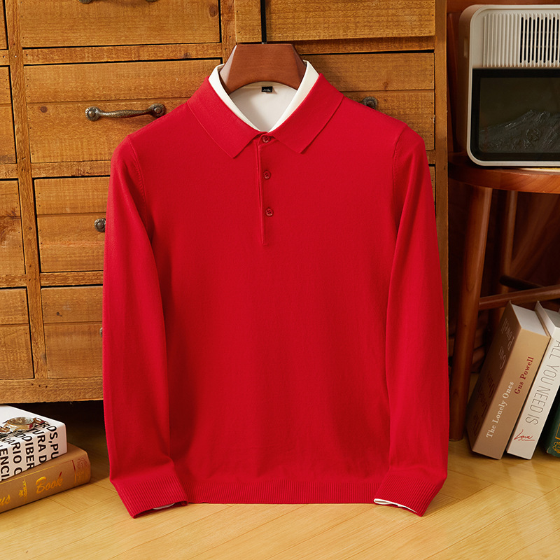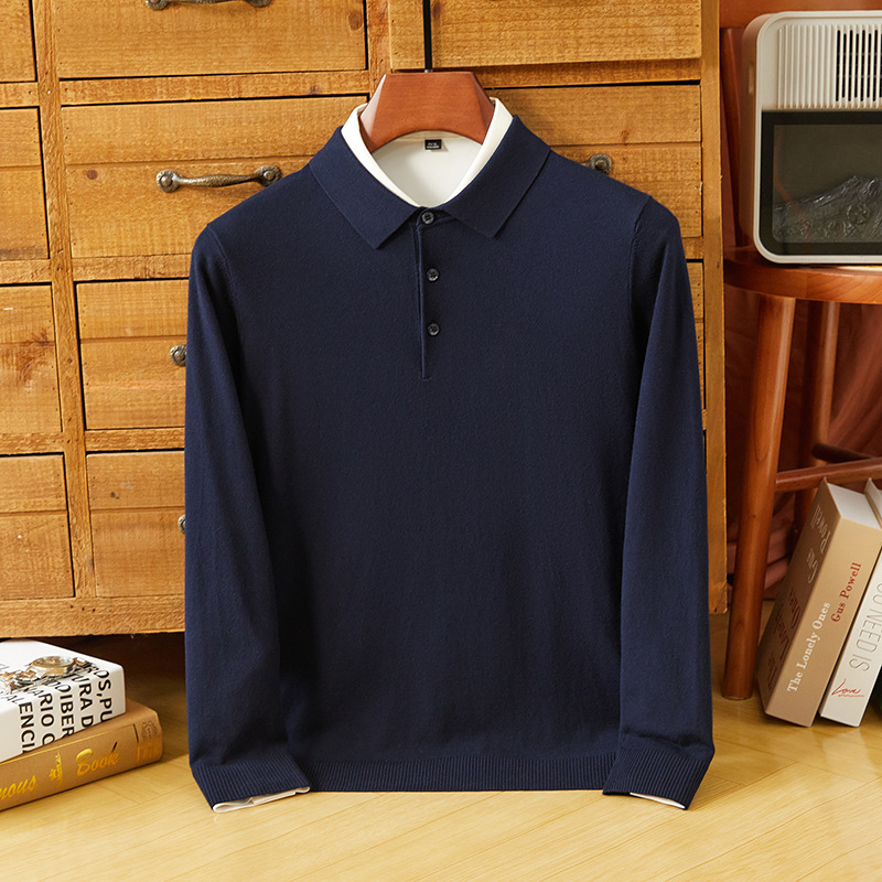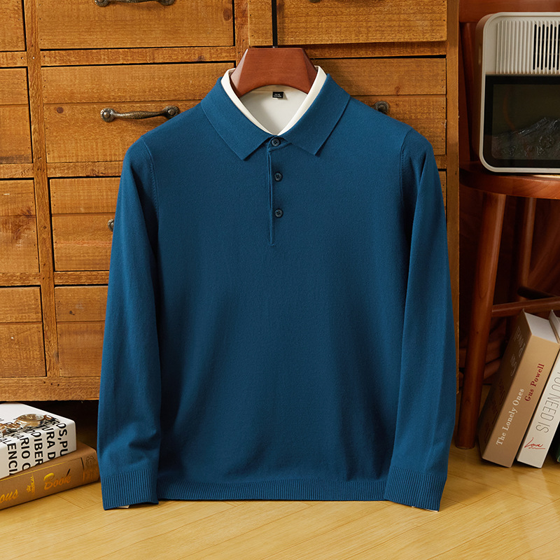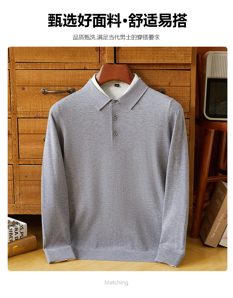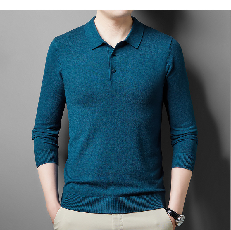 하이 엔드 봄과 가을 남자 스웨터 얇은 솔리드 컬러 라베이스 셔츠 니트 스웨터 남자 아빠 셔츠 탑