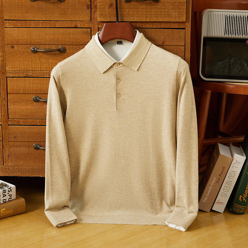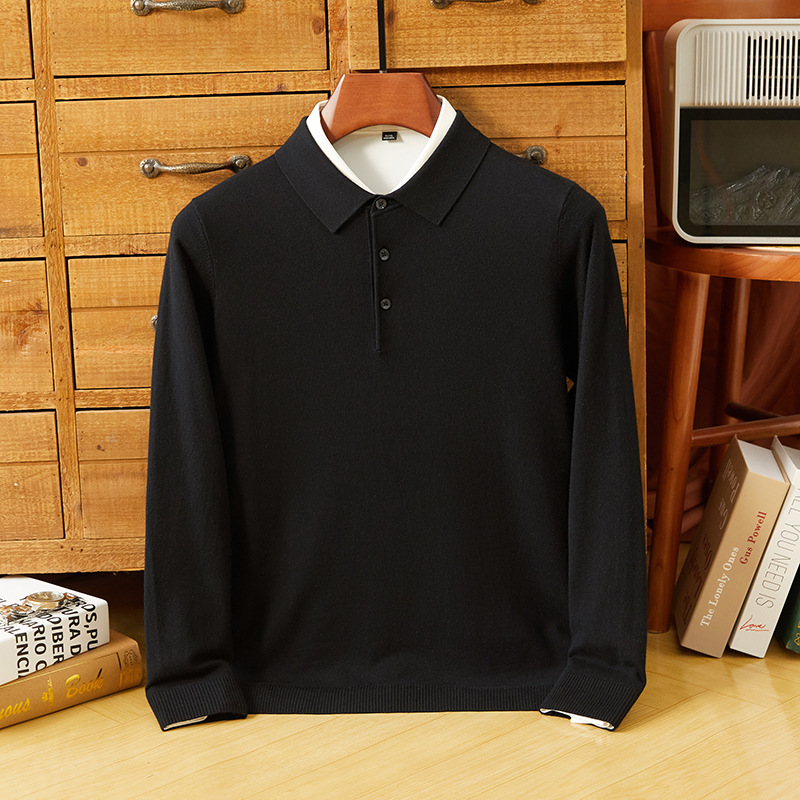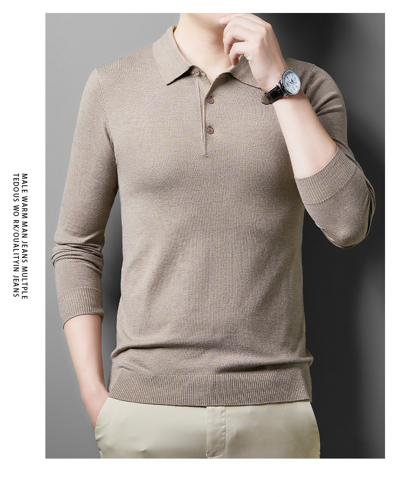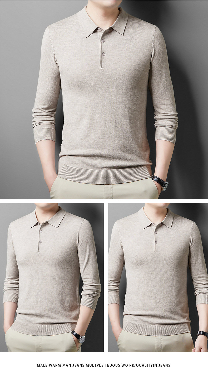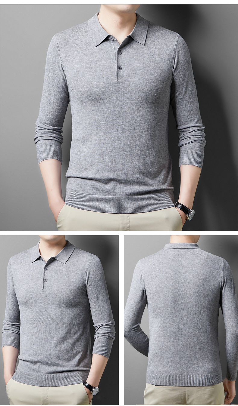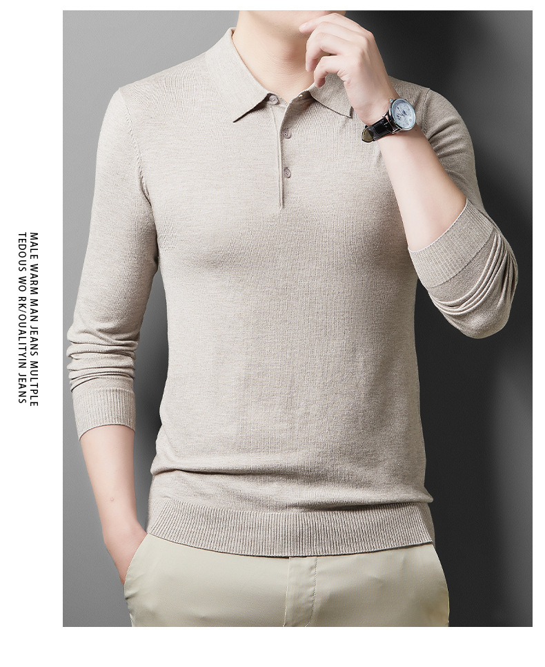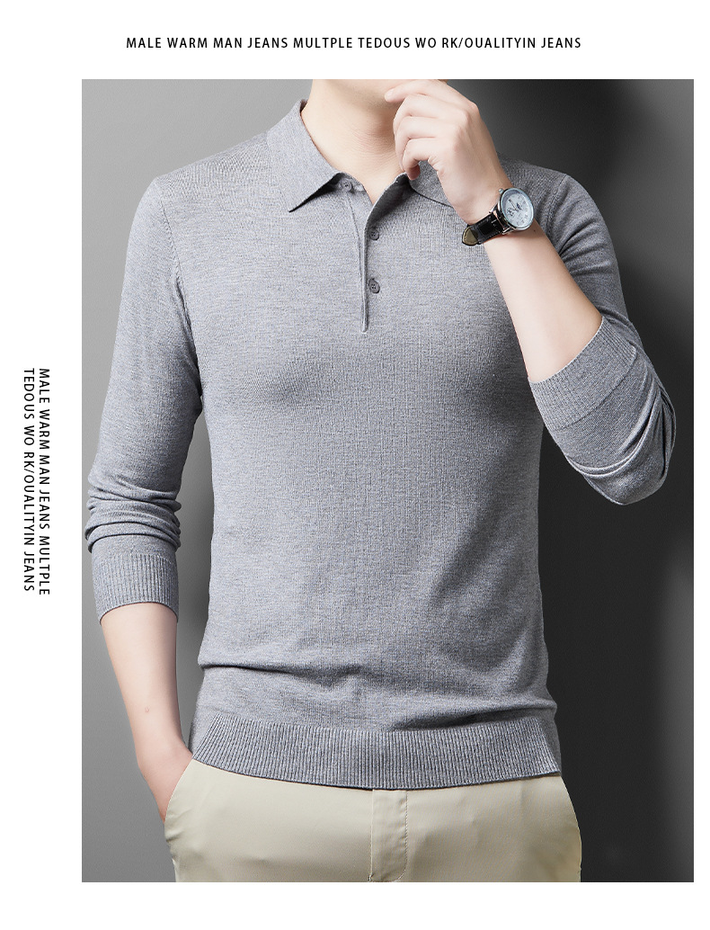 하이 엔드 봄과 가을 남자 스웨터 얇은 솔리드 컬러 라베이스 셔츠 니트 스웨터 남자 아빠 셔츠 탑