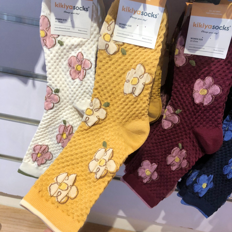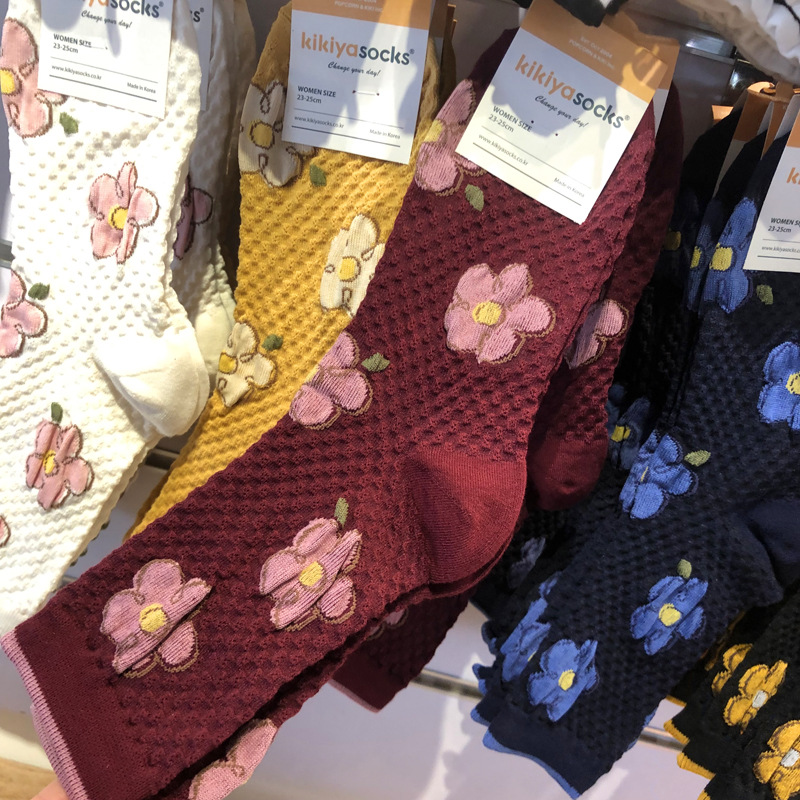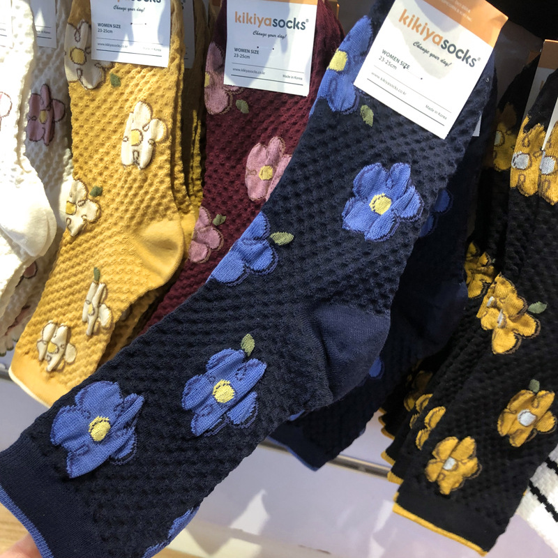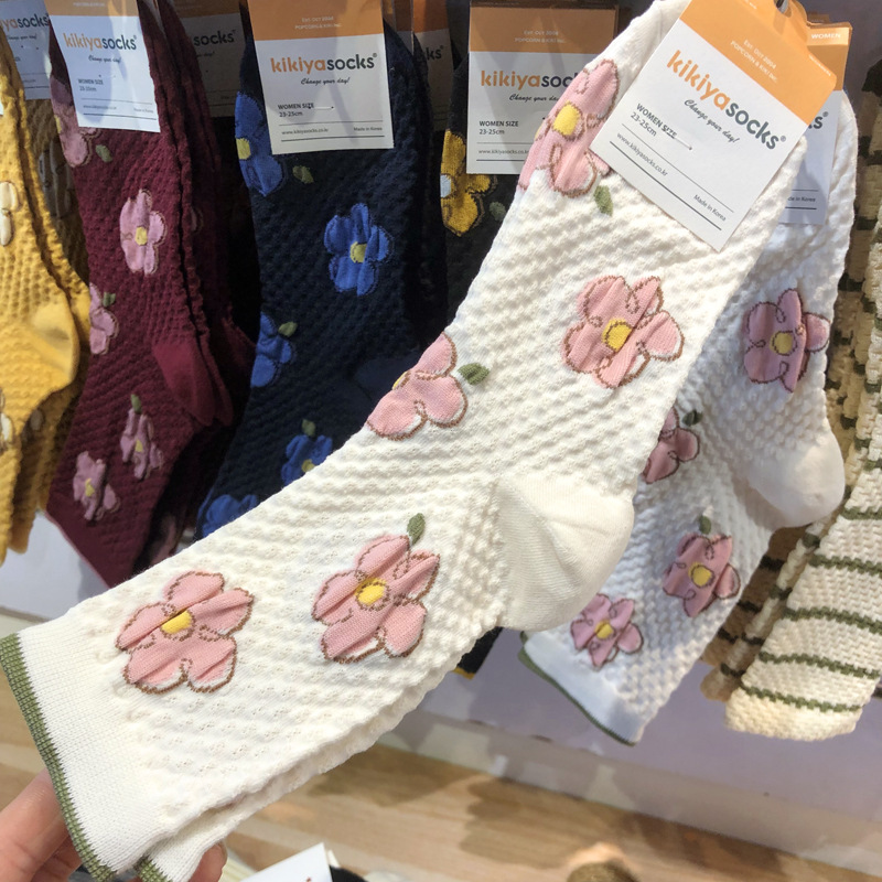 [재고] 한국 양말 프랑스 문학 스타일 여성 튜브 양말 구호 꽃 가을과 겨울 새로운 면화 양말스토어 가기