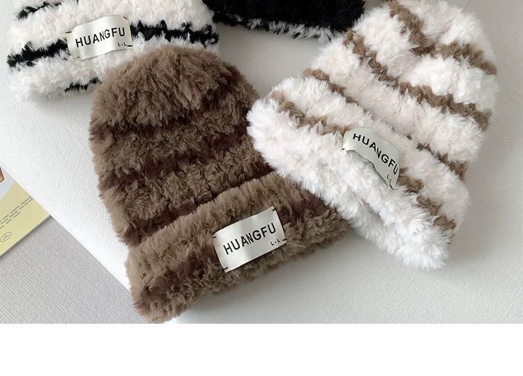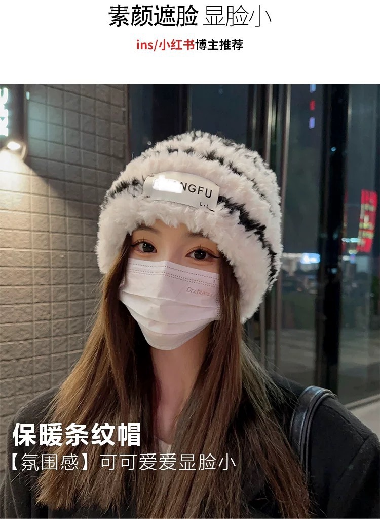 두꺼운 봉제 니트 모자 여성의 가을과 겨울 방한 양모 모자 따뜻한 귀 보호 얼굴 작은 한국 버전 큰 머리