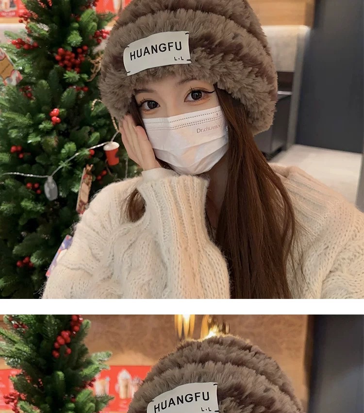 두꺼운 봉제 니트 모자 여성의 가을과 겨울 방한 양모 모자 따뜻한 귀 보호 얼굴 작은 한국 버전 큰 머리스토어 가기