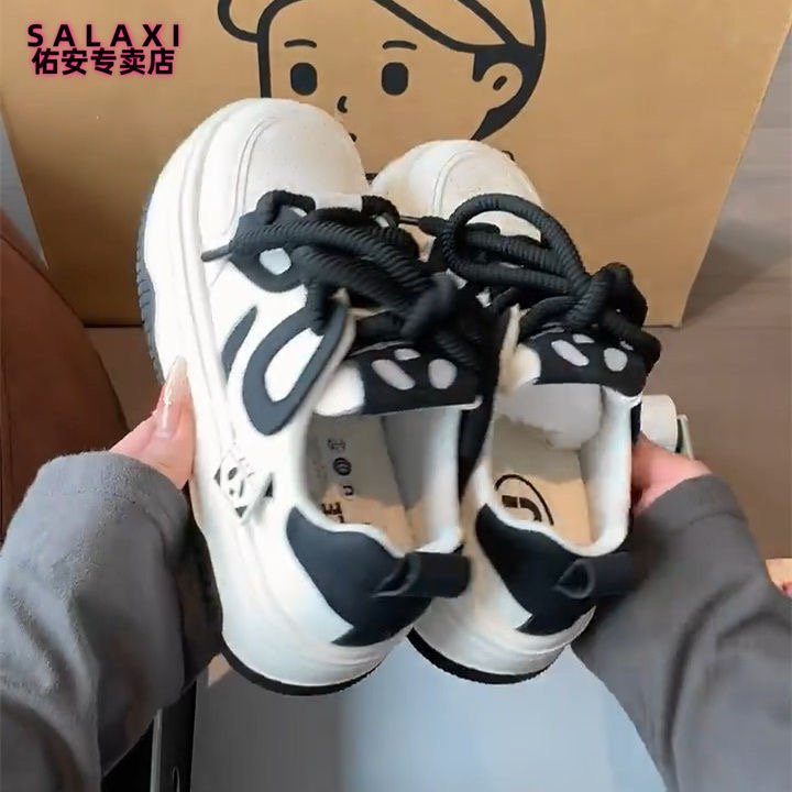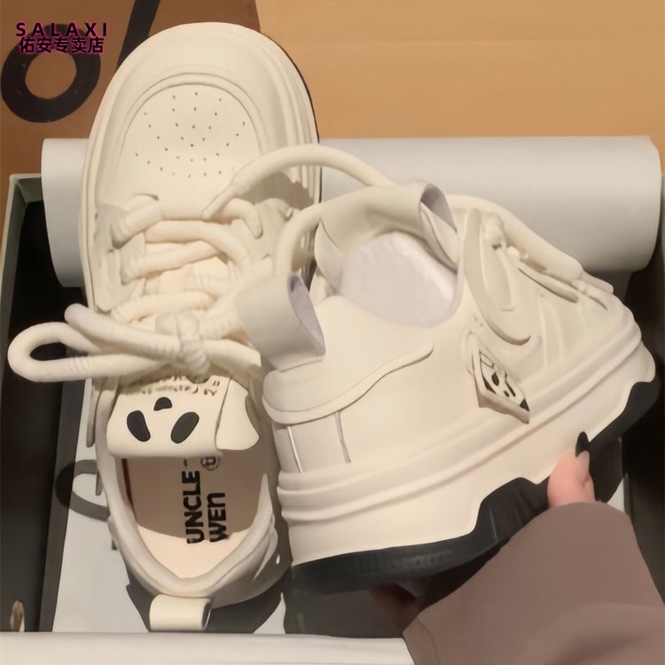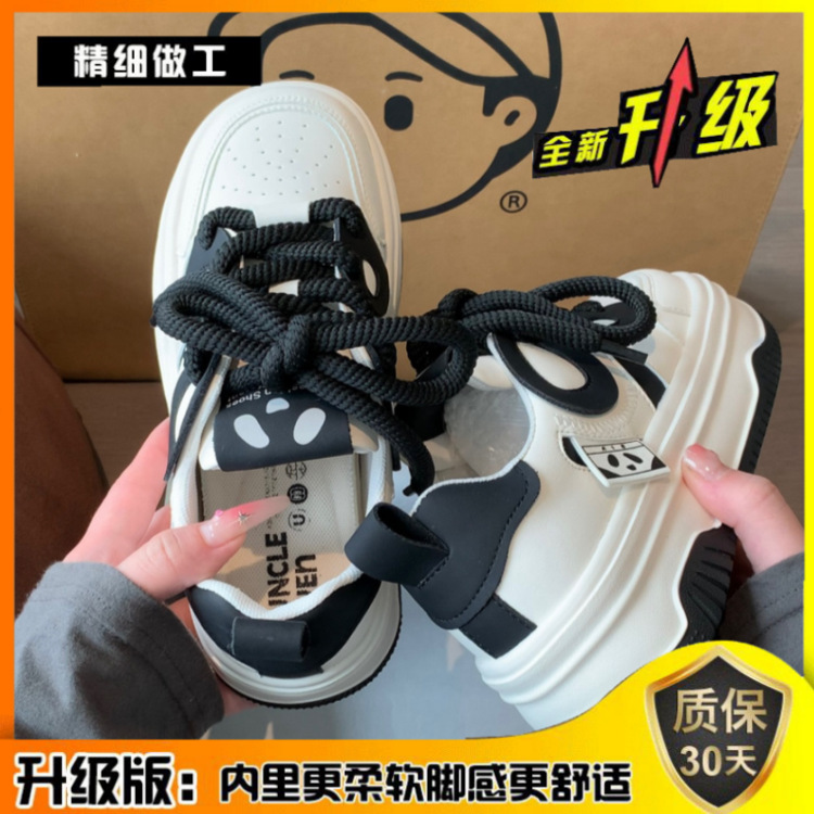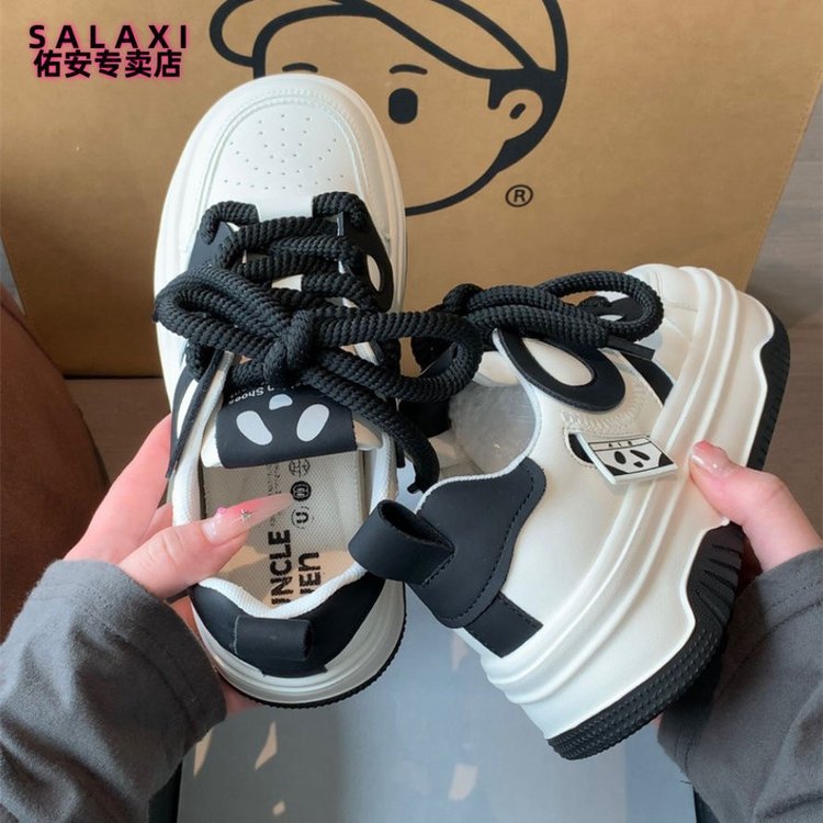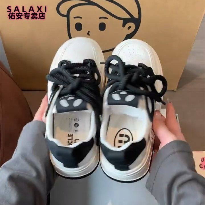 폭발 두꺼운 밑창 흰색 신발 여성 흑백 팬더 보드 신발 2024 봄 새로운 올 매치 캐주얼 스포츠 토레 신발스토어 가기