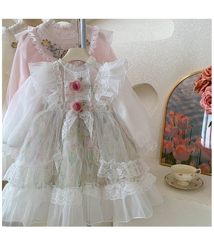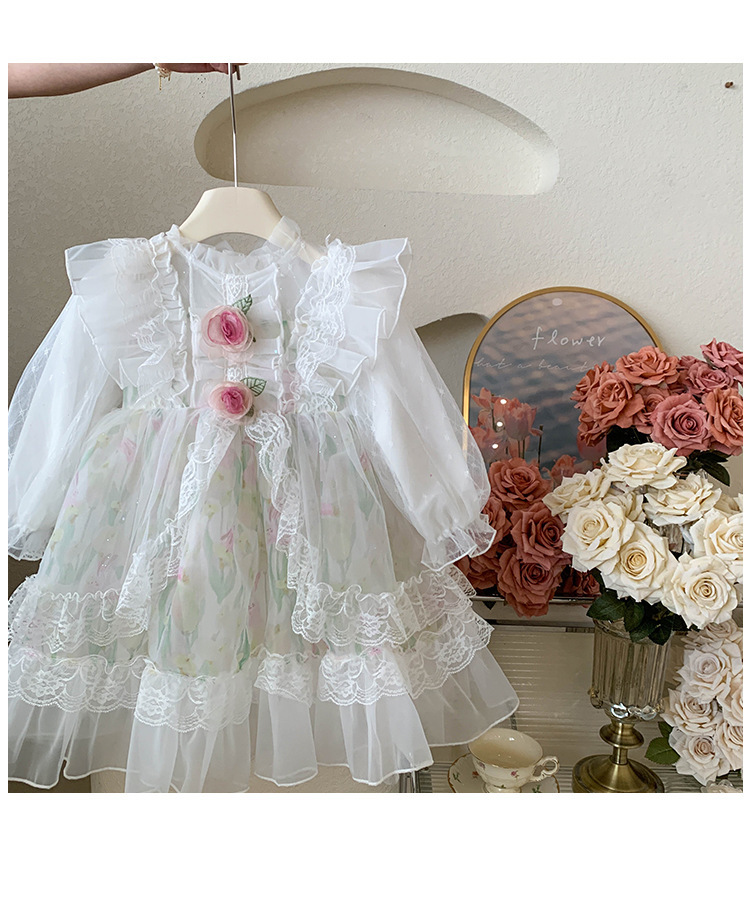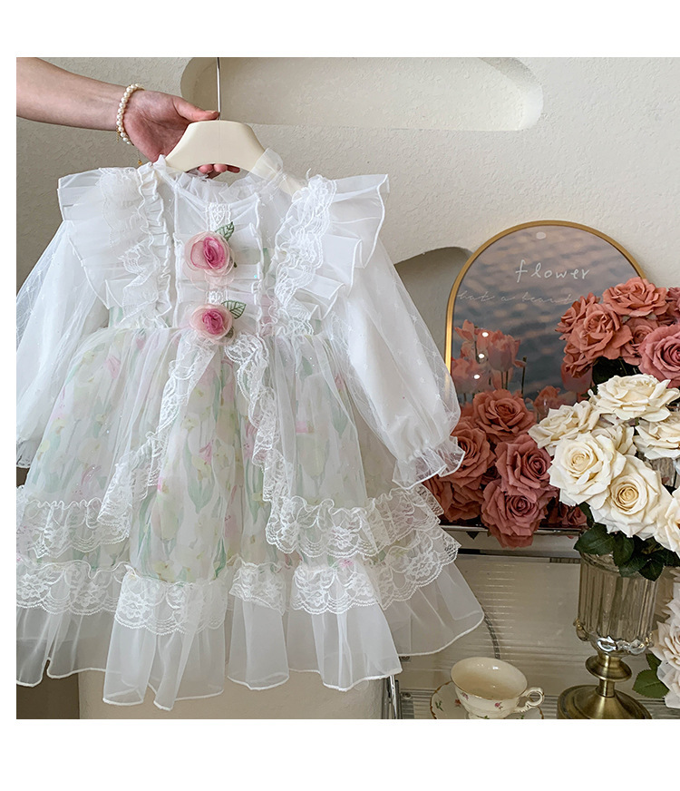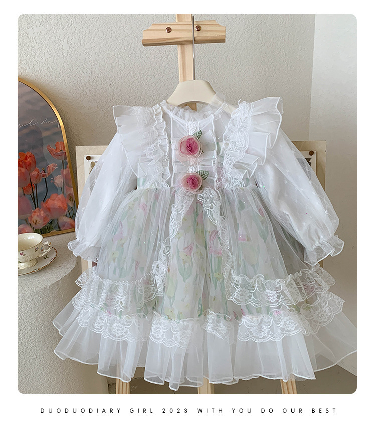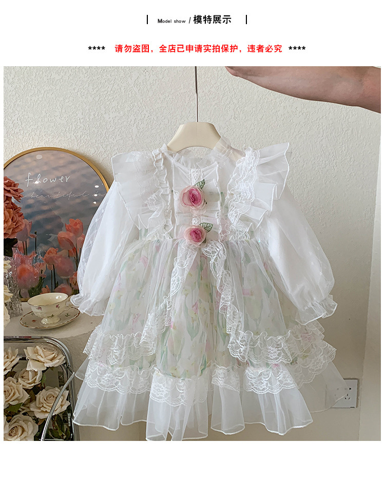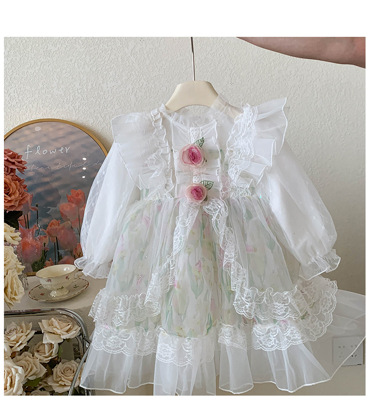 소녀 꽃 스타일 긴팔 공주 가을 로리타 원피스 소녀 아기 2024 새로운 도착 스커트 가을 패션스토어 가기
