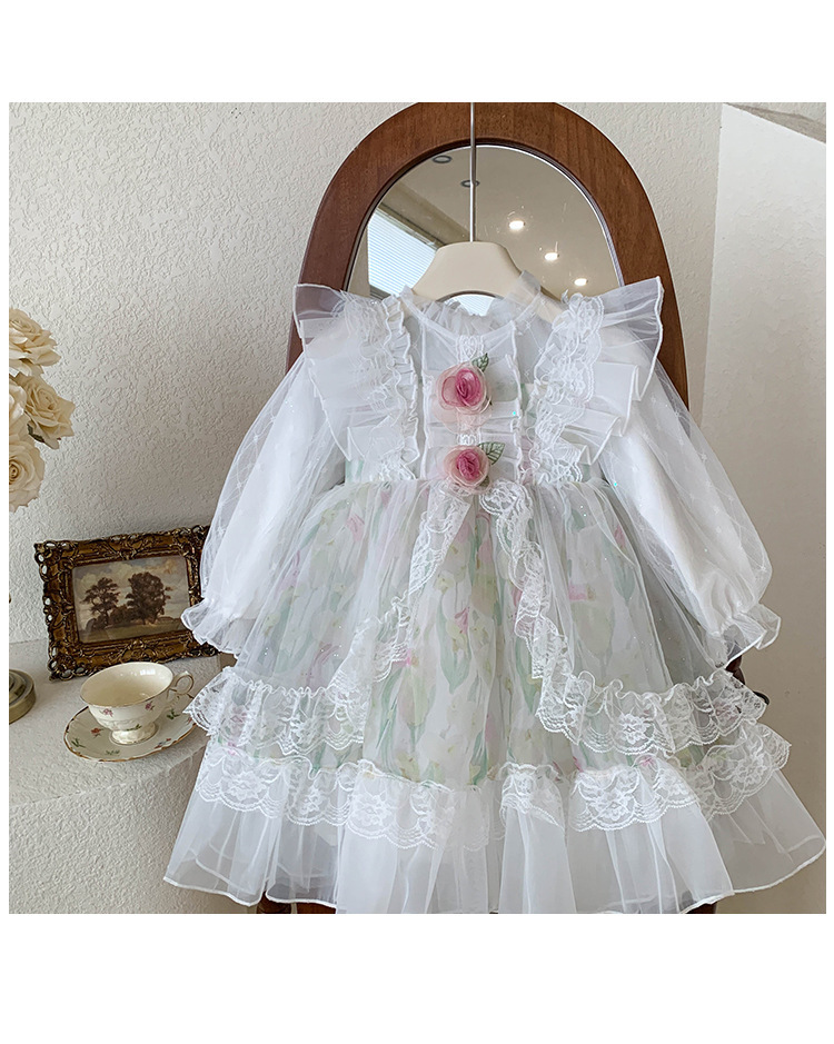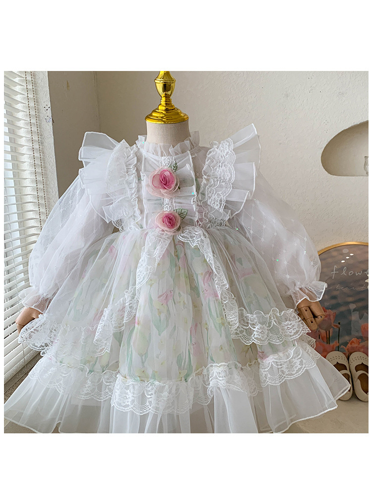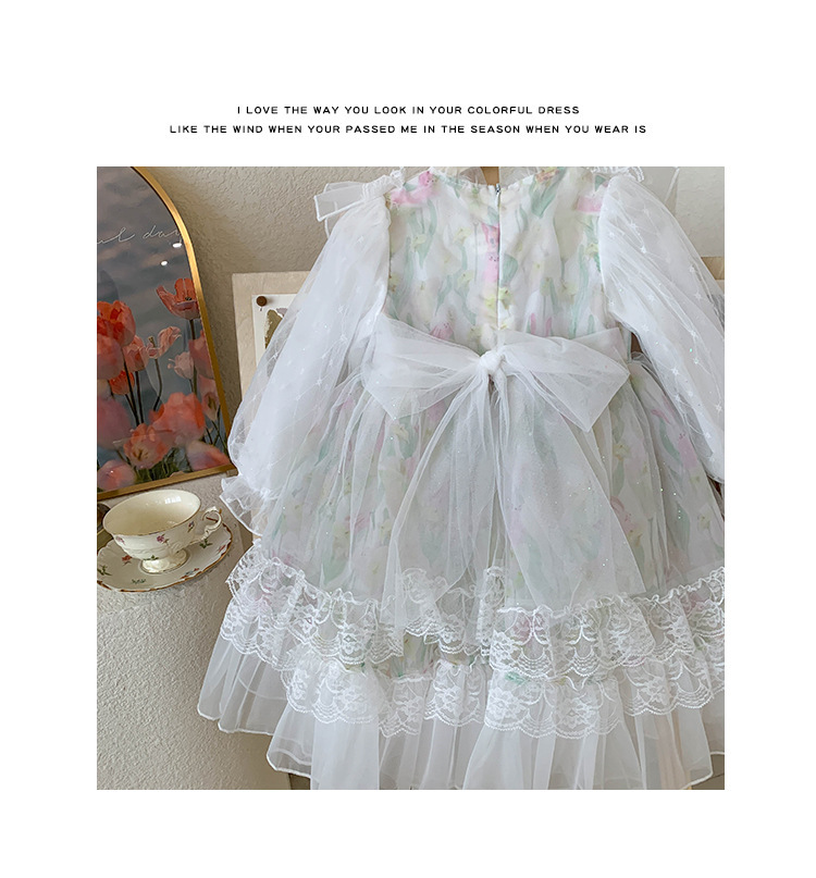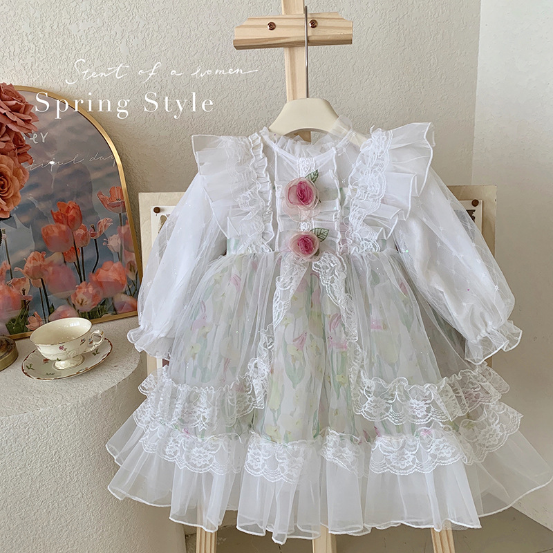 소녀 꽃 스타일 긴팔 공주 가을 로리타 원피스 소녀 아기 2024 새로운 도착 스커트 가을 패션