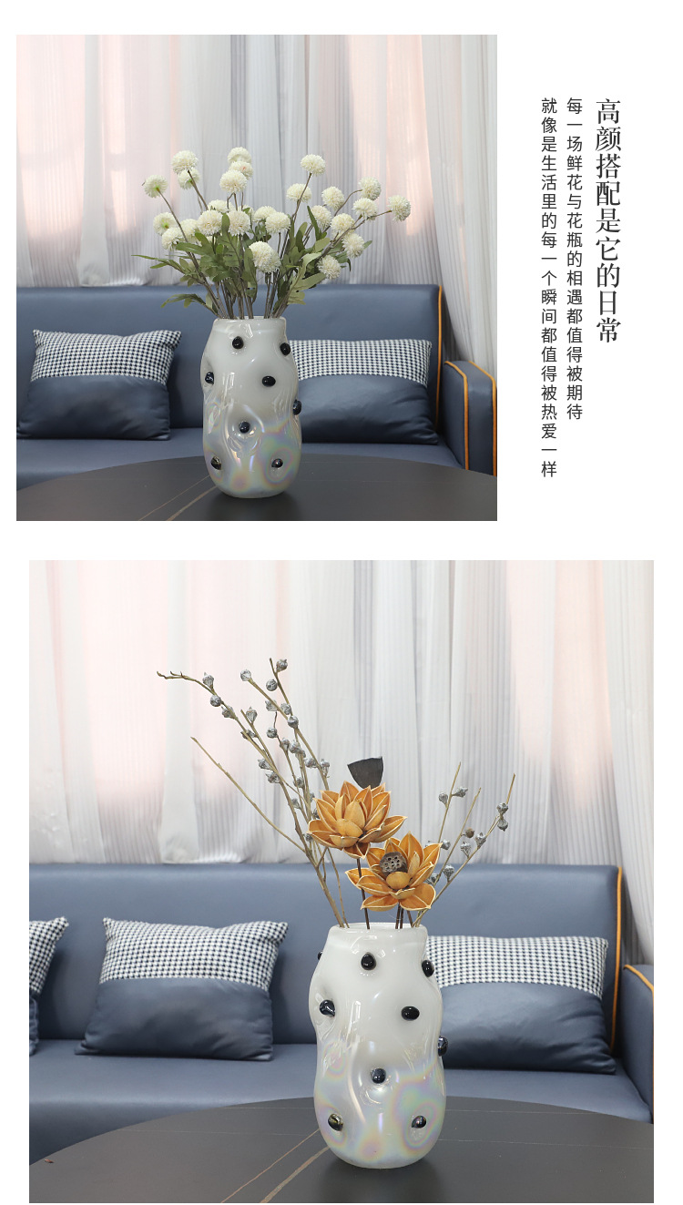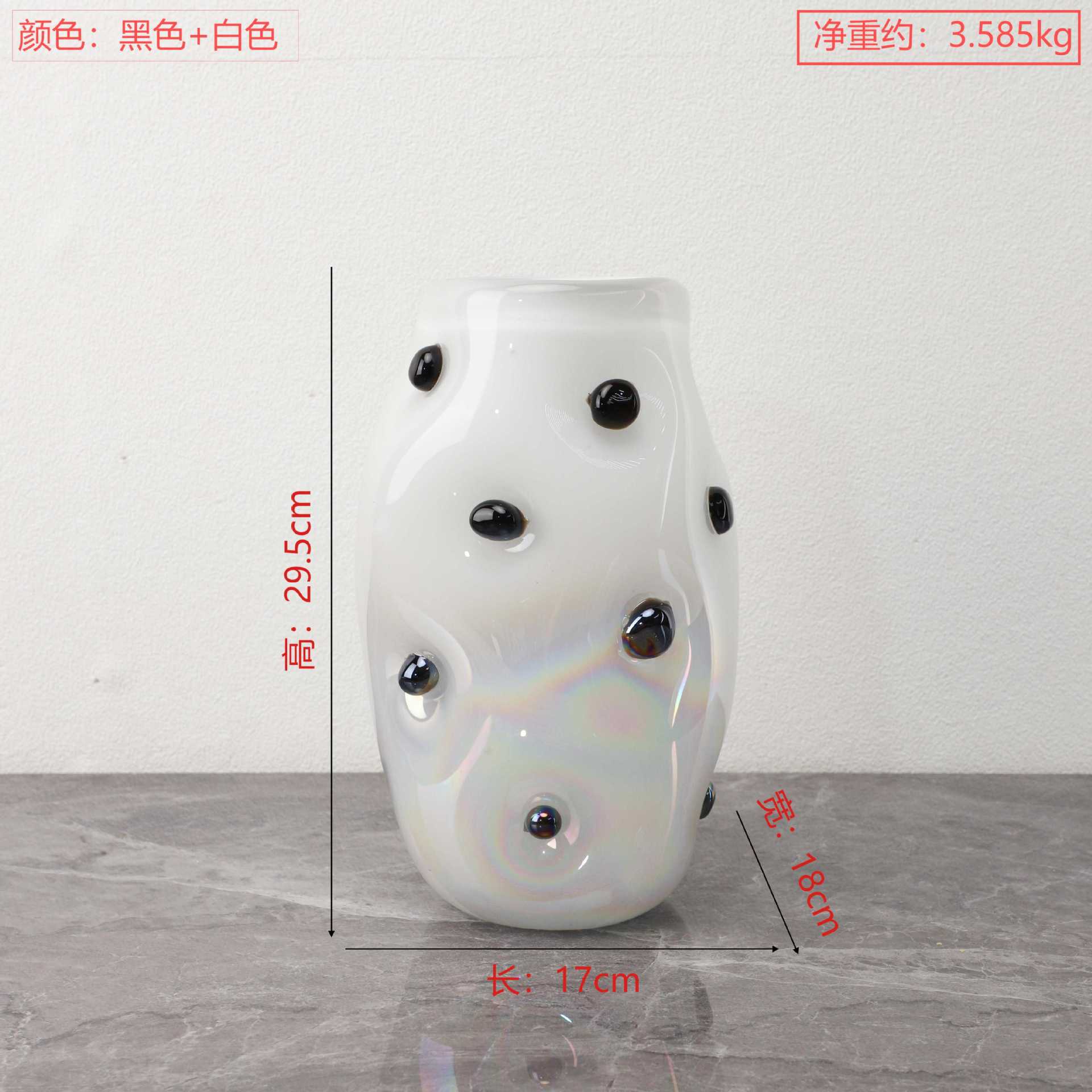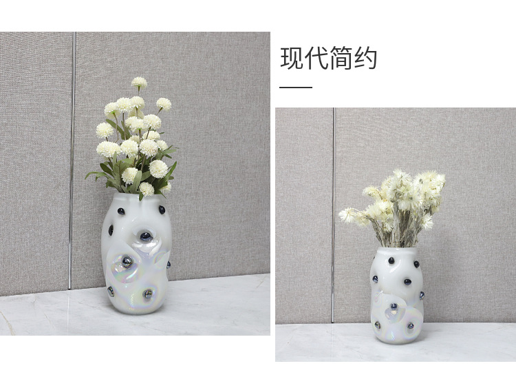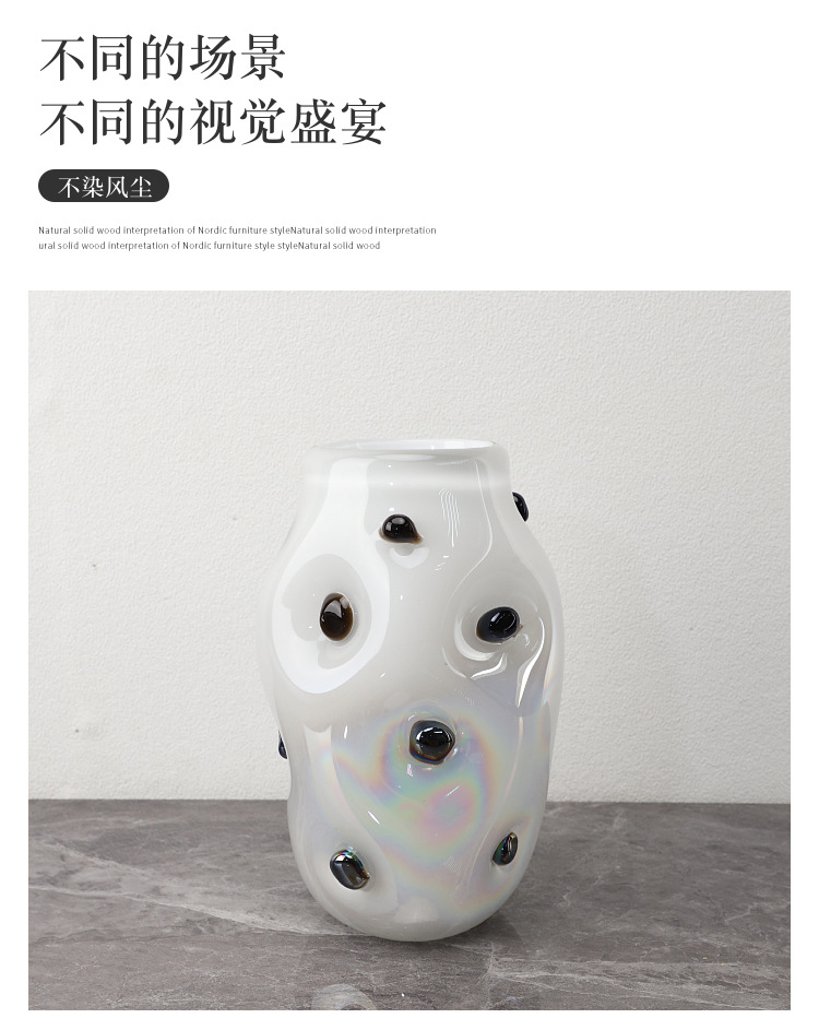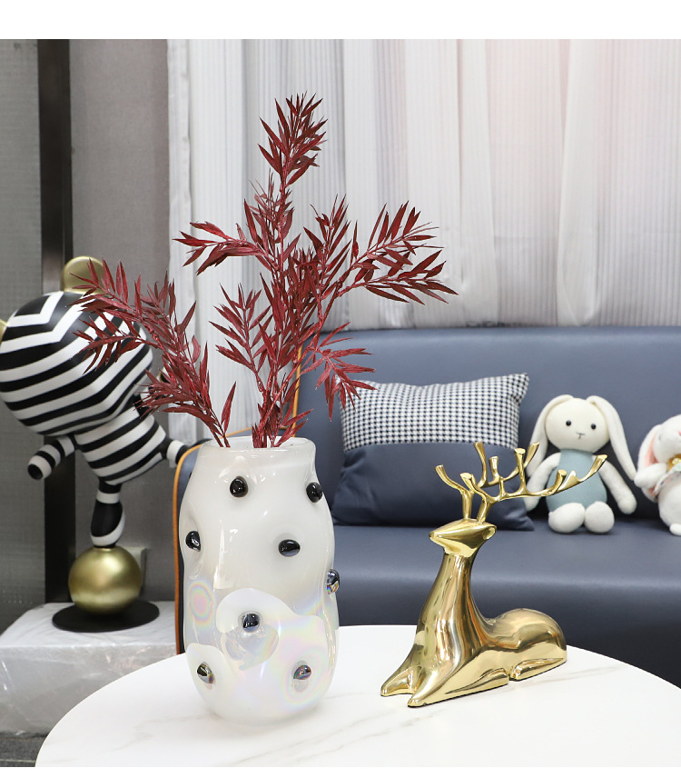 현대 간단한 기하학적 검은 웨이브 도트 유리 꽃병 데스크탑 장식품 거실 식당 TV 캐비닛 홈 장식