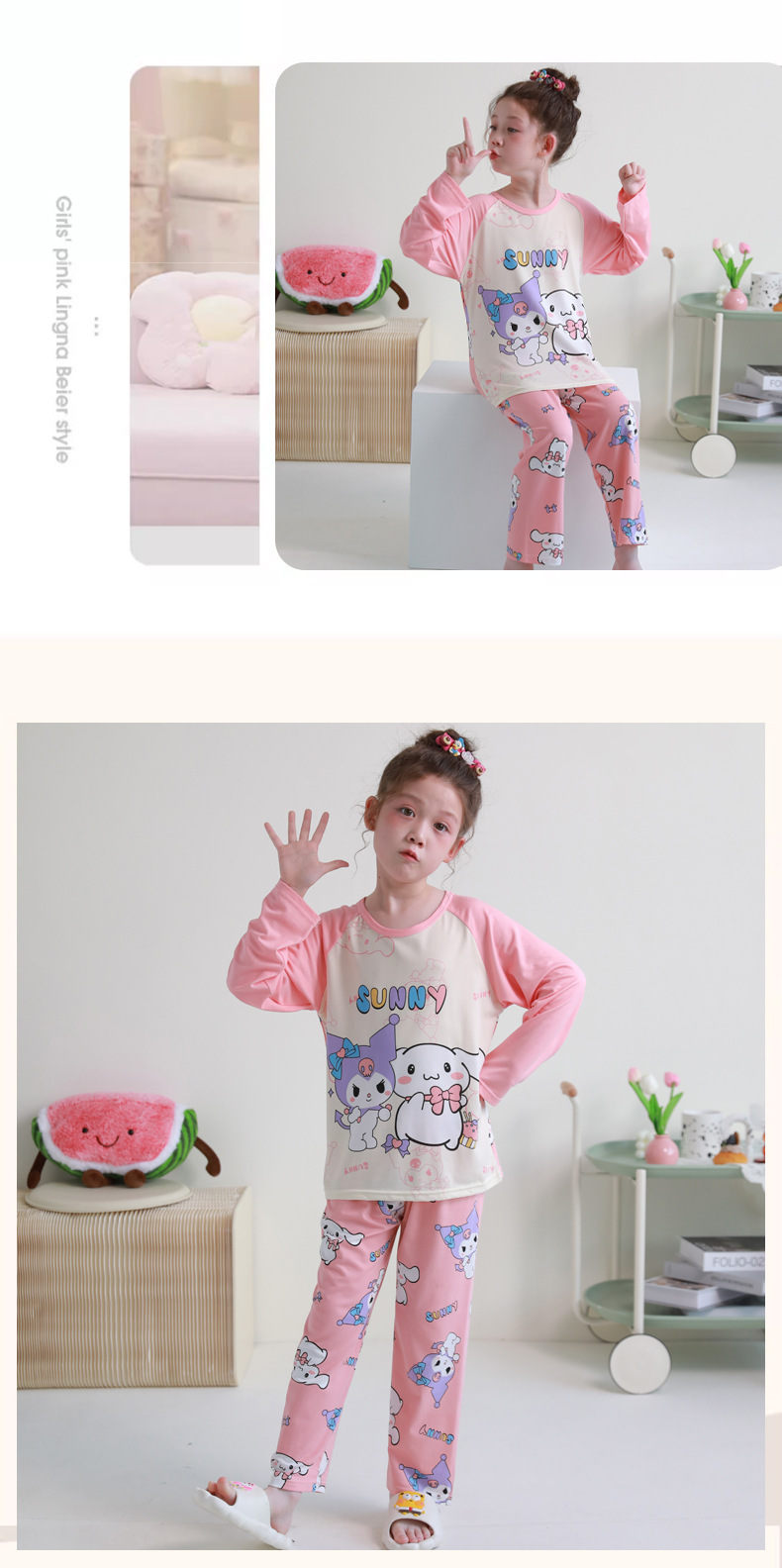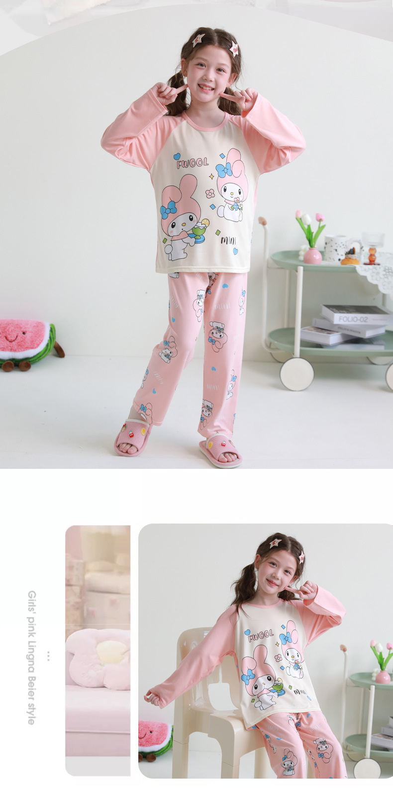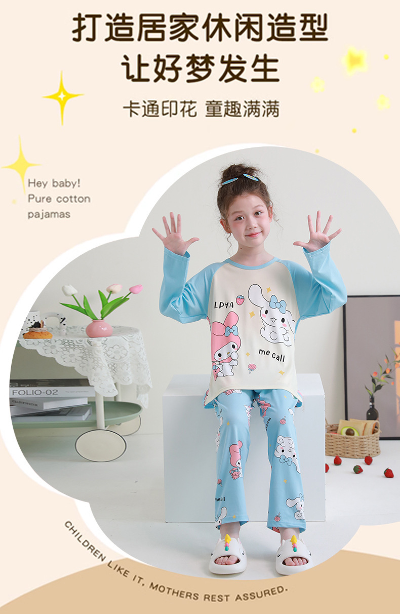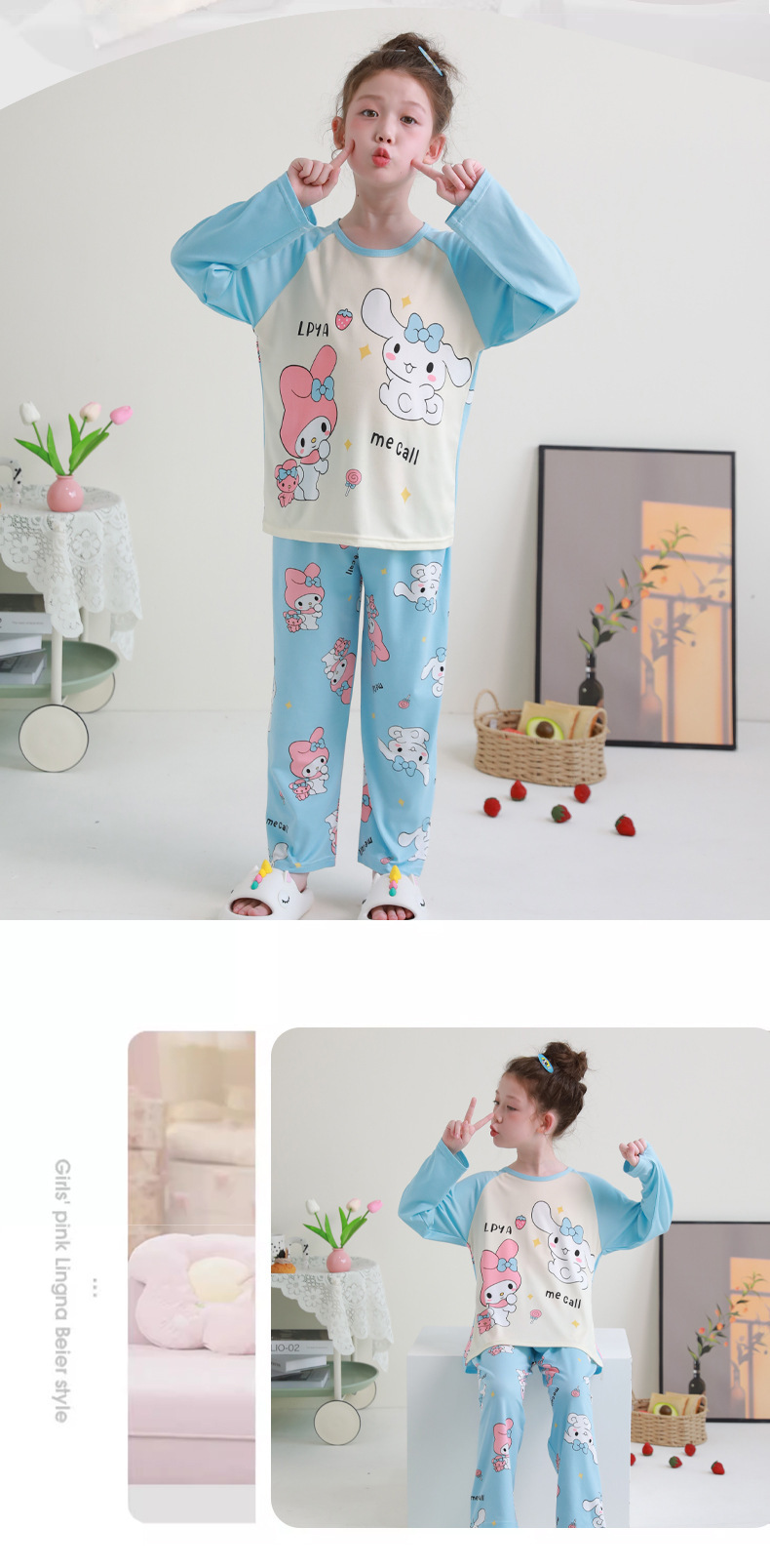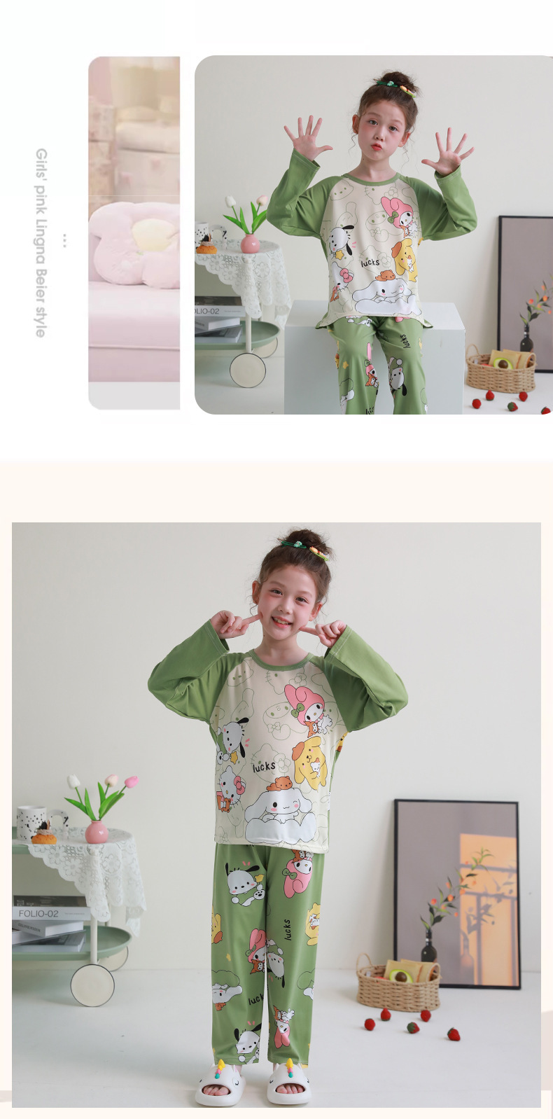 소녀 잠옷 봄과 가을 새로운 2024 만화 어린이 얇은 긴 소매 세트 어린이 소녀 중 큰 어린이 홈 옷