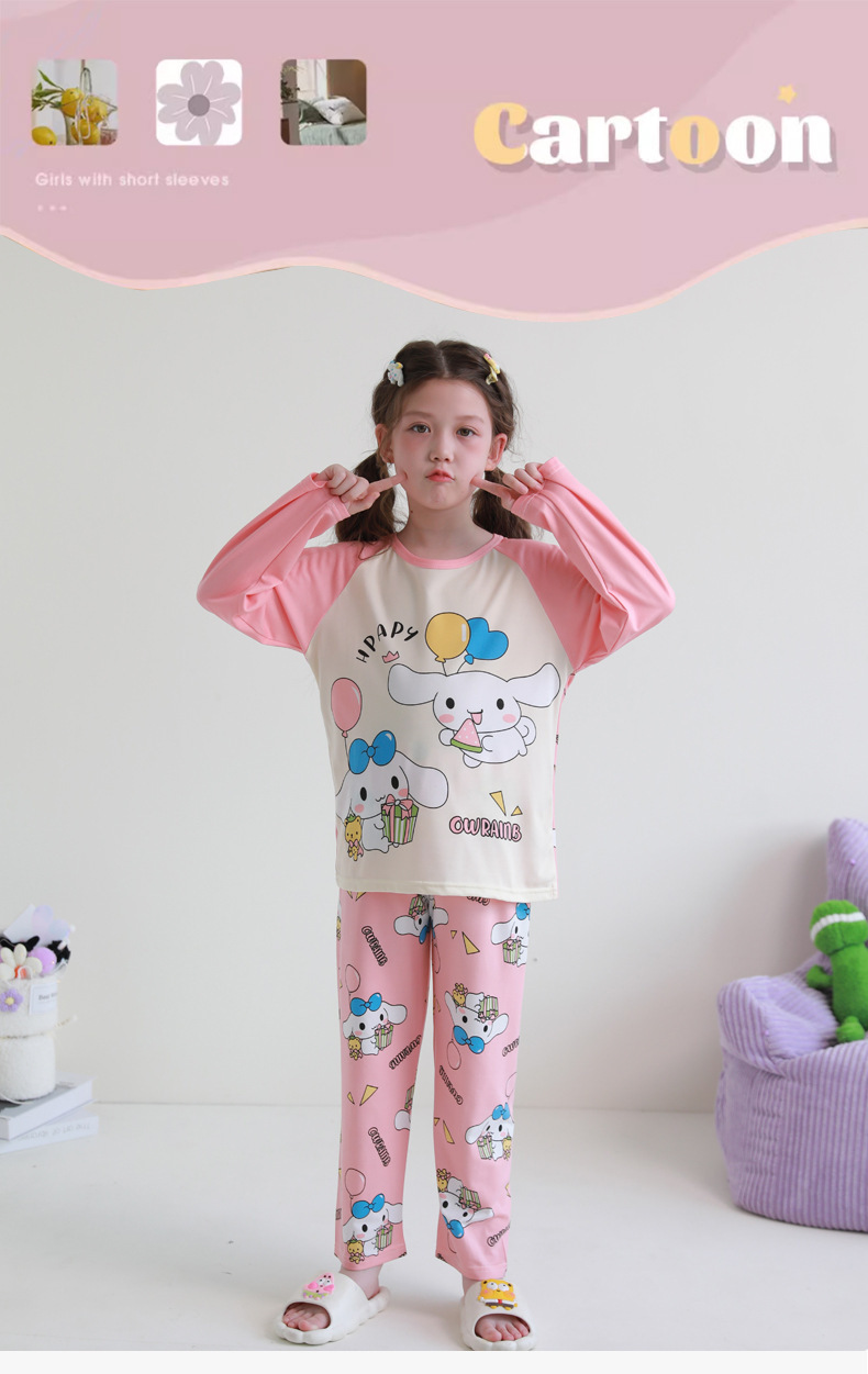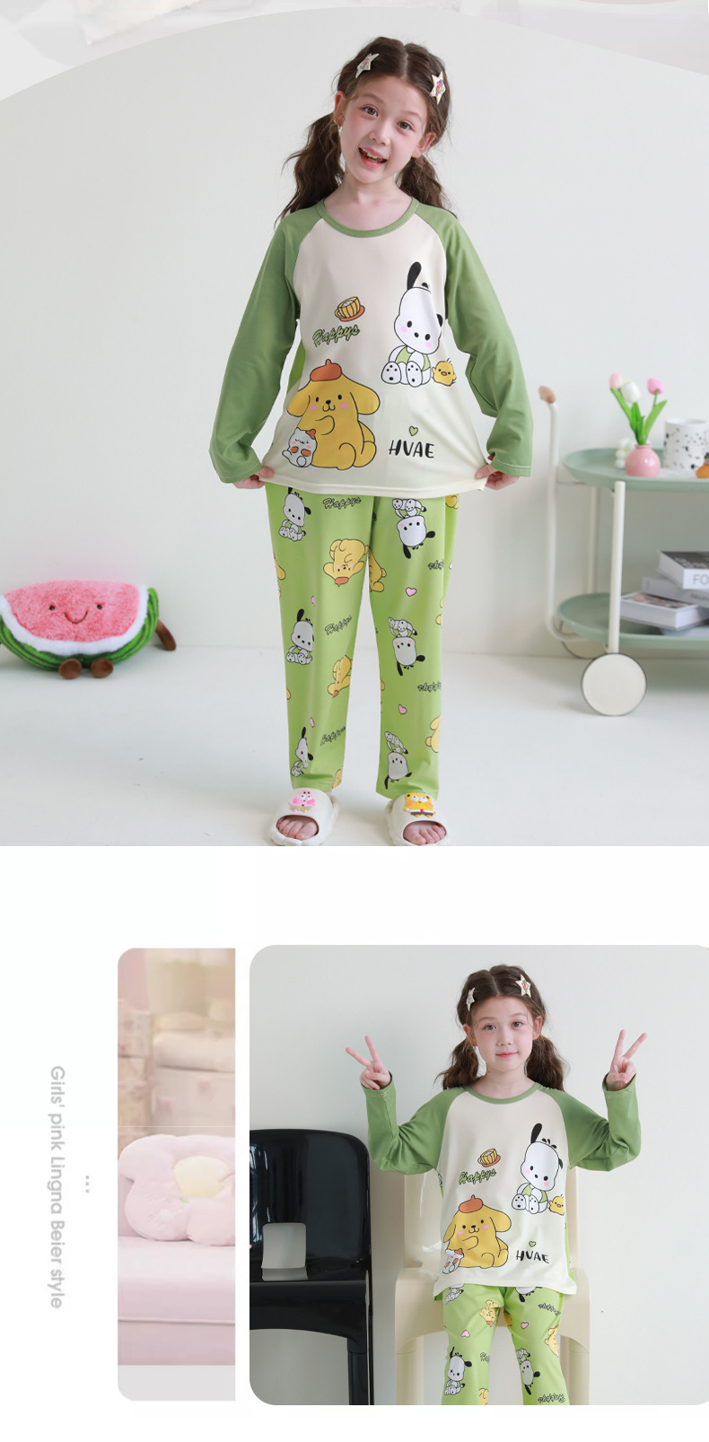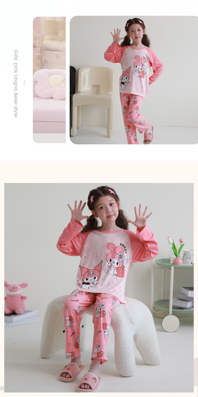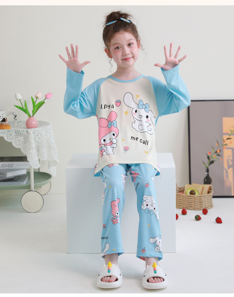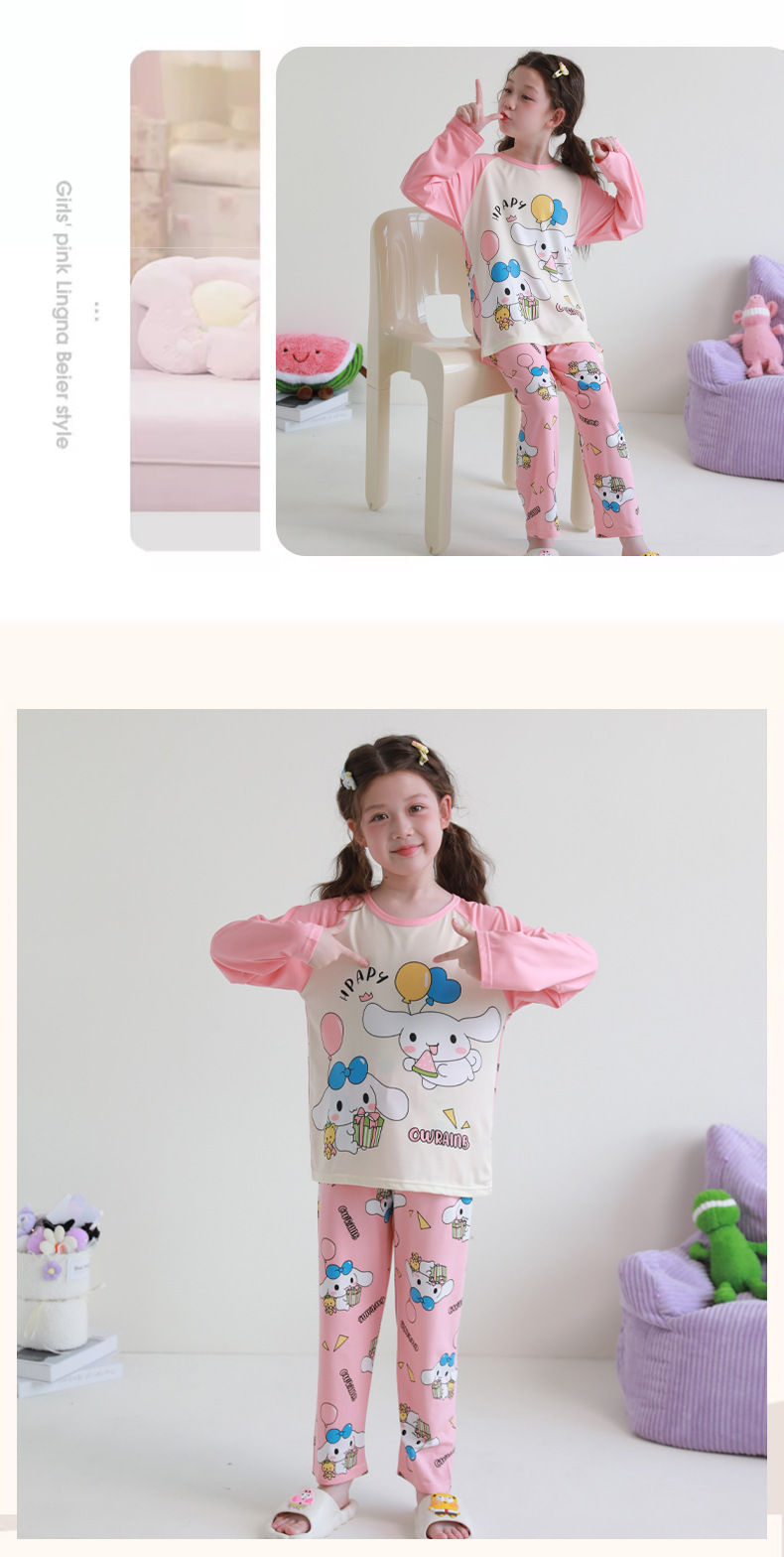 소녀 잠옷 봄과 가을 새로운 2024 만화 어린이 얇은 긴 소매 세트 어린이 소녀 중 큰 어린이 홈 옷