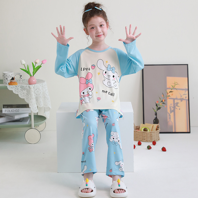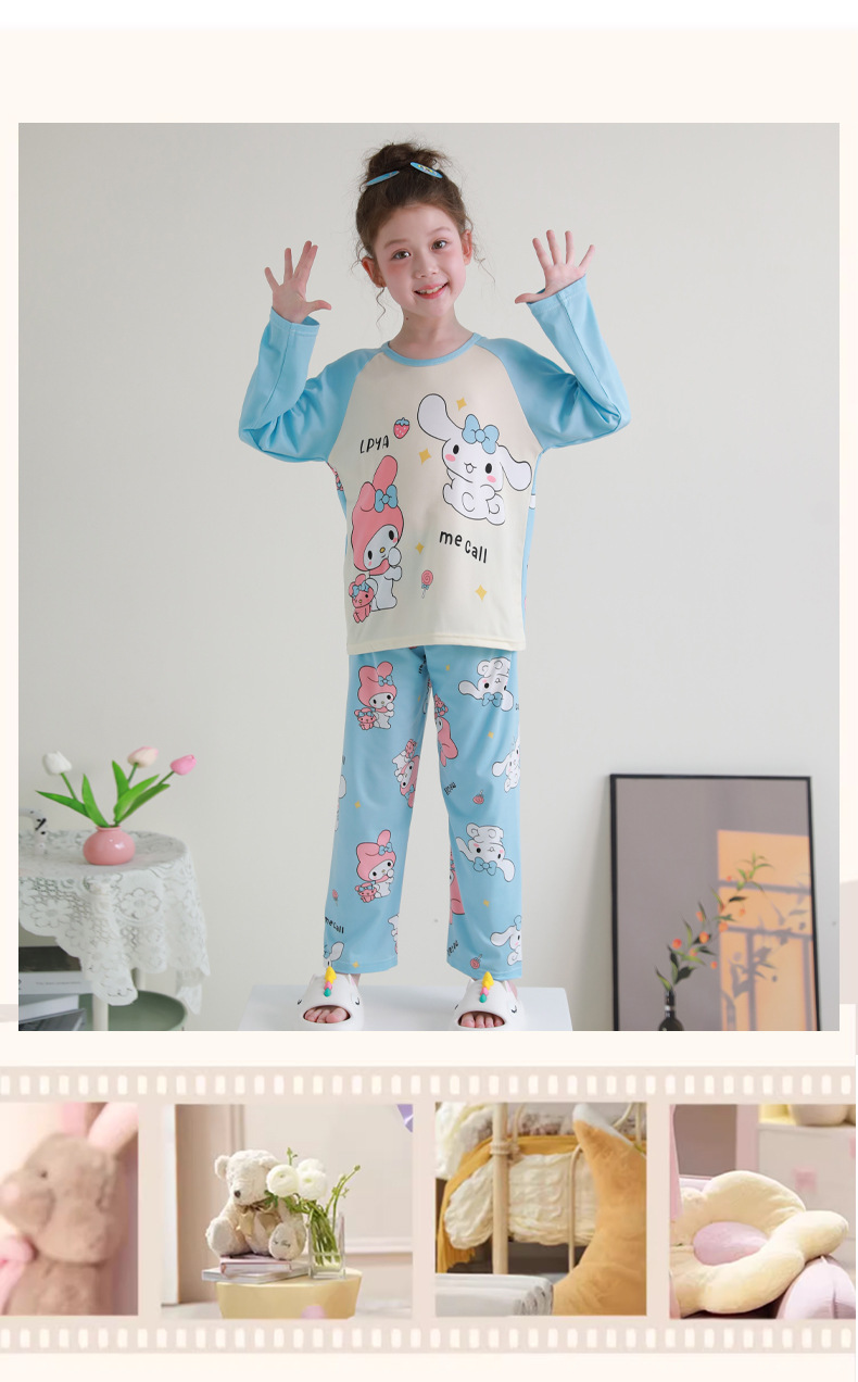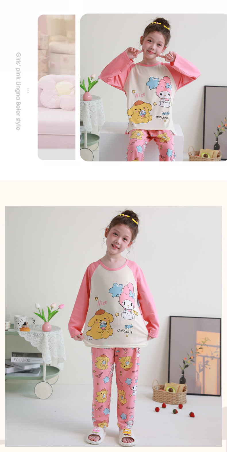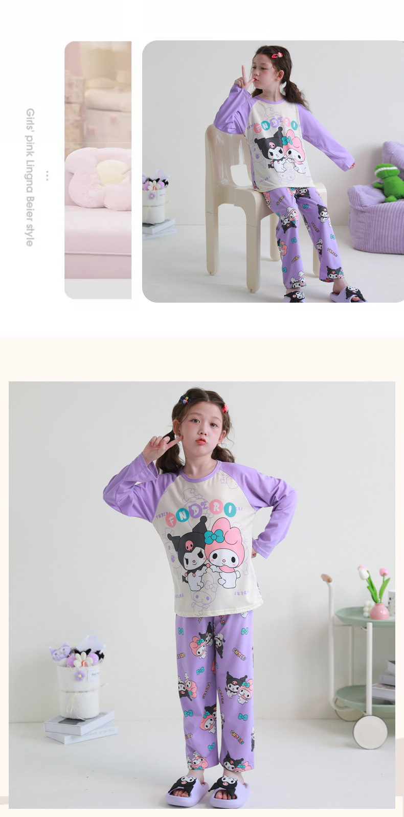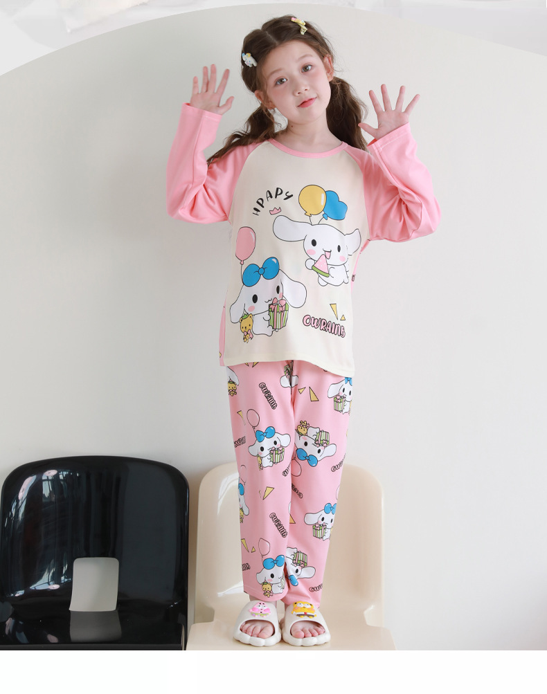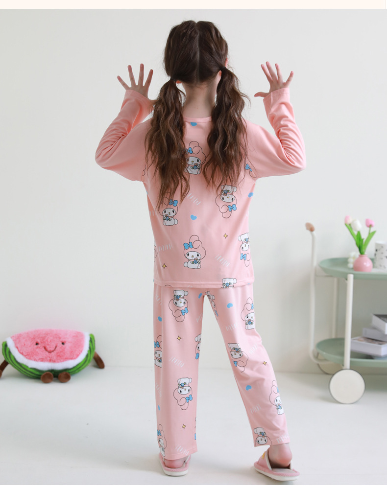 소녀 잠옷 봄과 가을 새로운 2024 만화 어린이 얇은 긴 소매 세트 어린이 소녀 중 큰 어린이 홈 옷