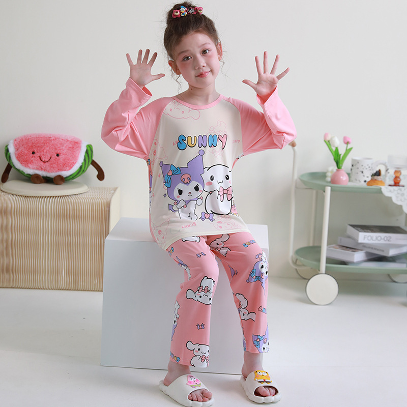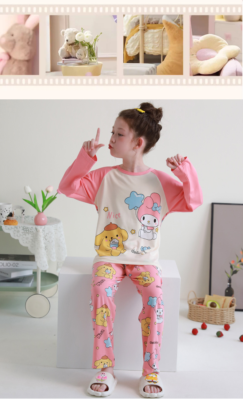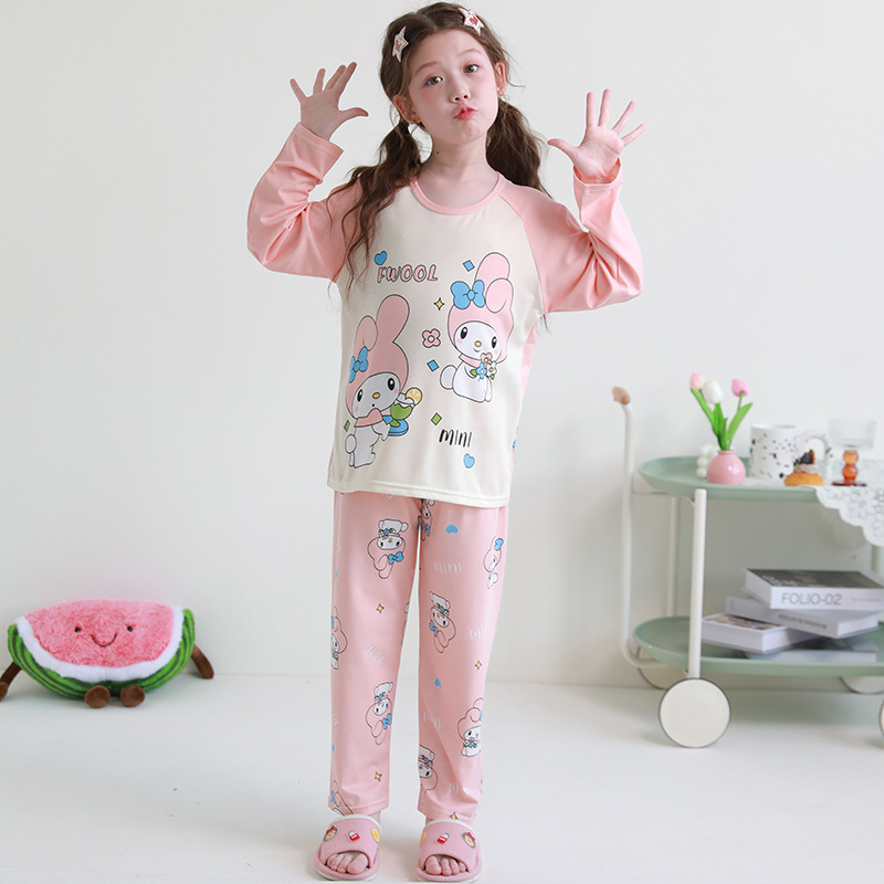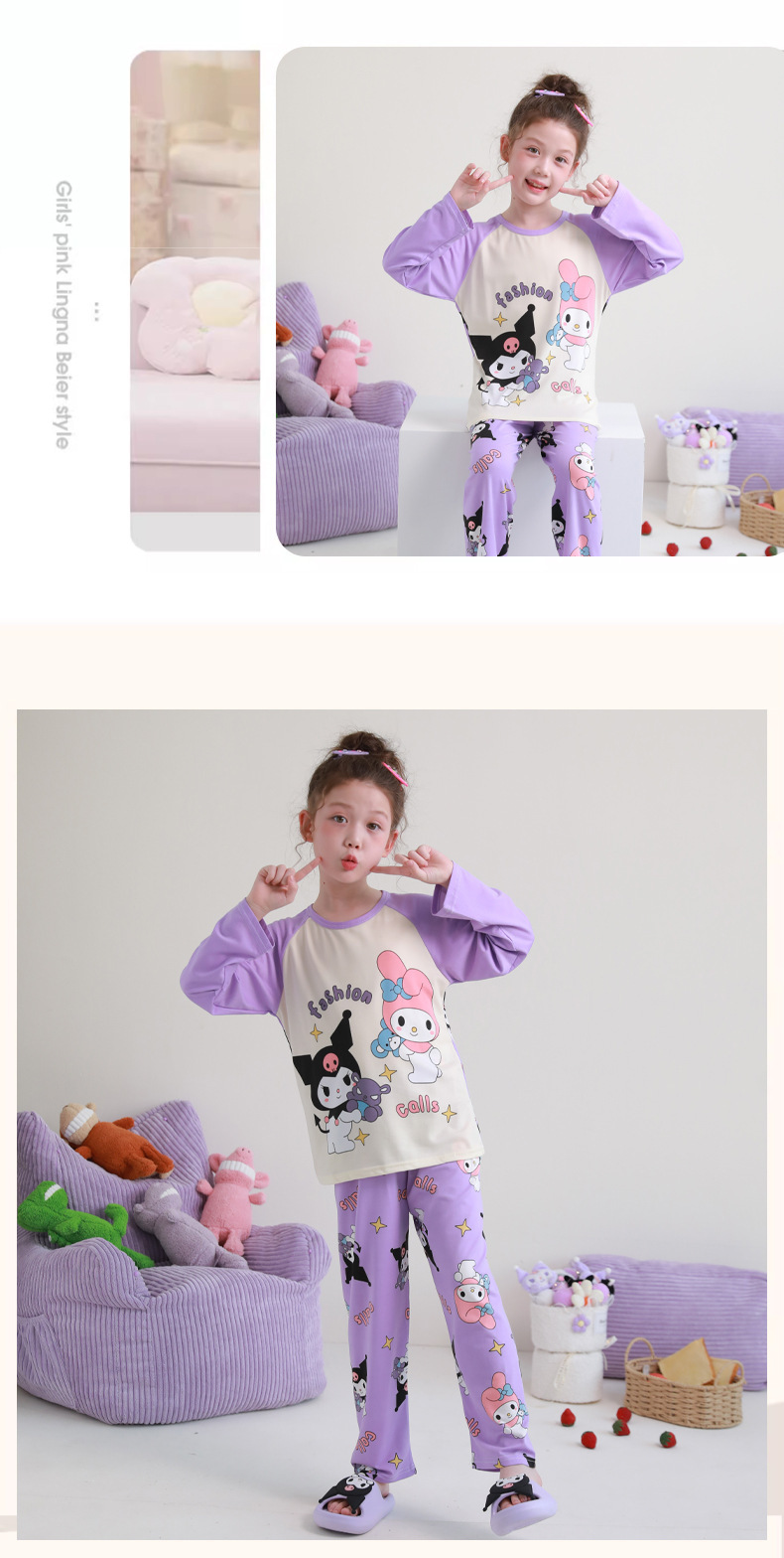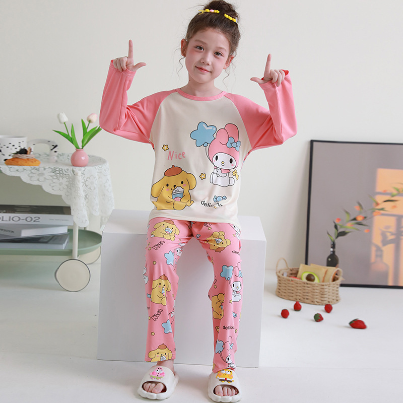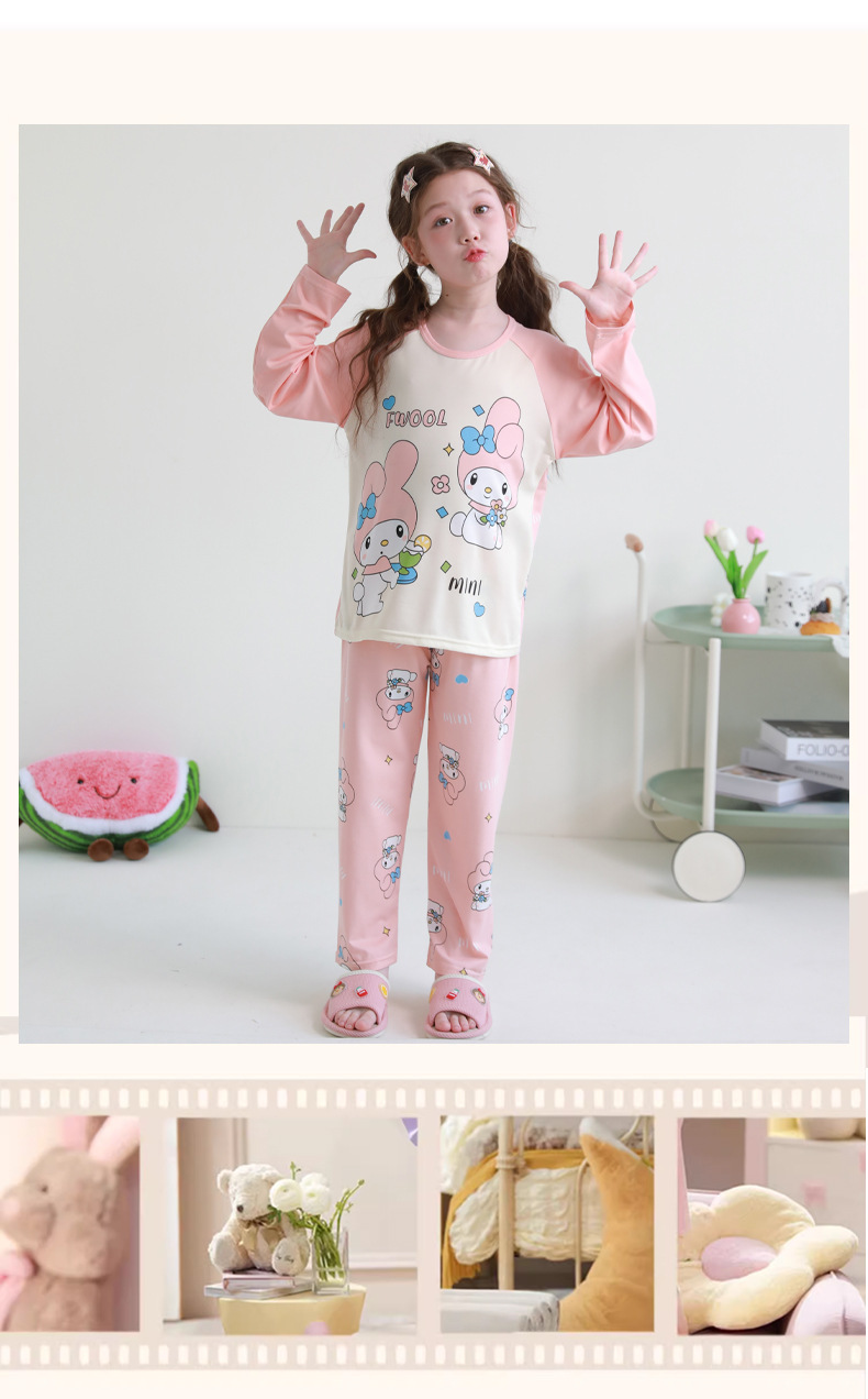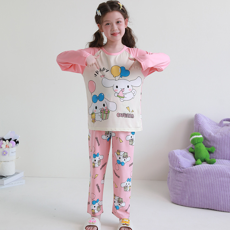 소녀 잠옷 봄과 가을 새로운 2024 만화 어린이 얇은 긴 소매 세트 어린이 소녀 중 큰 어린이 홈 옷