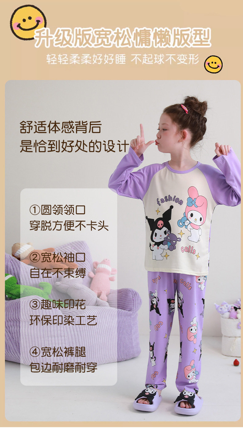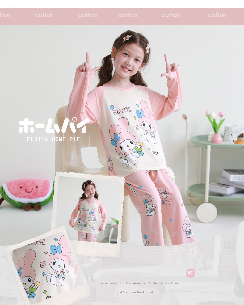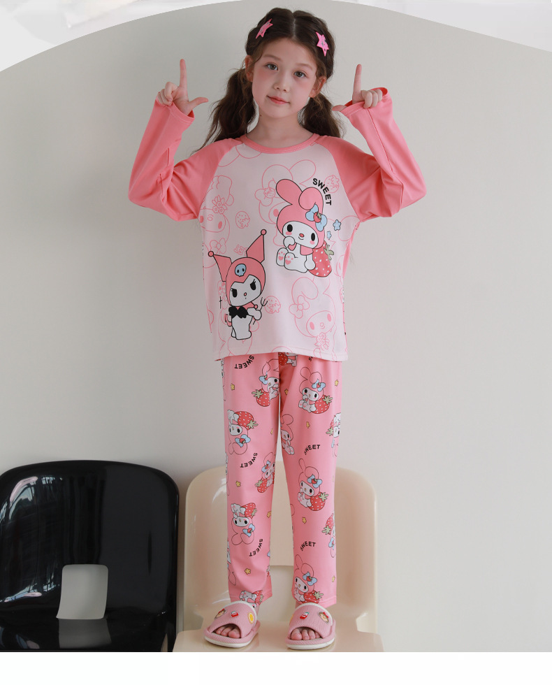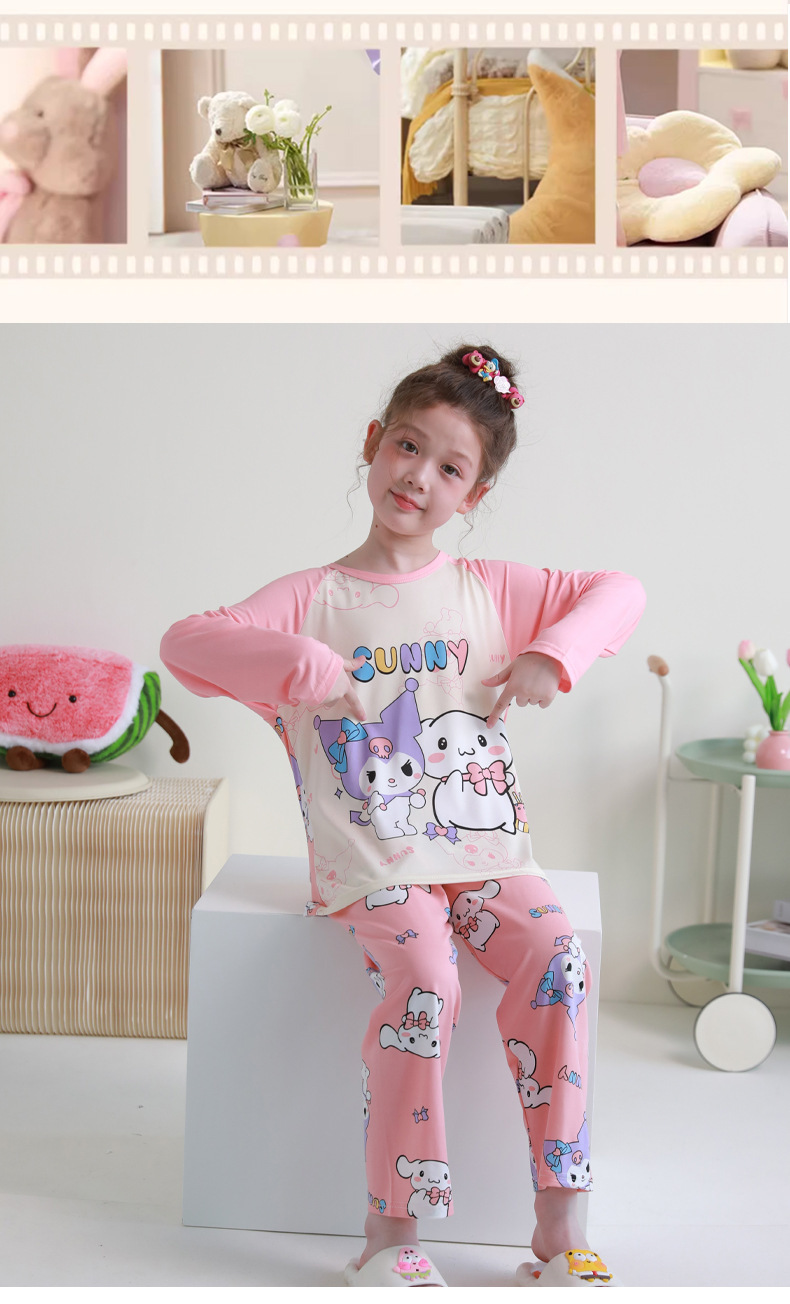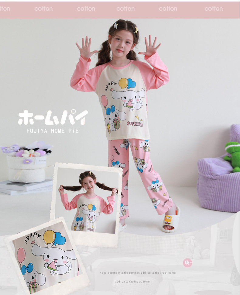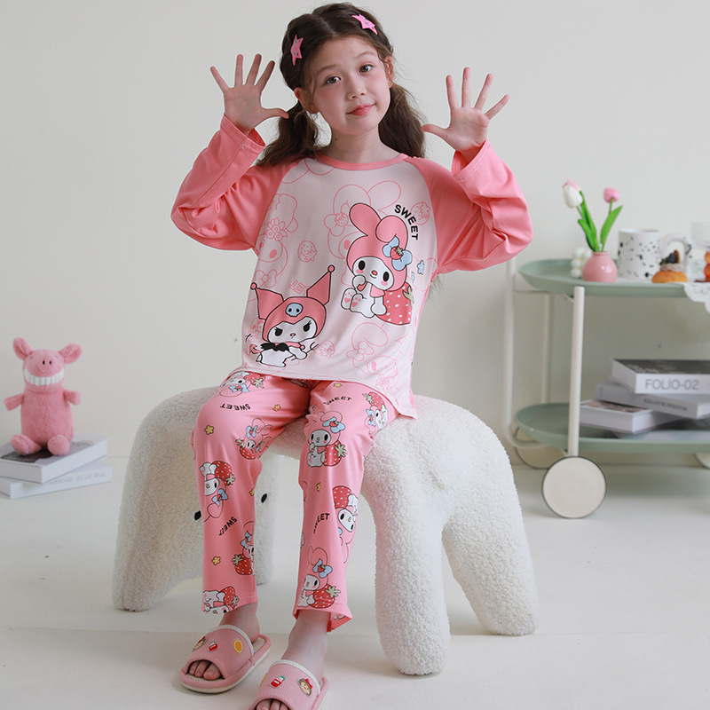 소녀 잠옷 봄과 가을 새로운 2024 만화 어린이 얇은 긴 소매 세트 어린이 소녀 중 큰 어린이 홈 옷