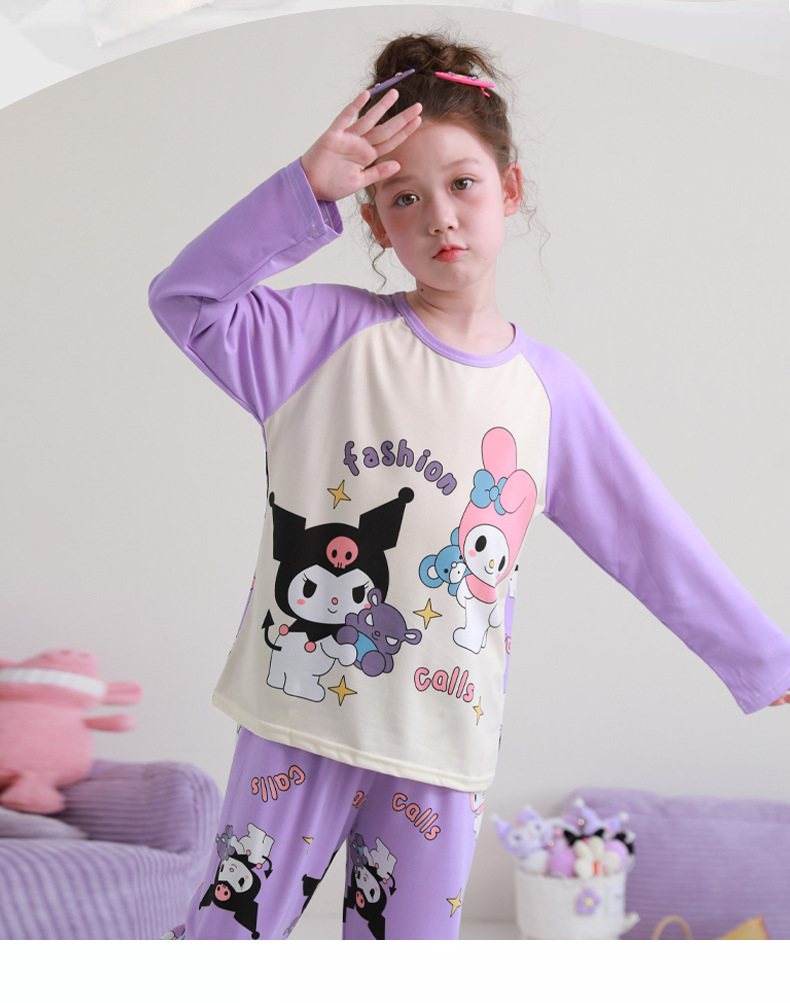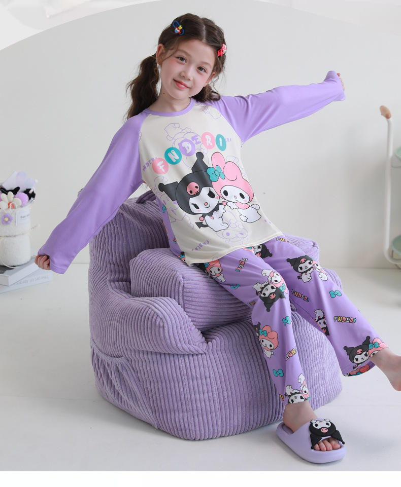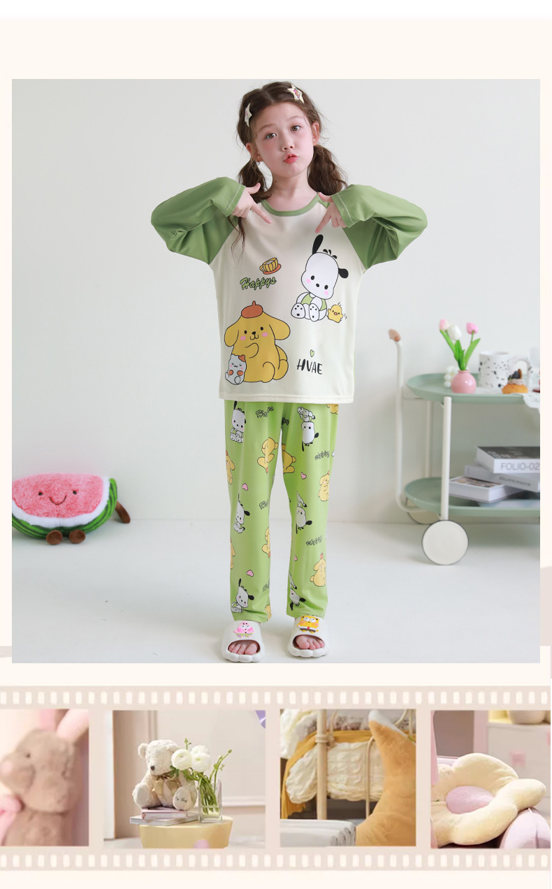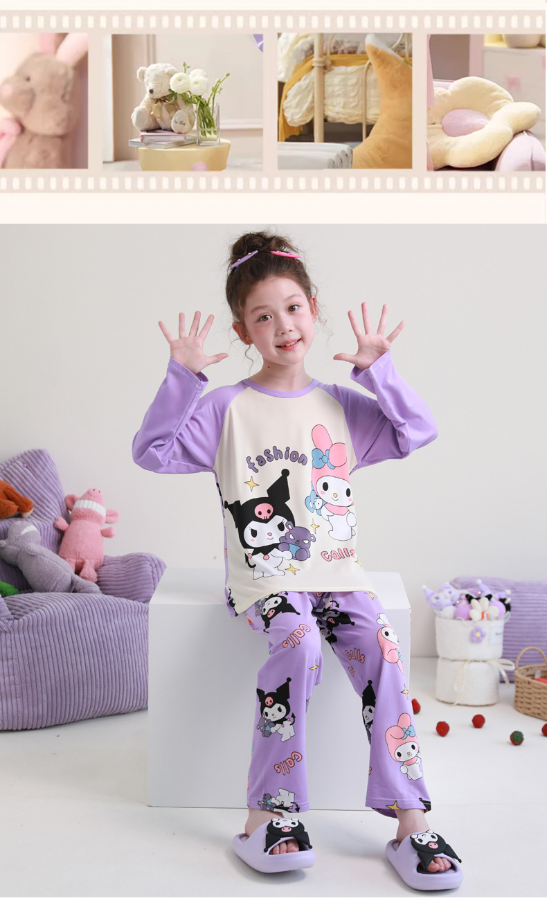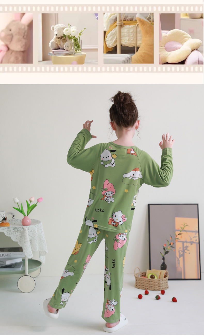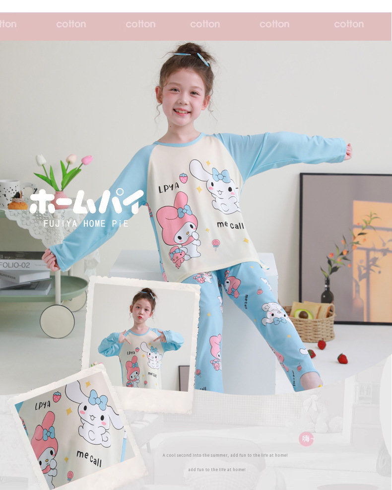 소녀 잠옷 봄과 가을 새로운 2024 만화 어린이 얇은 긴 소매 세트 어린이 소녀 중 큰 어린이 홈 옷