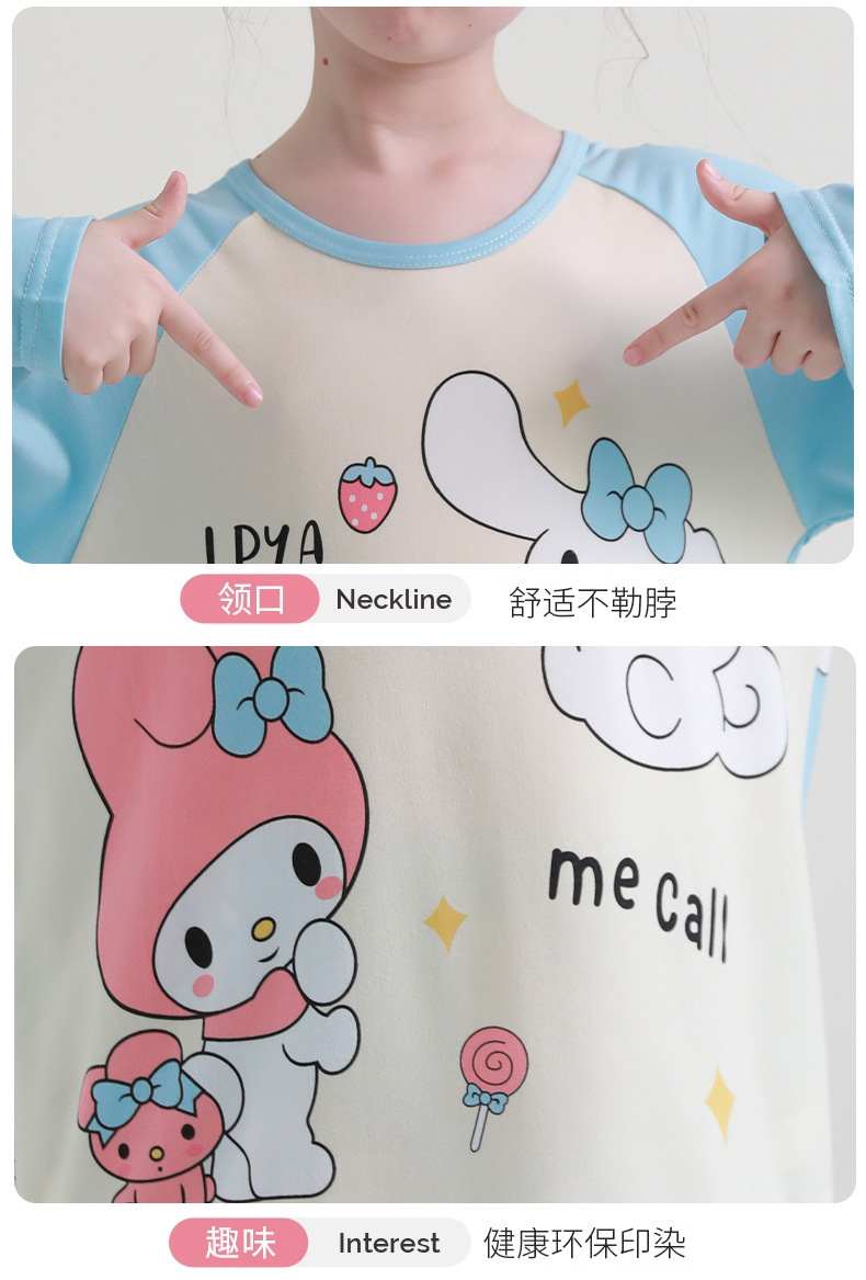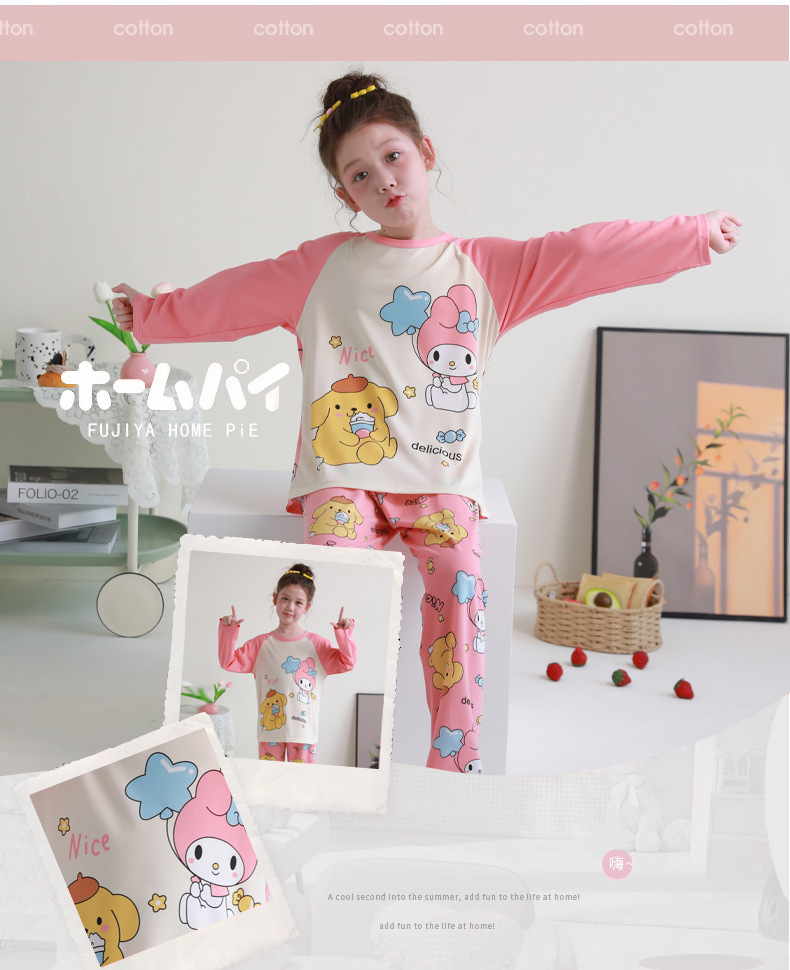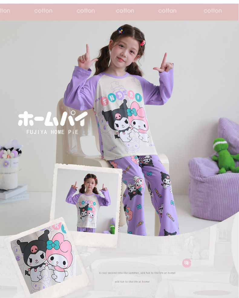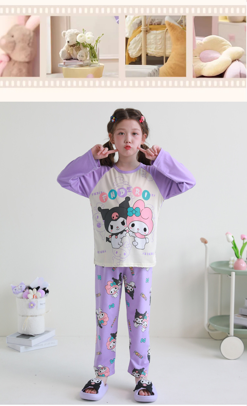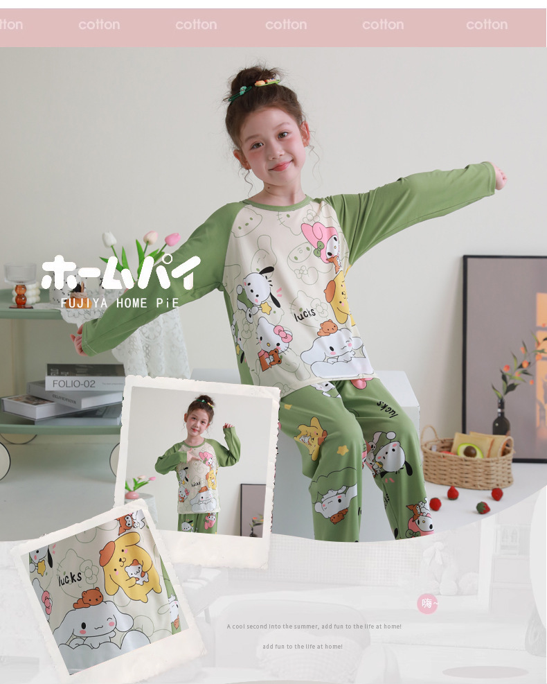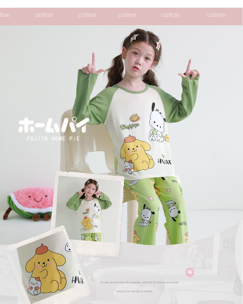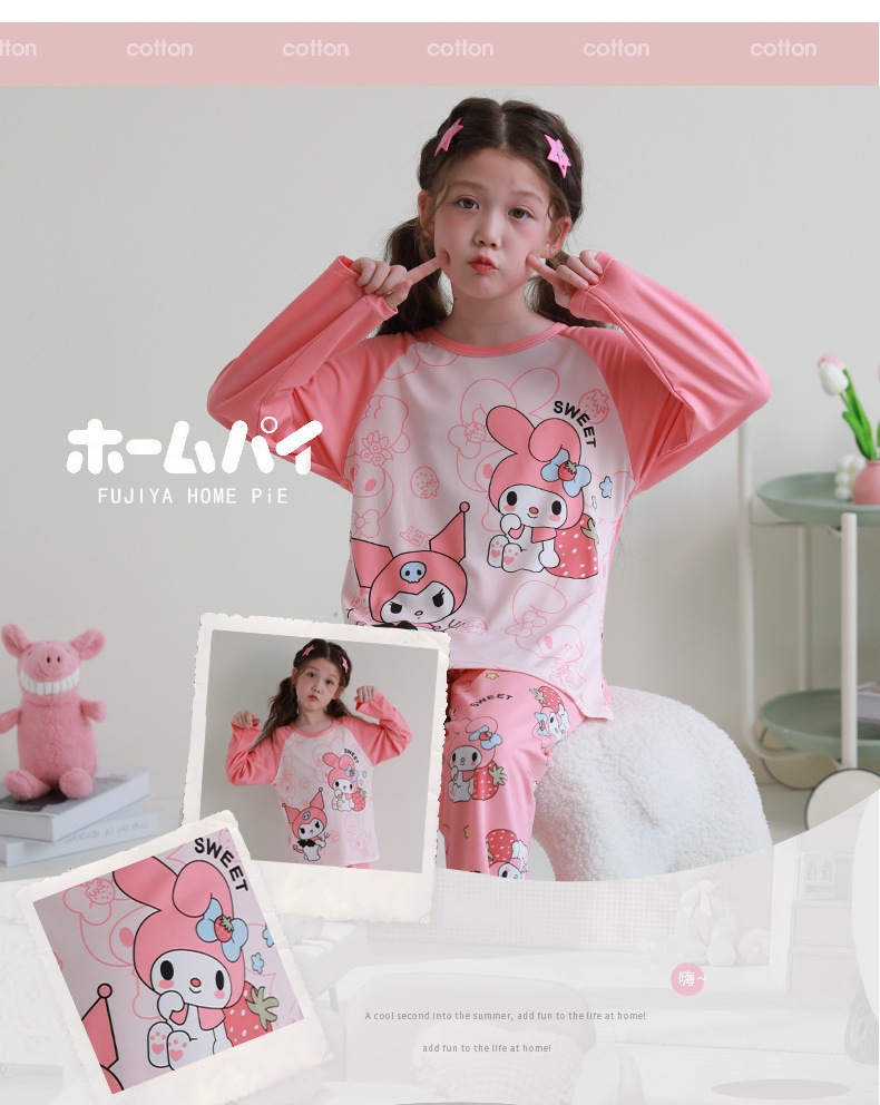 소녀 잠옷 봄과 가을 새로운 2024 만화 어린이 얇은 긴 소매 세트 어린이 소녀 중 큰 어린이 홈 옷