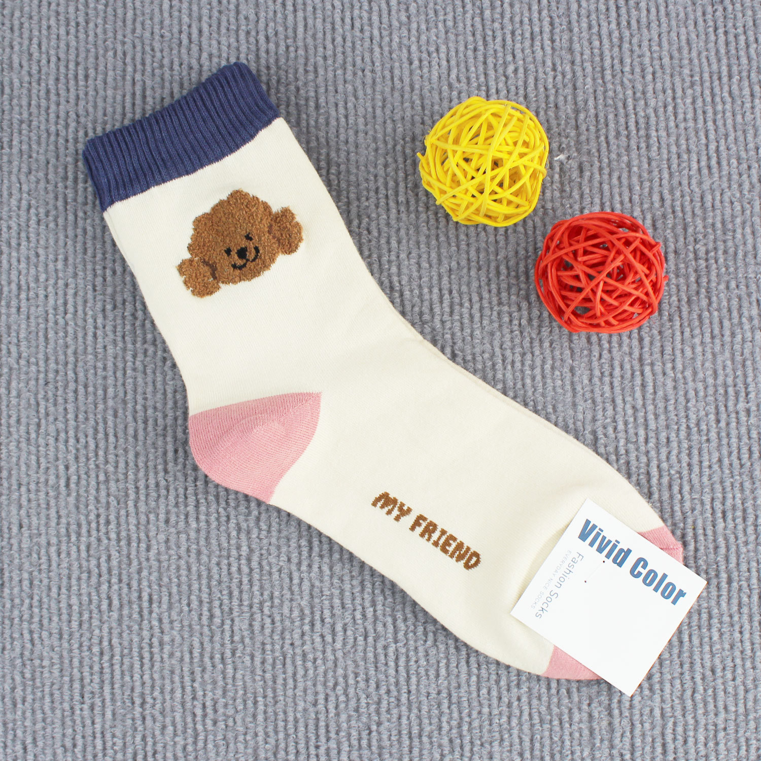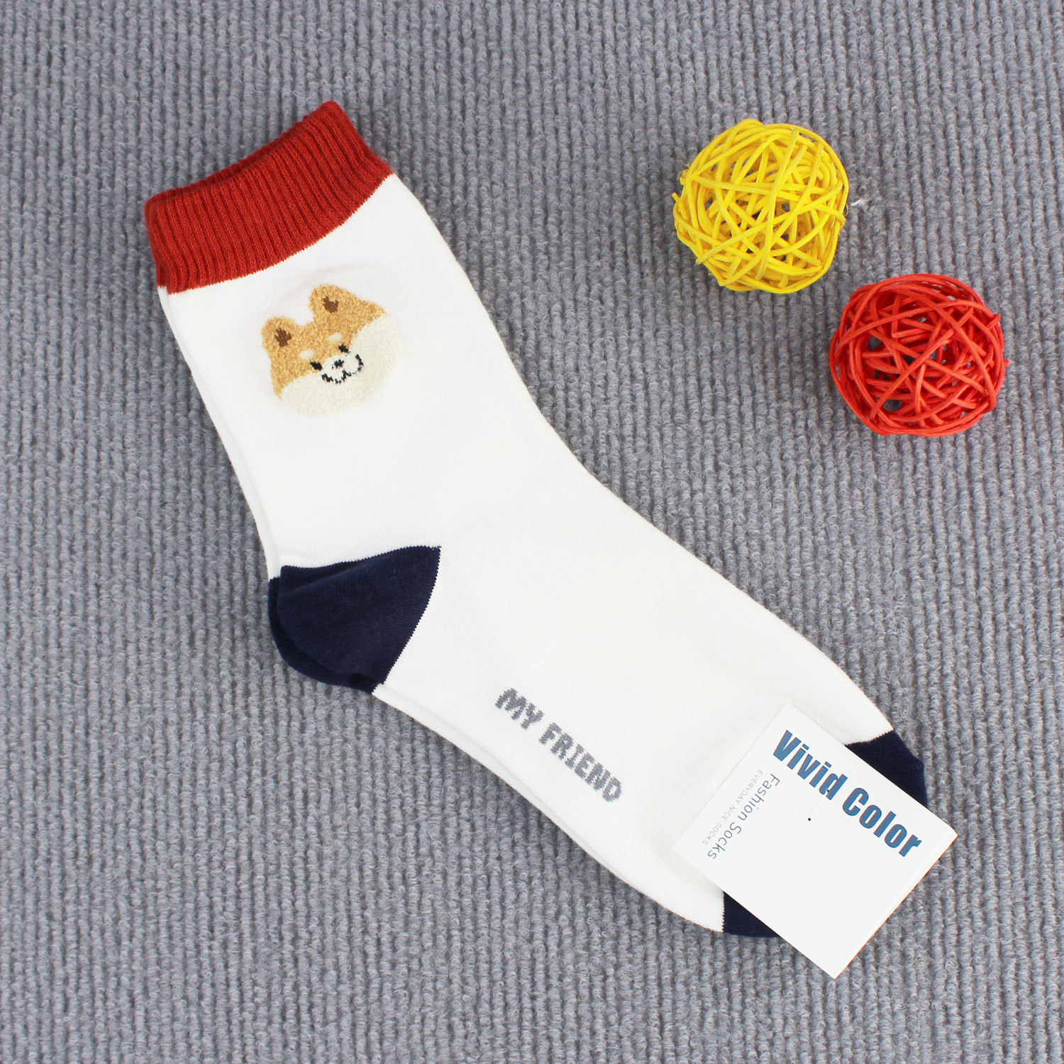 VWC0044 한국 동대문 가을과 겨울 새로운 색상 매칭 만화 강아지 모내기 패턴 여성 튜브 양말스토어 가기