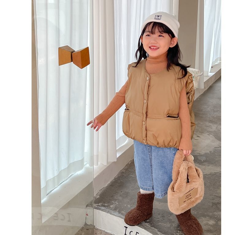 남학생과 여학생을위한 새로운 한국식 어린이 다운 코튼 조끼 가을 및 겨울 두꺼운 따뜻한 어린이 외국 스타일 조끼 착용