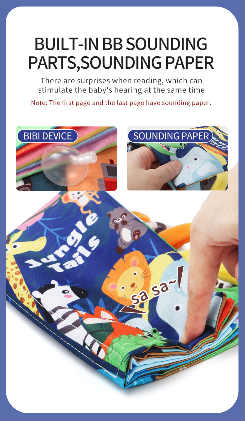국경을 넘는 새로운 아기 꼬리 천 책은 조기 교육 울리는 종이 이야기 책 아기 꼬리 천 책을 물고 찢을 수 있습니다.