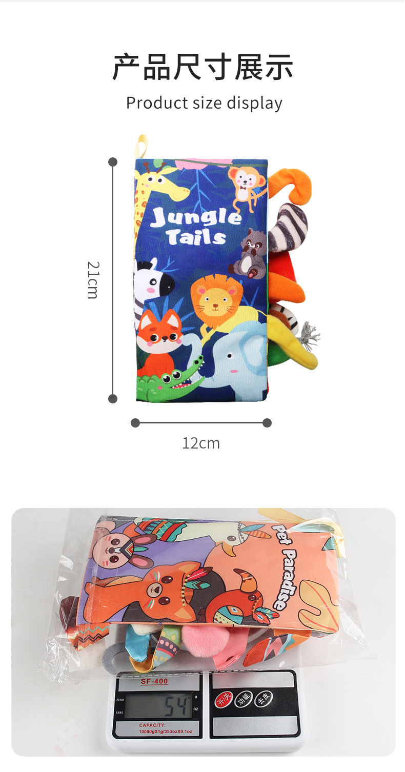 • 인지 도서 6페이지 12면 정원 꼬리 헝겊 책 BB 짖는 소리 + 사운드 페이퍼 + 핸드 스트랩 54G