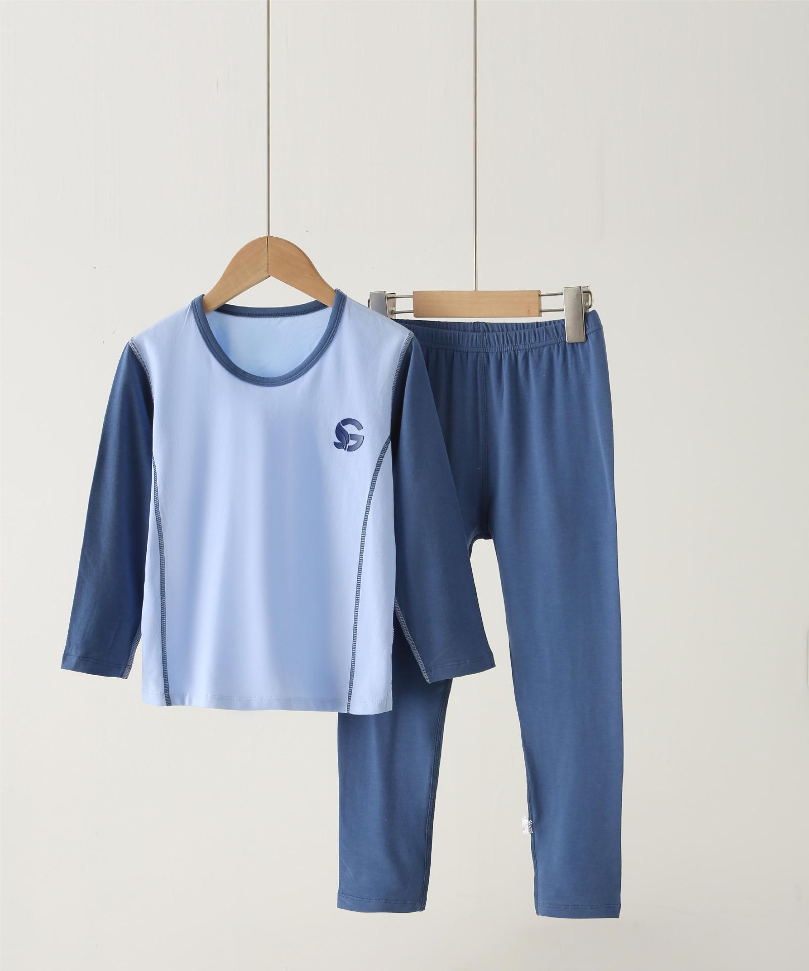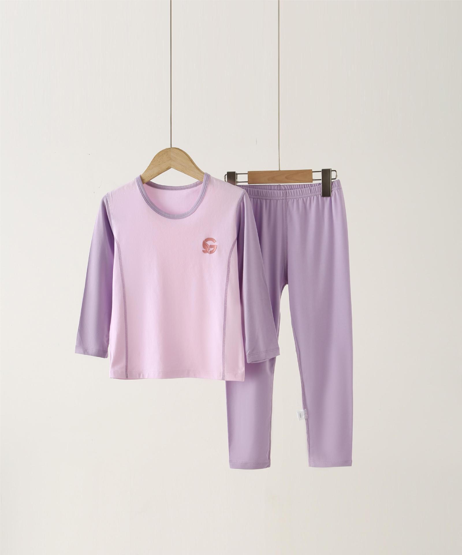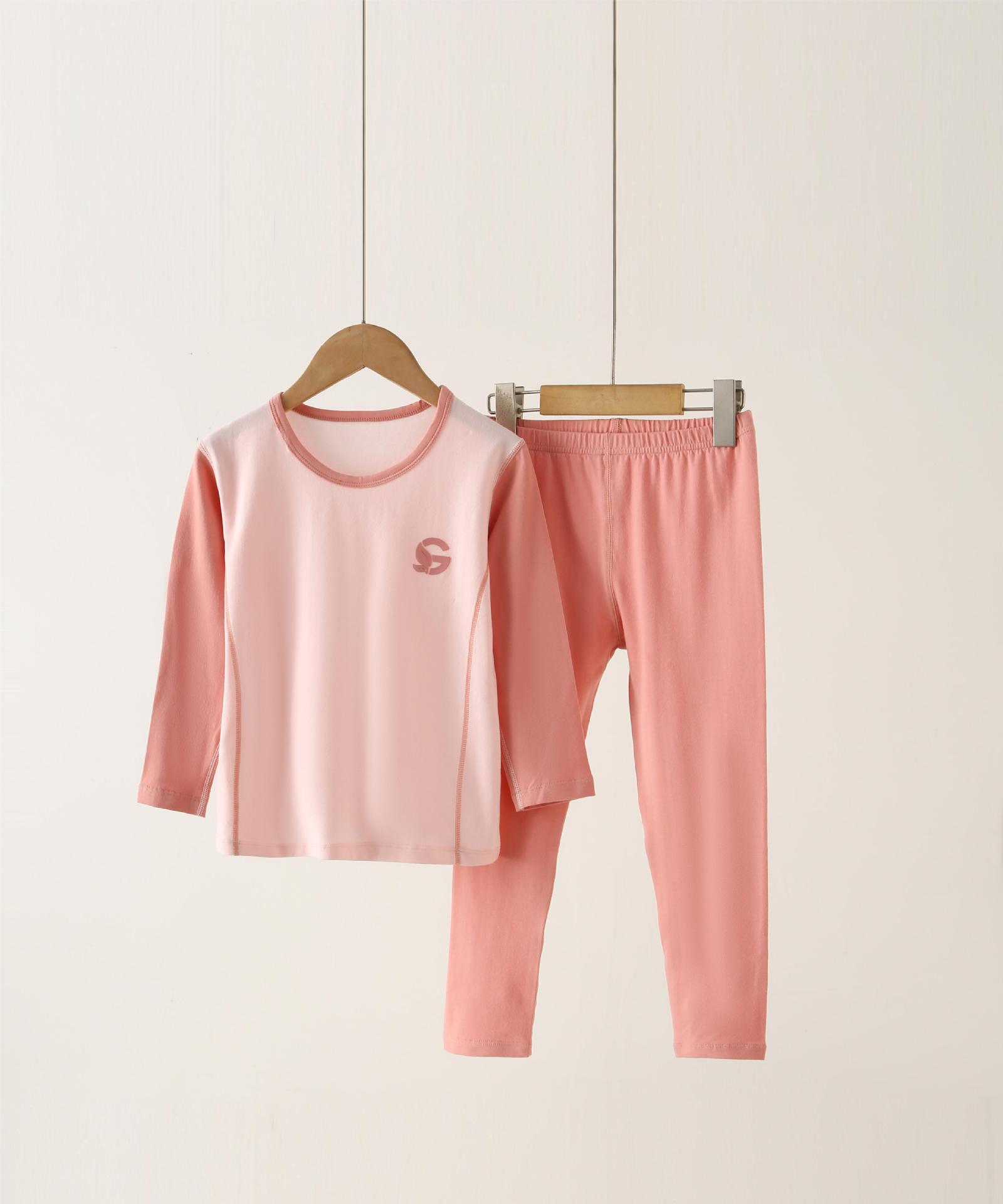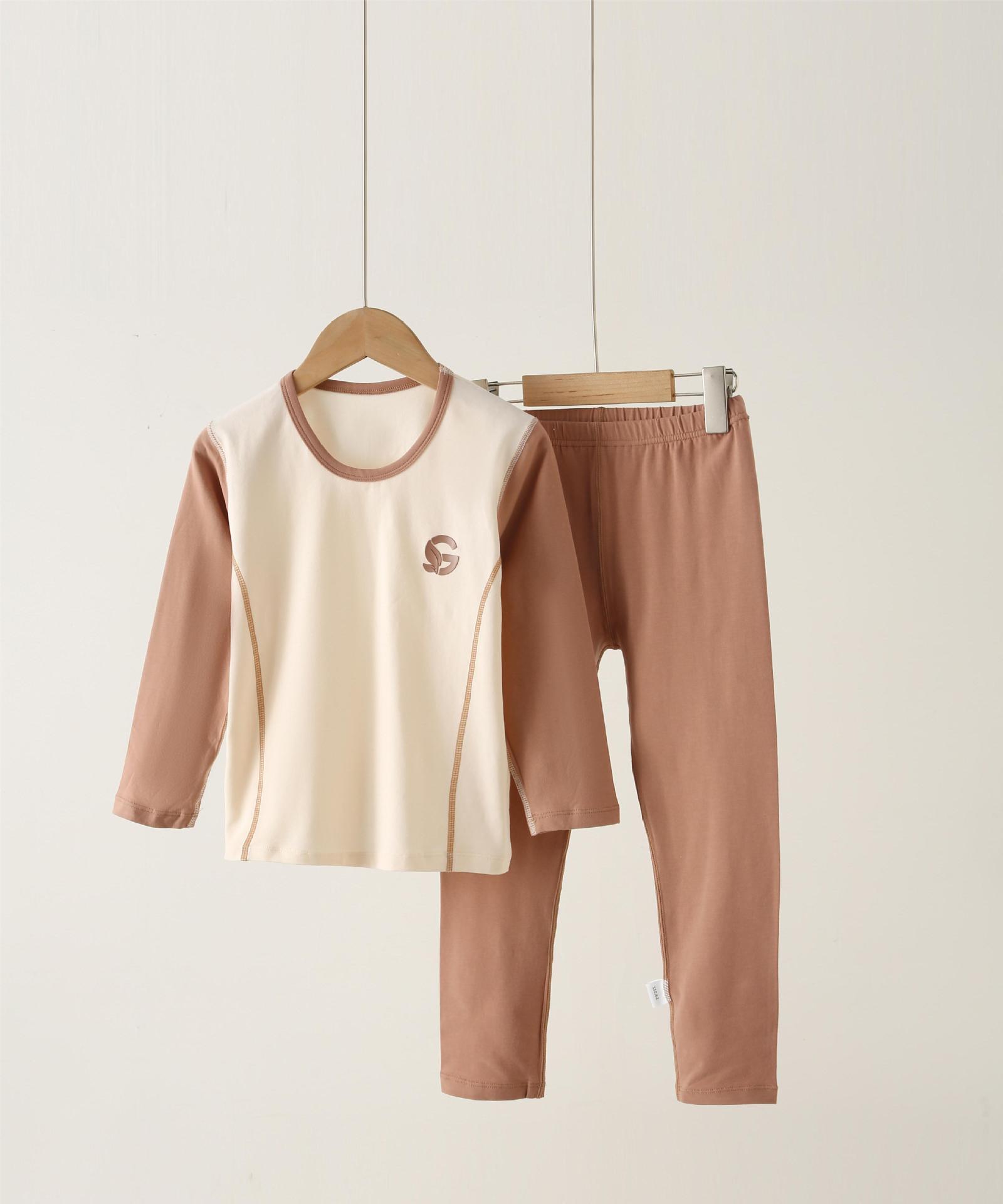 2024 가을과 겨울 새로운 라이크라 뼈없는 여아 홈 옷 소년 가을 옷 바지 세트 아기 잠옷 가을과 겨울