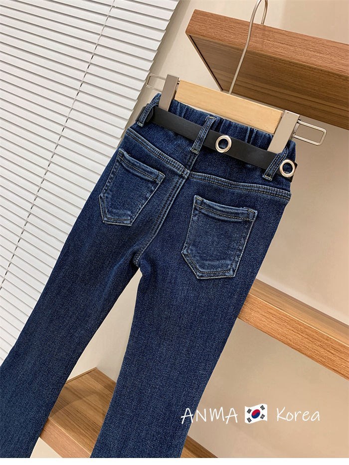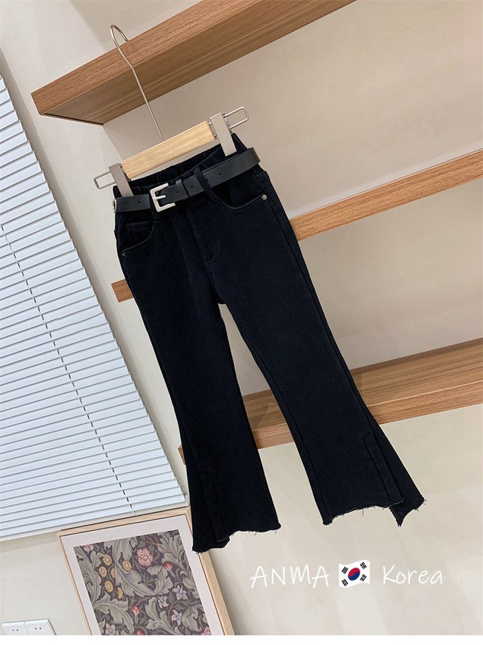 여아 블랙 청바지 2025 봄 신작 아동용 베이비 블루 한국 스타일 슬림하고 세련된 한국 스타일 나팔바지