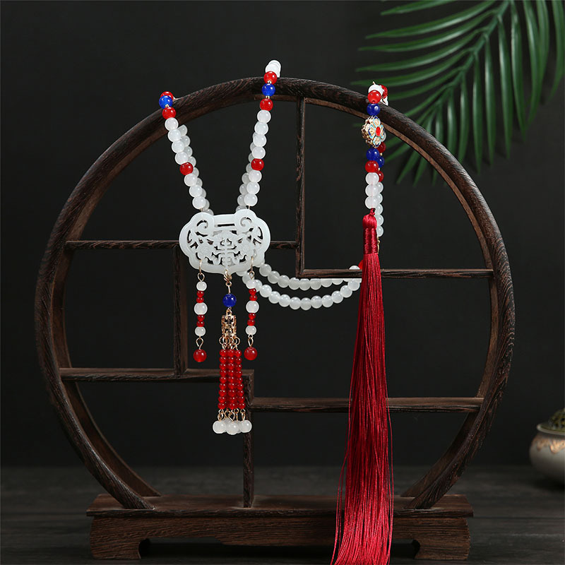 공장 도매 한푸 골동품 부드러운 붉은 화환 모든 긴 술 액세서리 조커 밍 목걸이 다시 구름 술스토어 가기