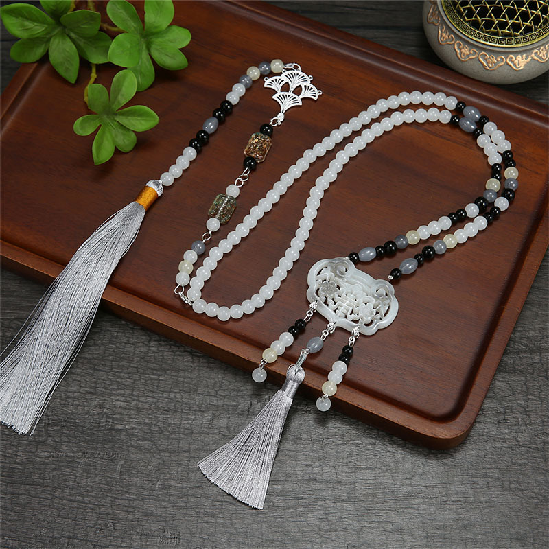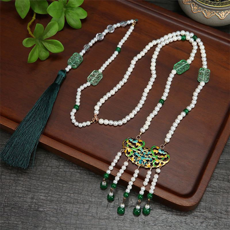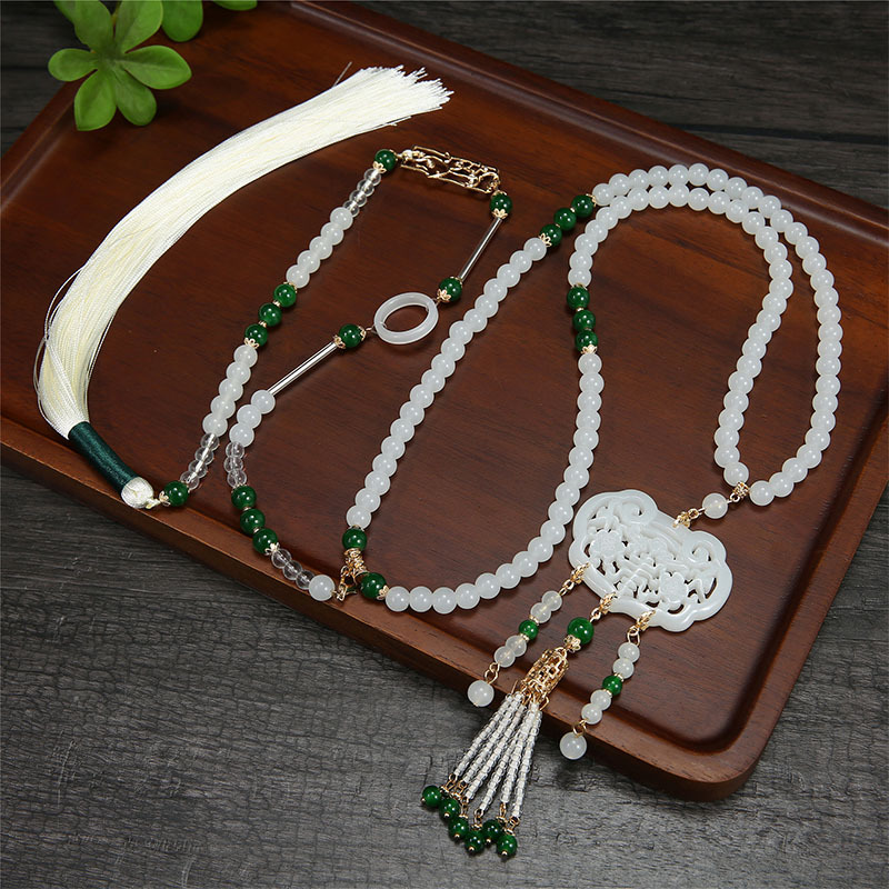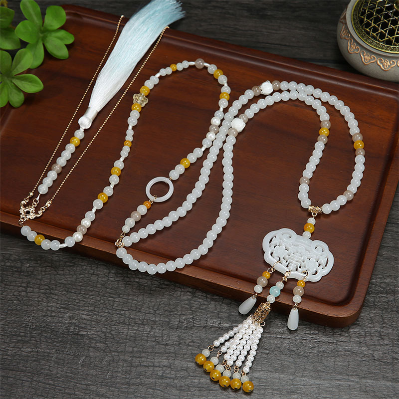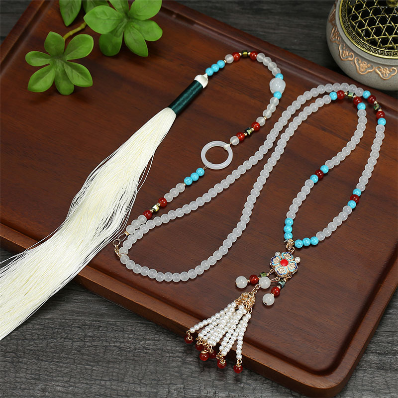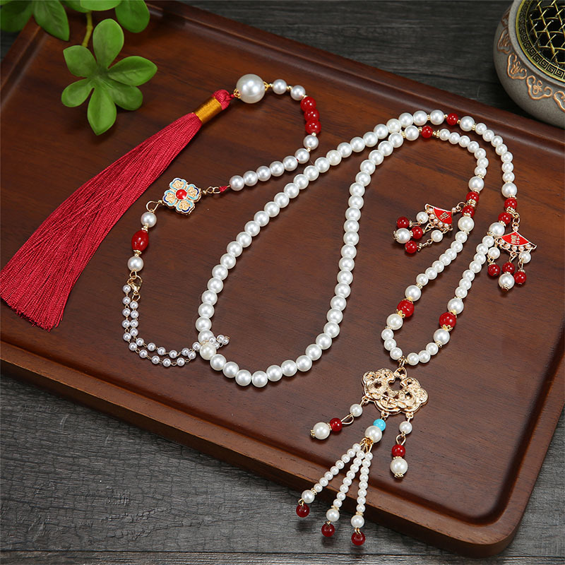 공장 도매 한푸 골동품 부드러운 붉은 화환 모든 긴 술 액세서리 조커 밍 목걸이 다시 구름 술