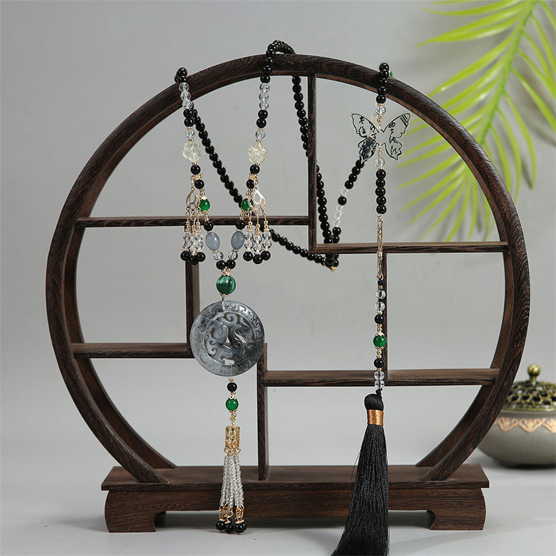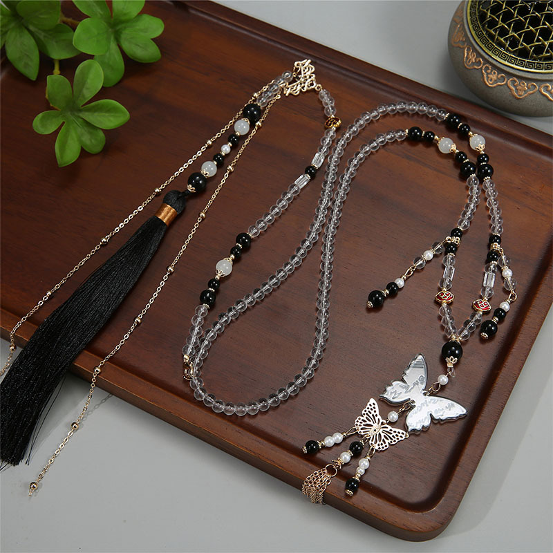 • 검은 구슬 둥근 옥 펜던트 나비 목걸이 + 구름 뒤에