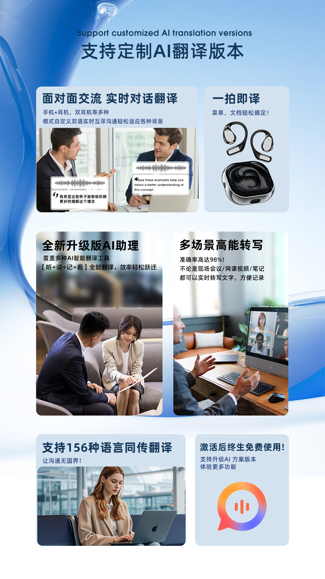 蓝牙耳机 AI翻译耳机 耳机 无线耳机 跨境专供
