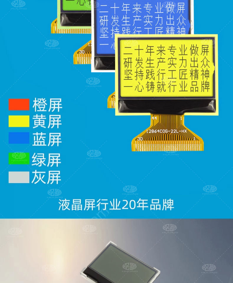 • 회색 화면 노란색 빛 검정색 문자 HJ12864-COG-22L
