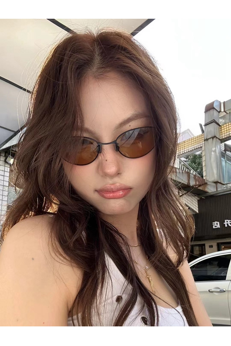 여성을위한 한국 복고풍 금속 고양이 눈 선글라스 2025 새로운 맞춤형 거리 촬영 갈색 둥근 얼굴 선글라스 자외선 차단
