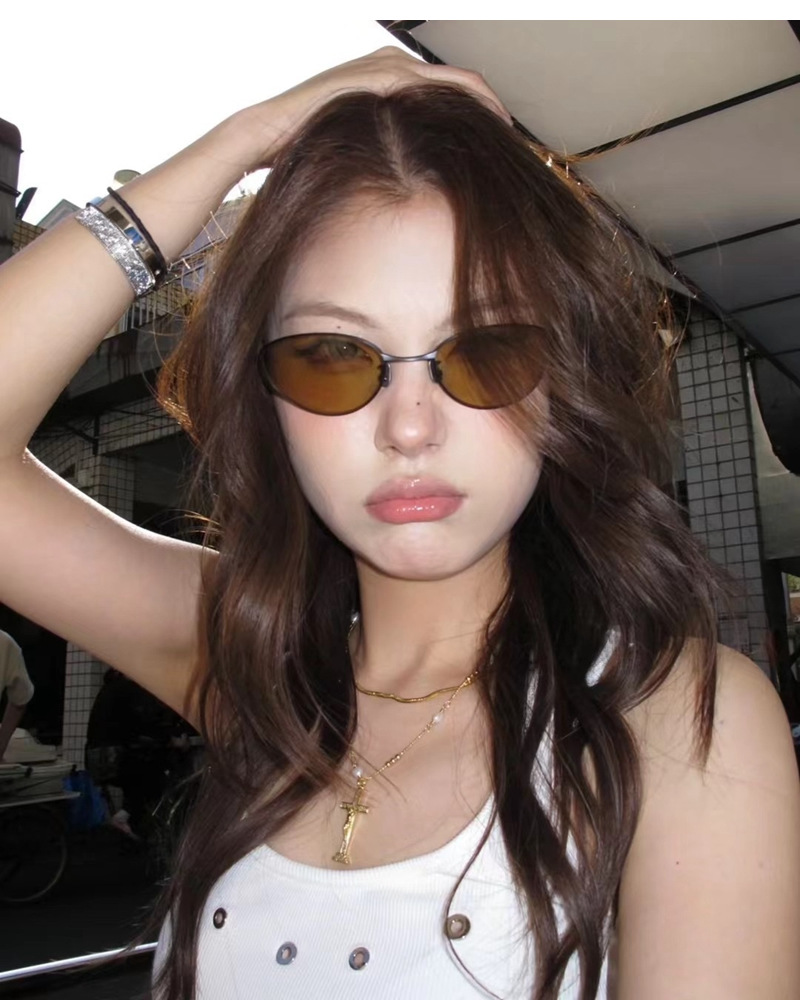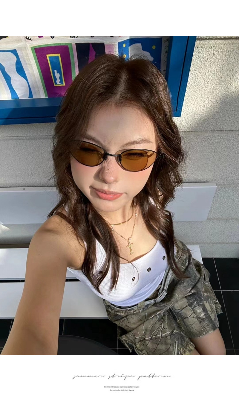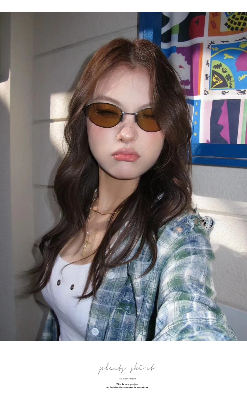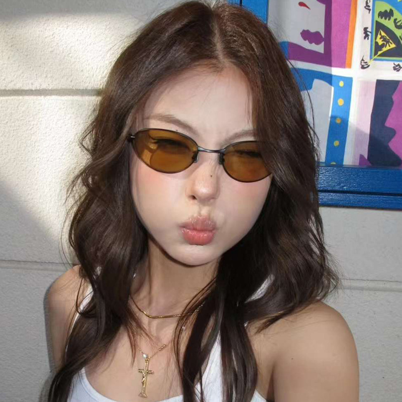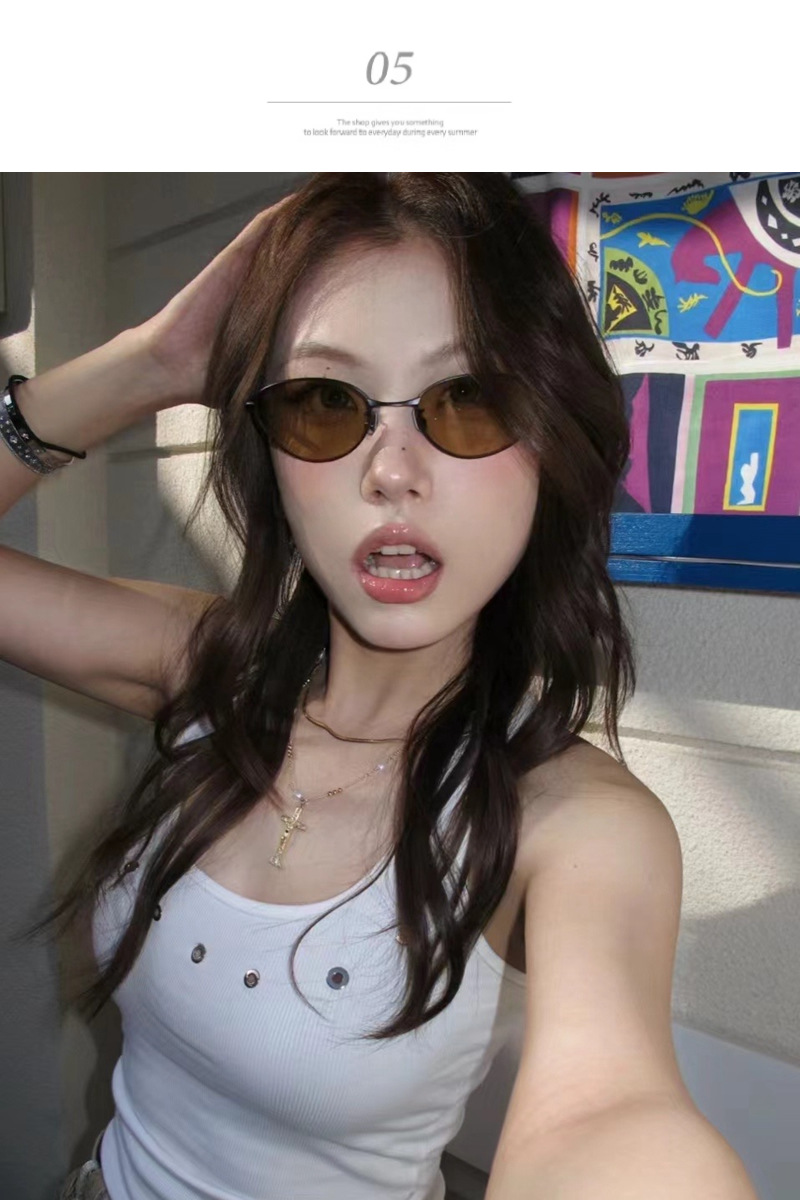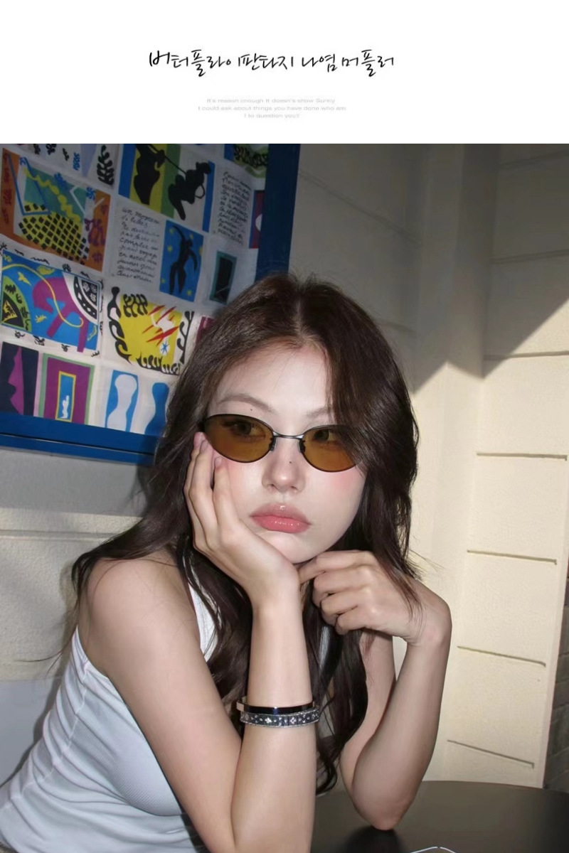 여성을위한 한국 복고풍 금속 고양이 눈 선글라스 2025 새로운 맞춤형 거리 촬영 갈색 둥근 얼굴 선글라스 자외선 차단스토어 가기