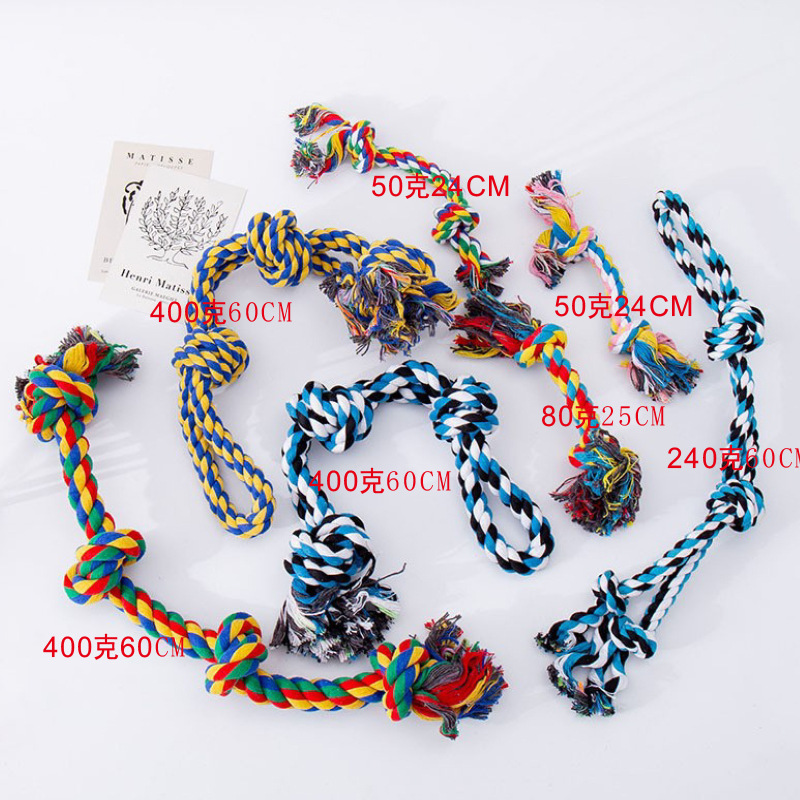 재고 짠 애완 동물 장난감 로프 매듭 Molar 물린 저항하는 고양이와 개 유니버설 로프 매듭 셀프-안녕 해결 삶은 실용적인 장난감 도매