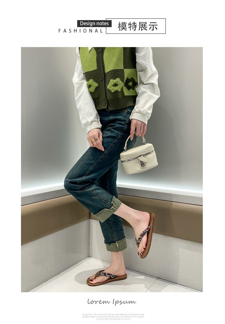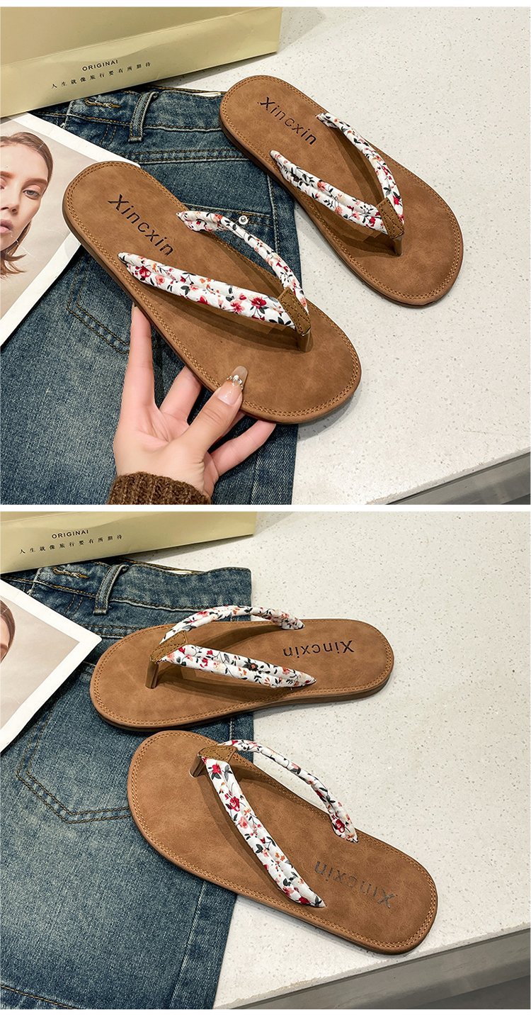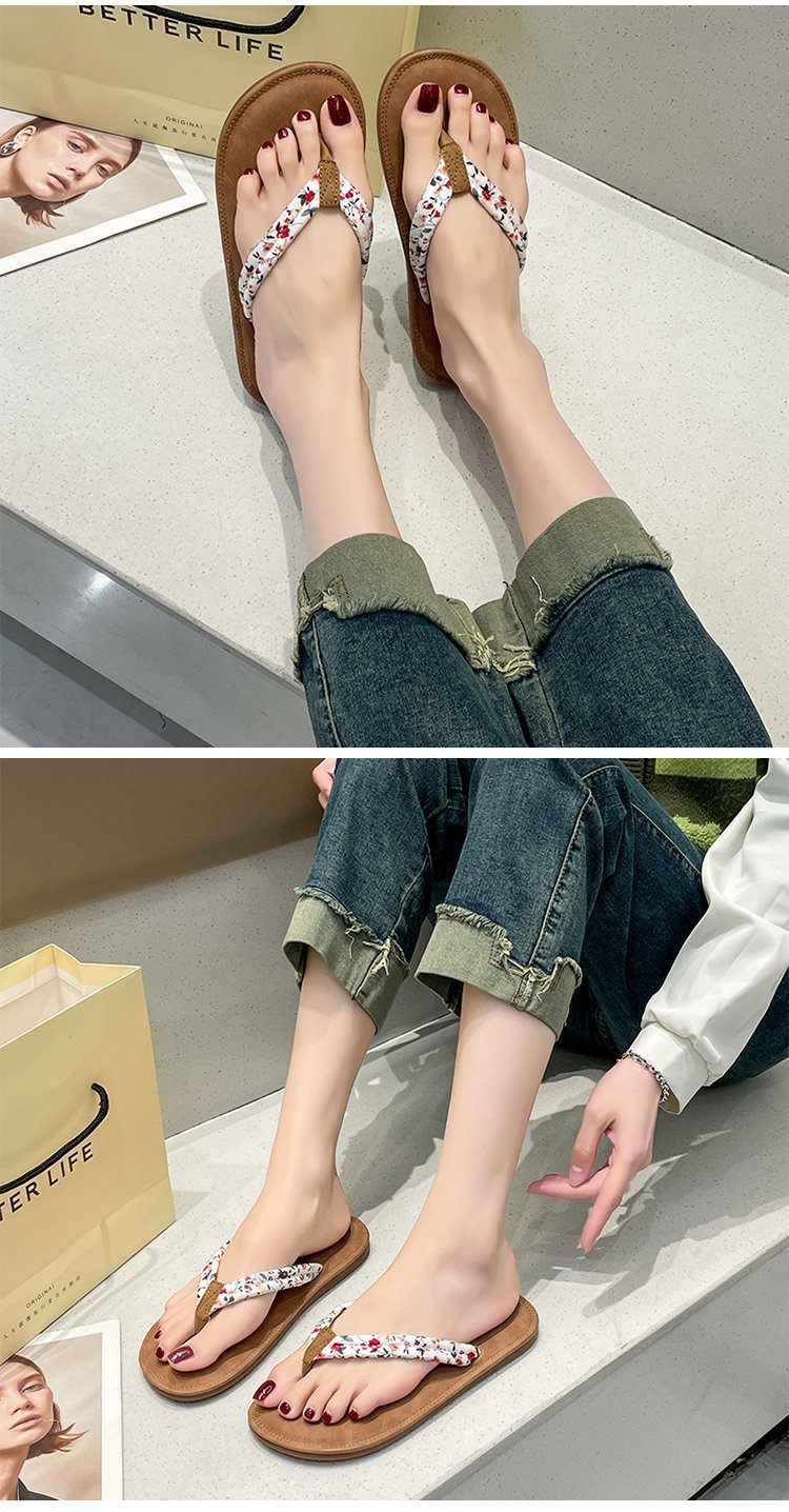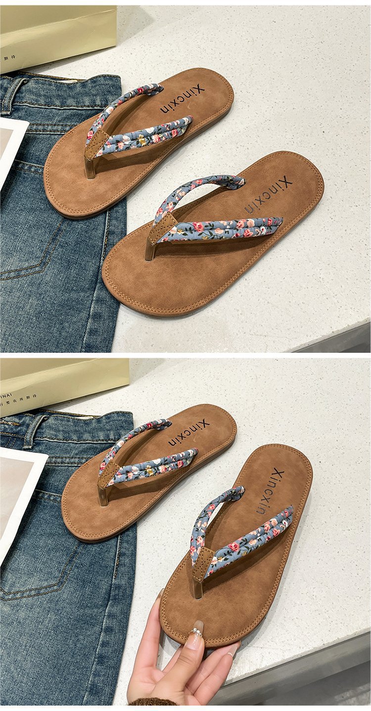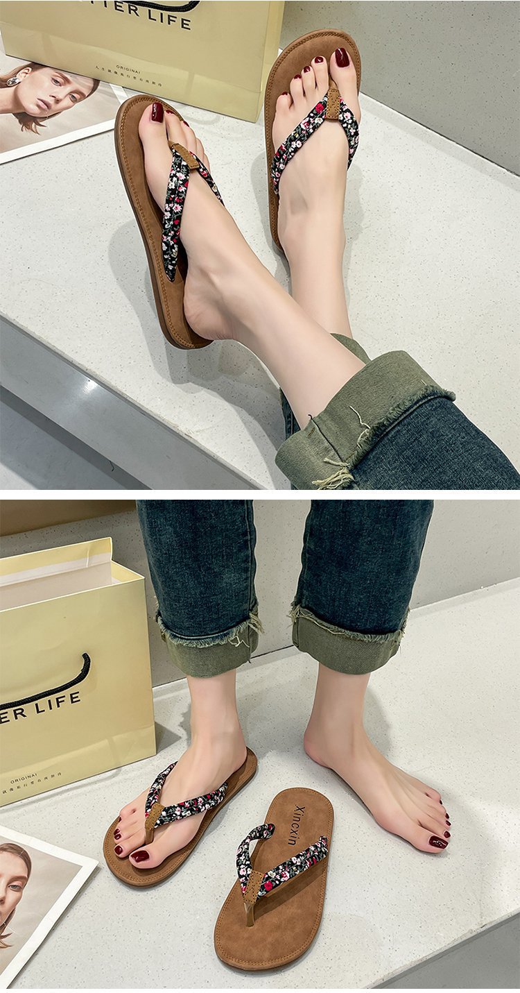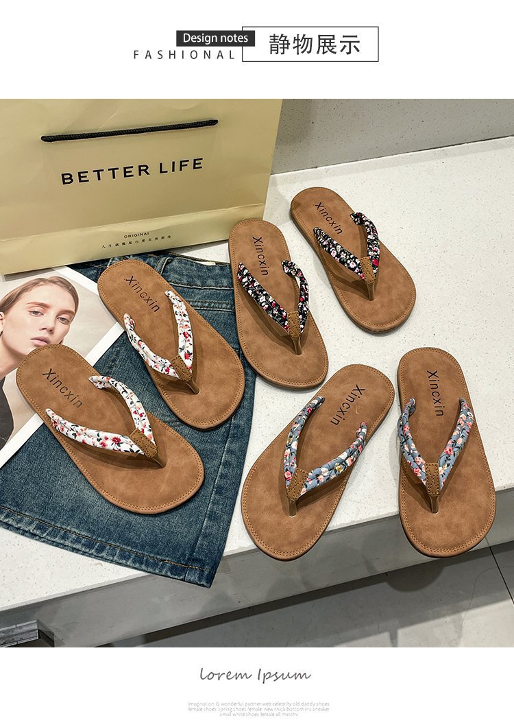 인터넷으로 유명한 샌들 플립 플롭 여성 여름 2024 아우터웨어 플랫 홀리데이 플립 플로럴 샌들 여성용 씨사이드 샌들스토어 가기