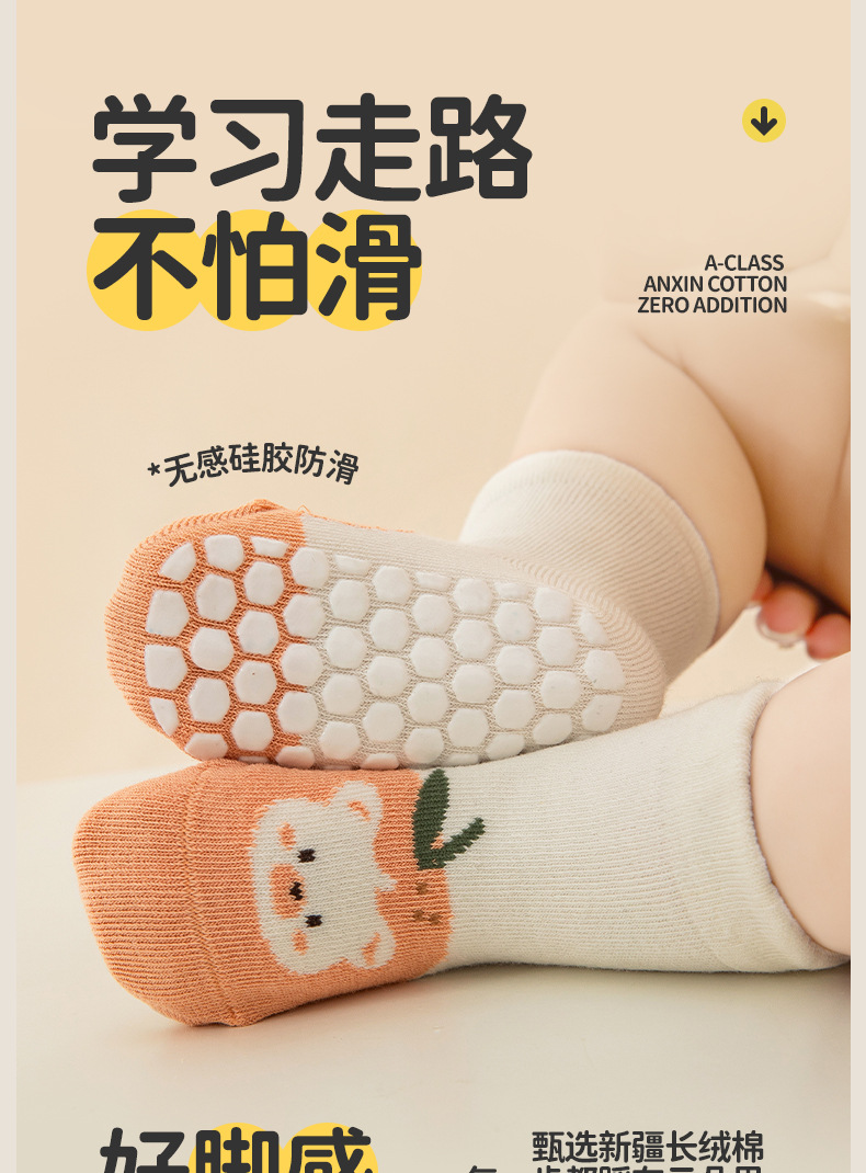 만화 비 감각 실리콘 비 슬립 아기 바닥 양말 봄과 가을 클래스 면화 아기 양말 신생아 뼈없는 중간 튜브 양말스토어 가기