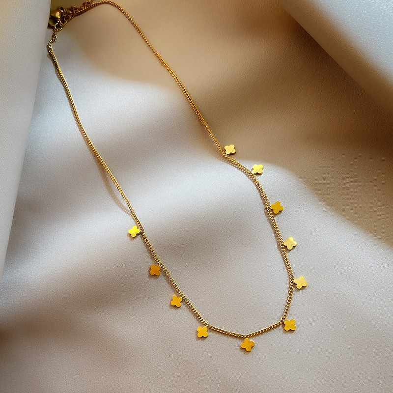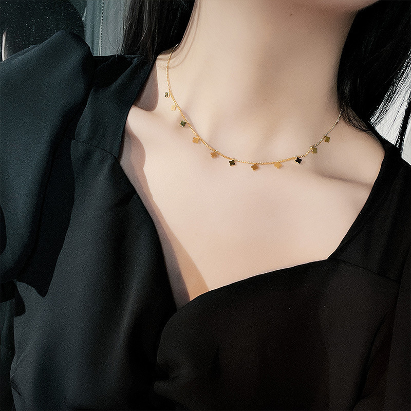 퇴색 4 잎 클로버 티타늄 스틸 목걸이 여성용 새로운 쇄골 체인 티타늄 스틸 보석 기질 올 매치 하이 엔드 라이트스토어 가기