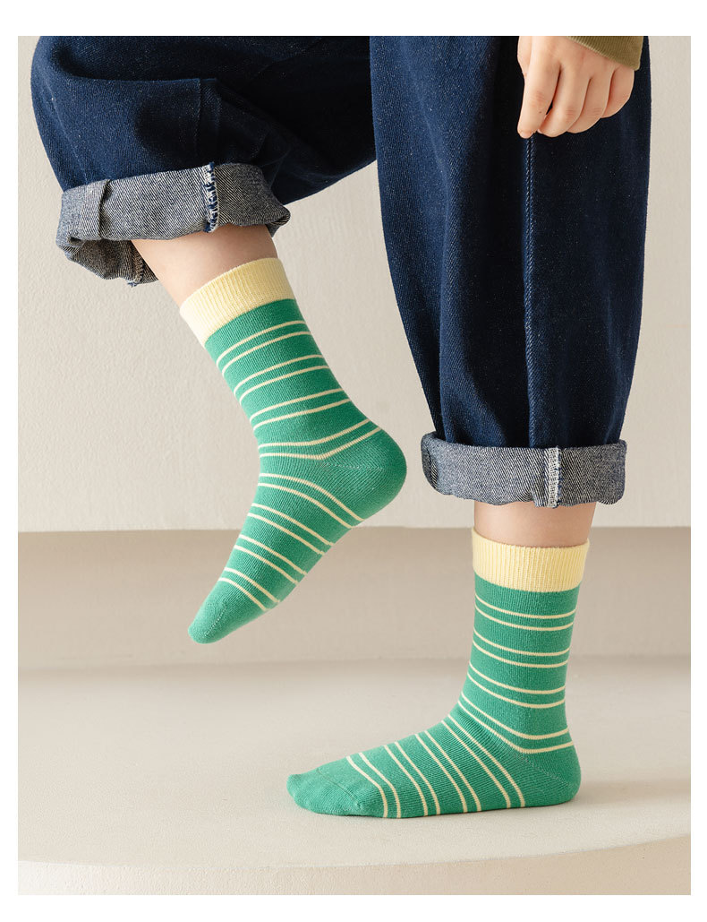 가을 겨울 어린이 양말 일본 줄무늬 ins 유행 소년 소녀 스타킹 간단한 캐주얼 학생 양말