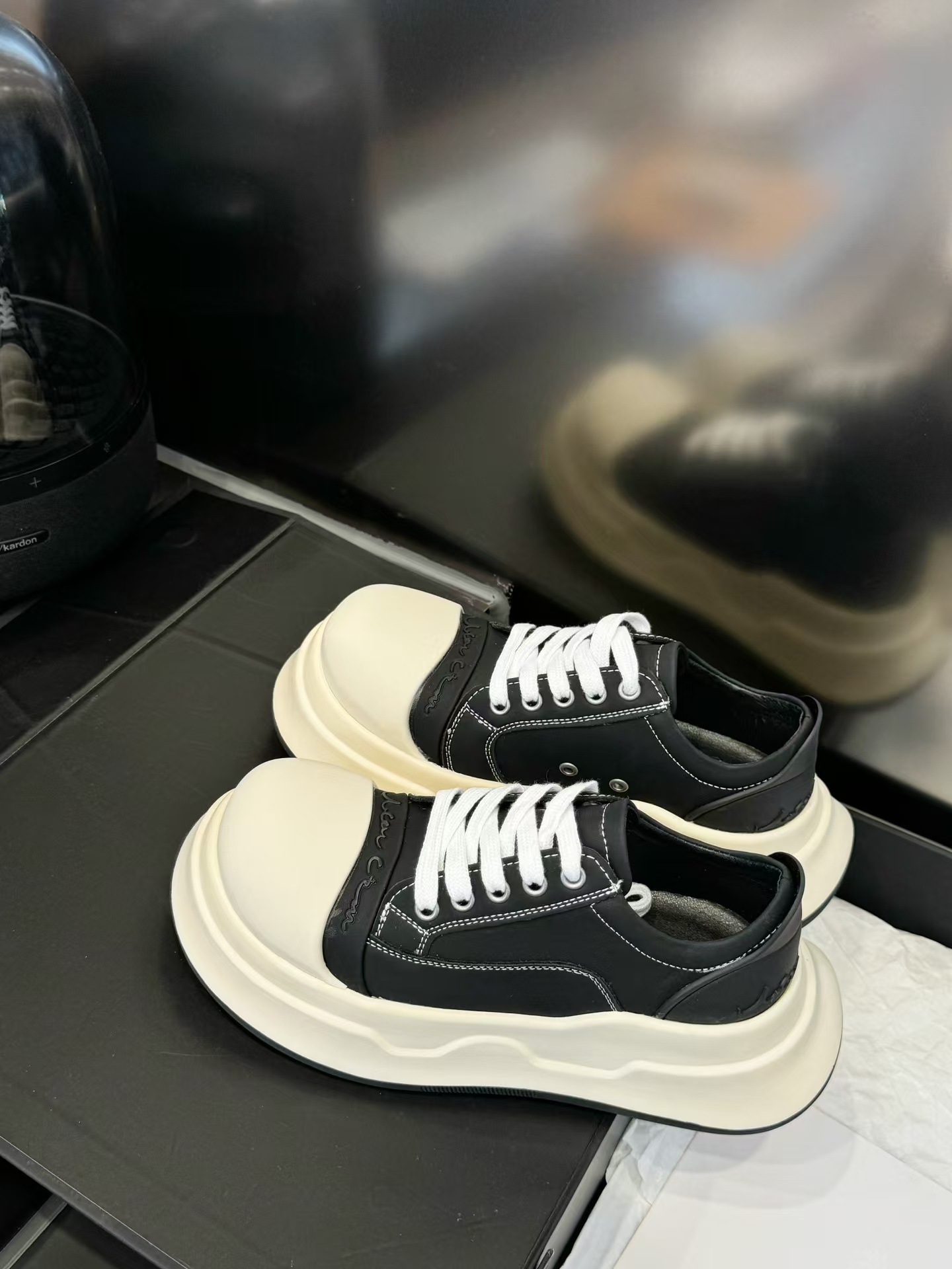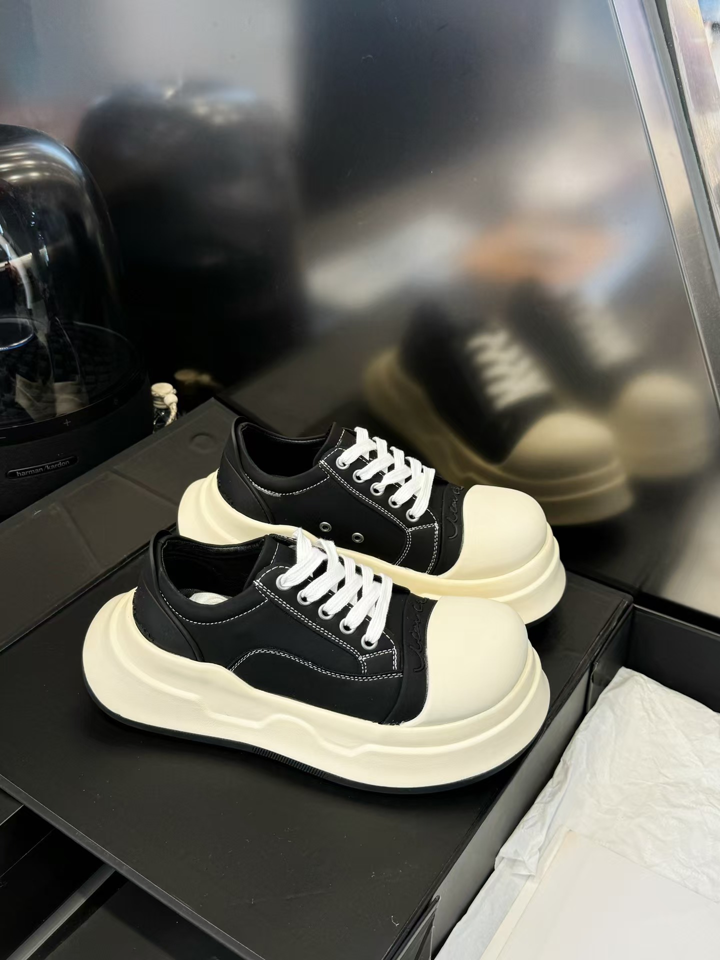 스웨이드 미키 큰 발가락 신발 여성의 2024 새로운 미국 스타일 레트로 캐주얼 플랫폼 높이 증가 캔버스 신발 정품 가죽 빵 신발스토어 가기