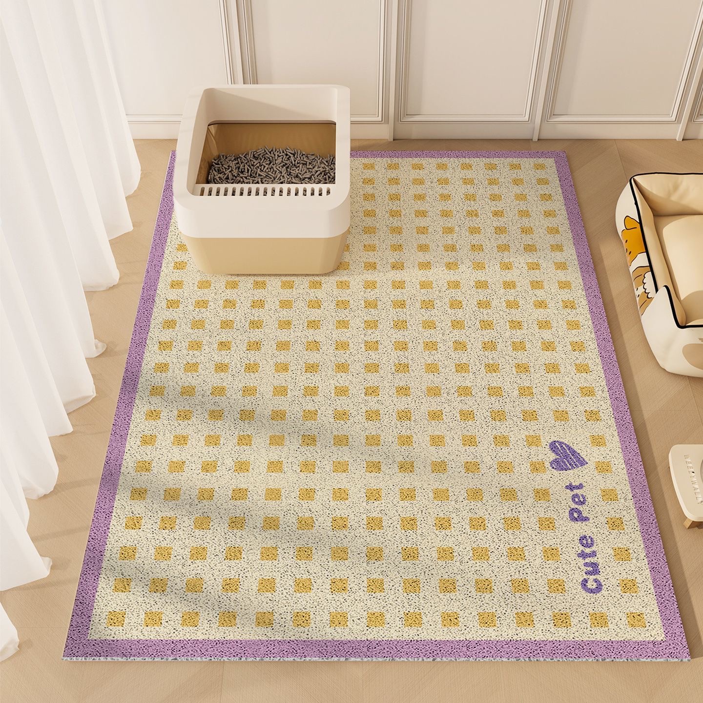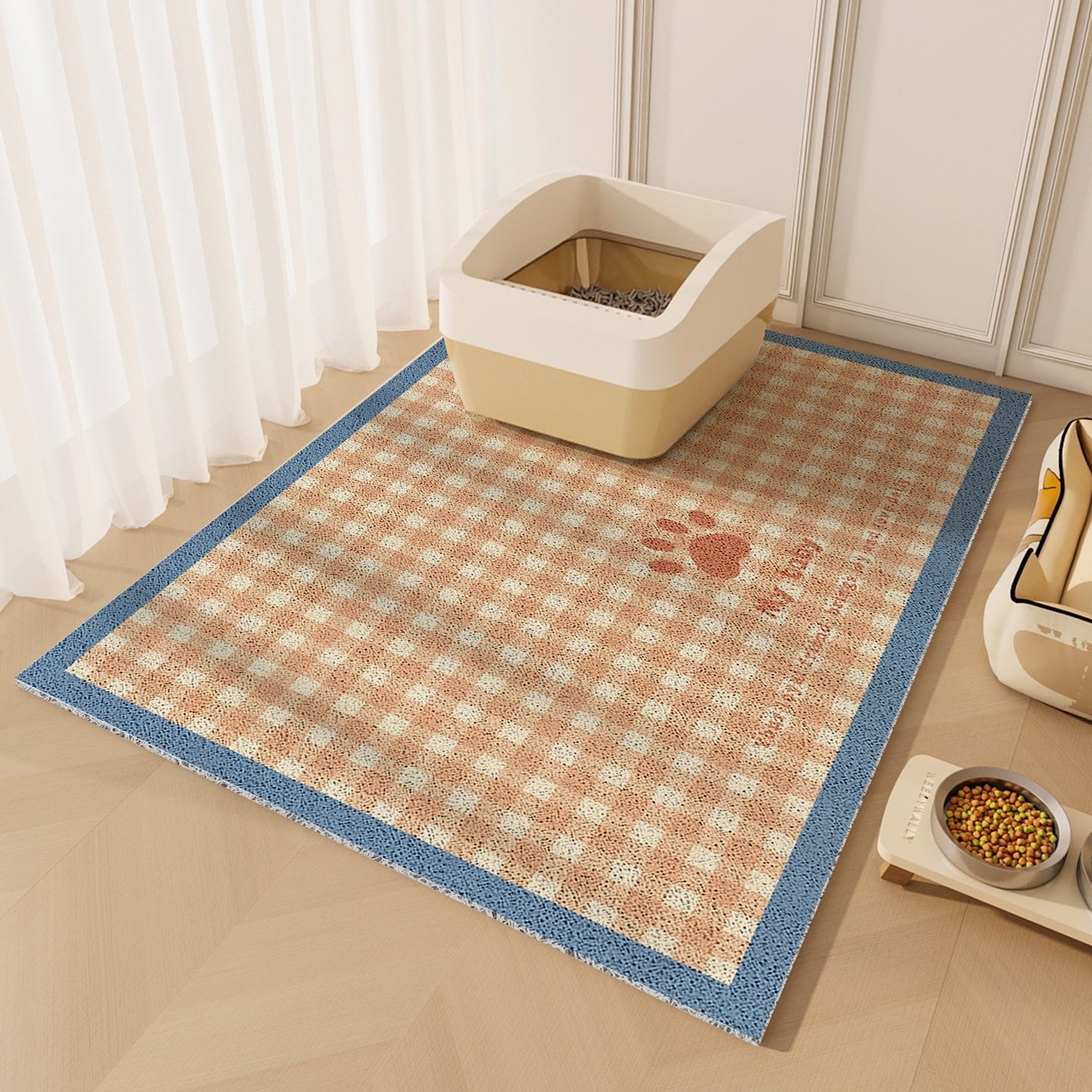 만화 귀여운 고양이 쓰레기 패드 더러운 저항하는 쉬운 관리 모래 제어 모래 떨어지는 안티 스플래시 엑스트라 대형 와이어 링 필터 애완 동물