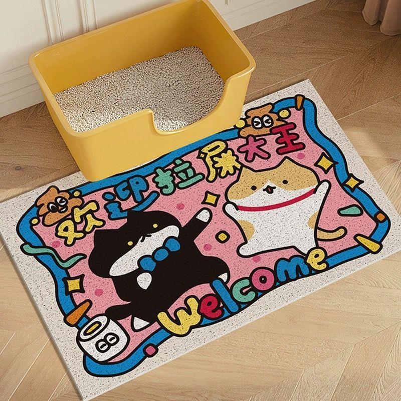 만화 귀여운 고양이 쓰레기 패드 더러운 저항하는 쉬운 관리 모래 제어 모래 떨어지는 안티 스플래시 엑스트라 대형 와이어 링 필터 애완 동물스토어 가기