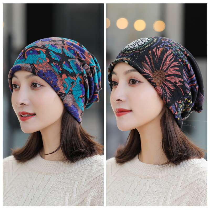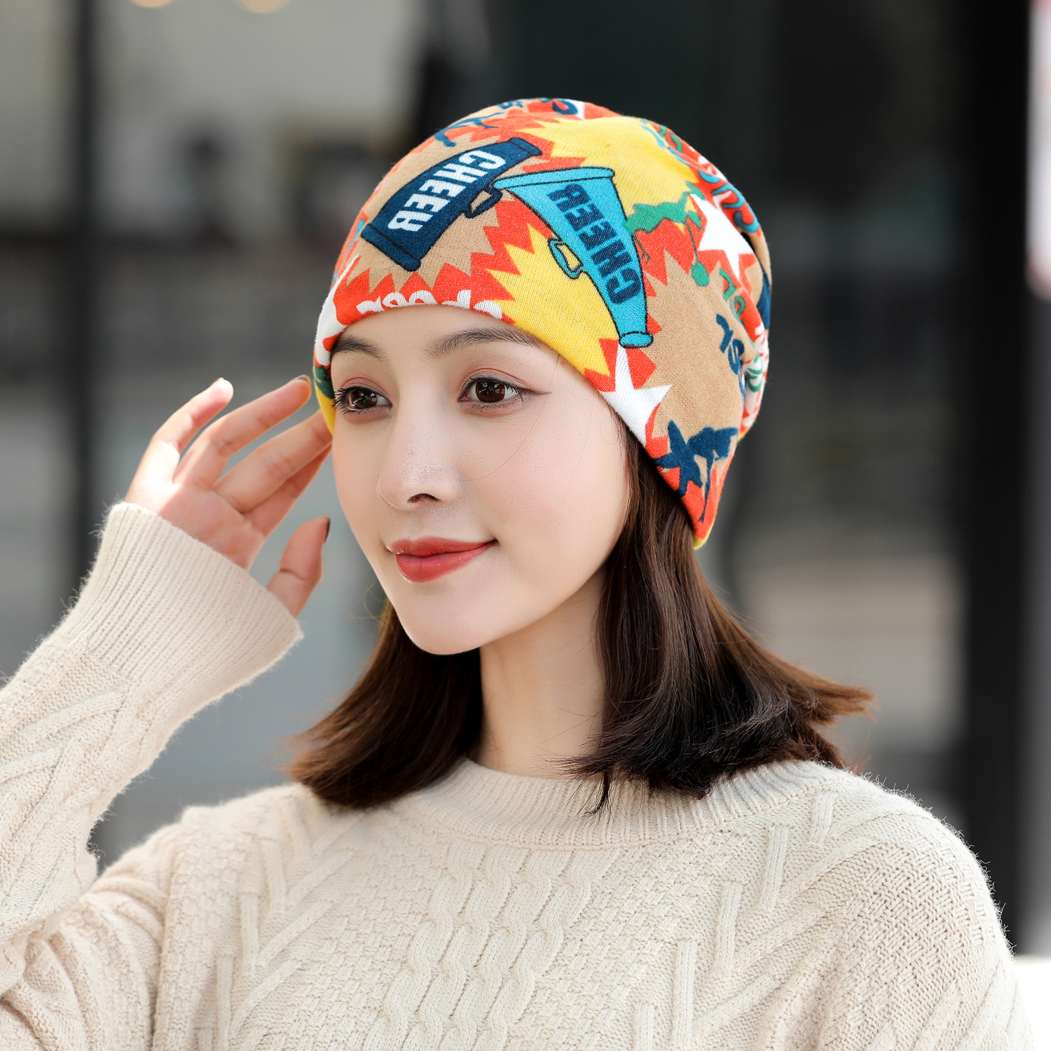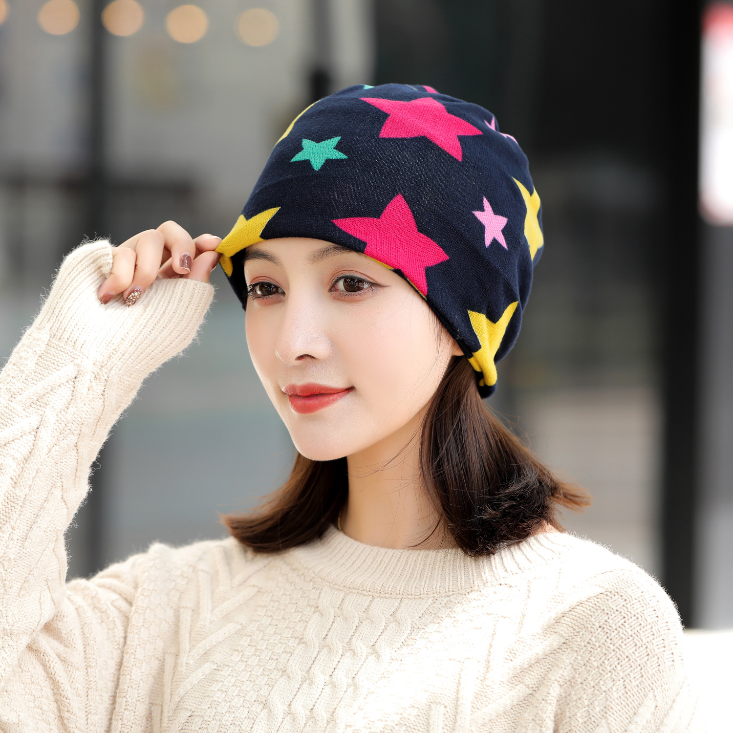 봄과 가을 겨울 달 따뜻한 목 보호 자궁 경부 트위스트 모자 따뜻한 실크 스카프 헤드셋 스택 모자를 타고 야외 모자