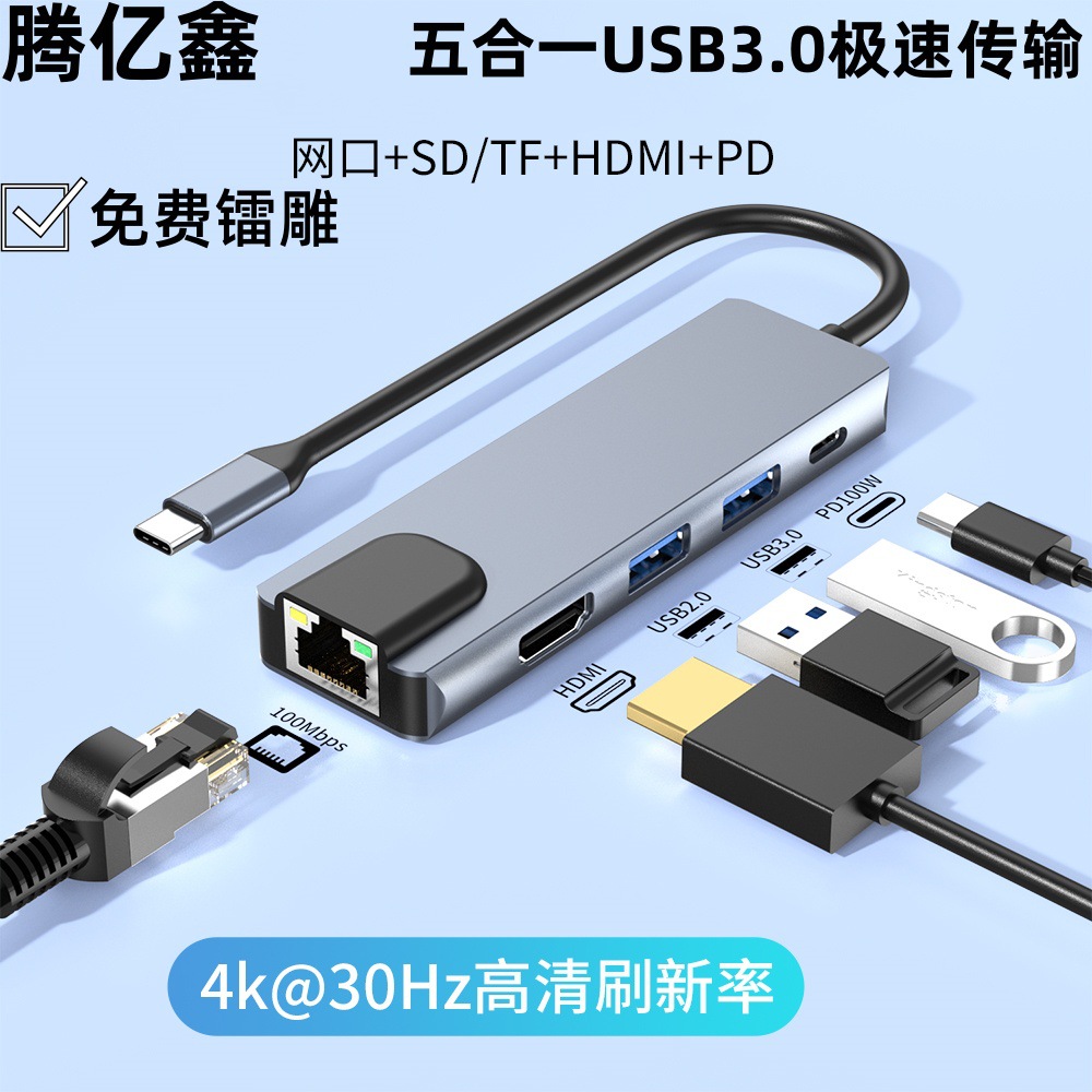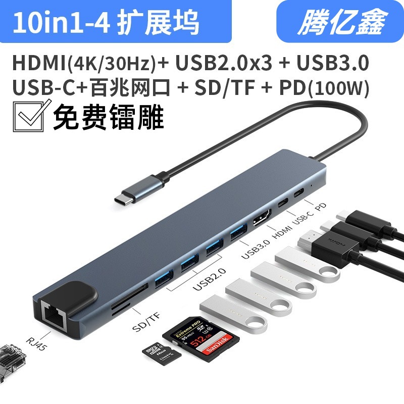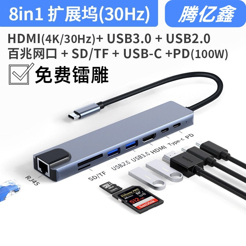 타입-C 도킹 스테이션 USB3.0 허브 노트북 100Mbps 네트워크 포트 컨버터 휴대폰 8-in-1 확장 도킹 스테이션스토어 가기