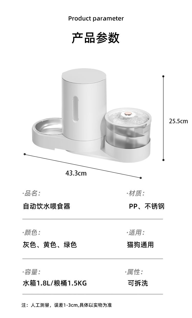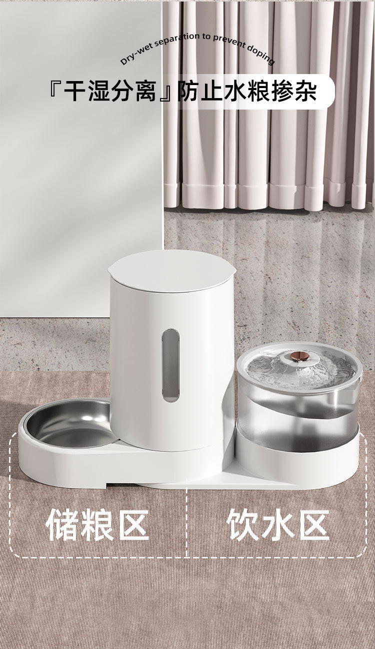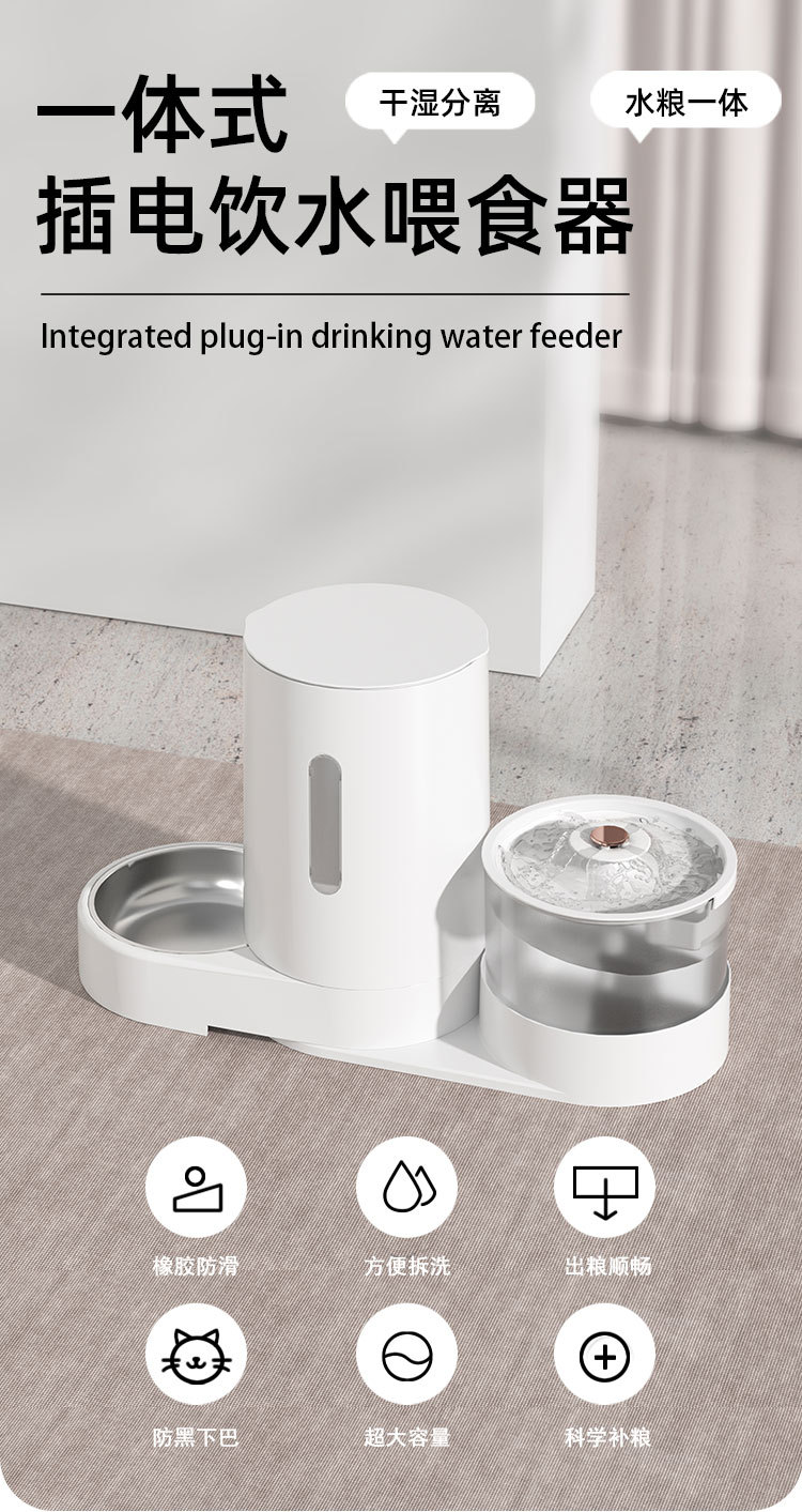애완 동물 전기 플러그인 물 디스펜서 자동 피더 대용량 건조 및 습식 분리 대용량 물과 음식 통합 고양이와 개